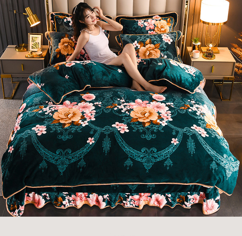 首选家纺 2025新款加厚保暖牛奶绒金貂绒法莱绒床裙款四件套 宝利格