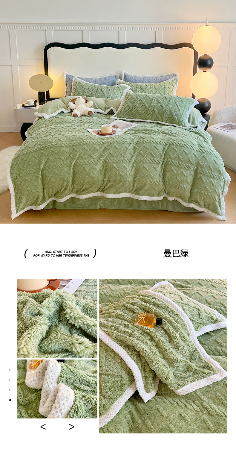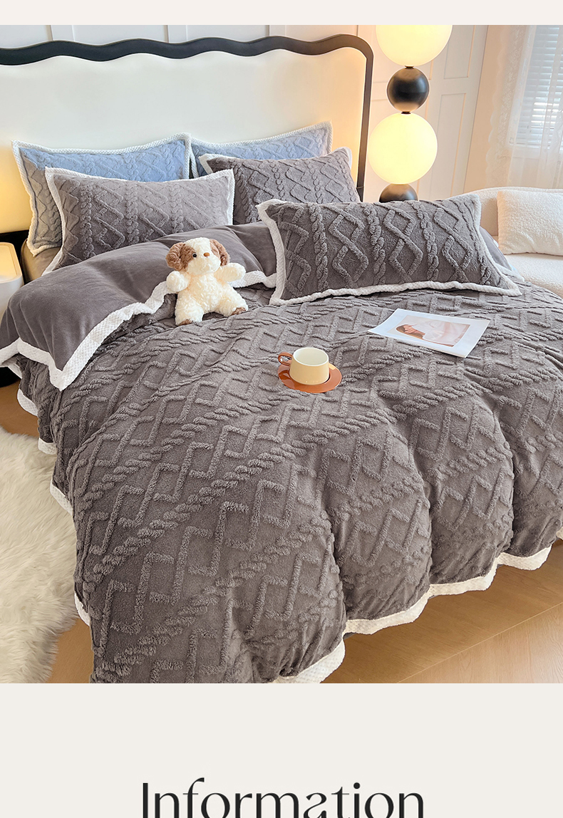 商品名称:悦织湾家纺 轻奢塔芙绒菱形格纯色牛奶绒四件套2025新款床上用品加厚保暖4件套 古鼎灰