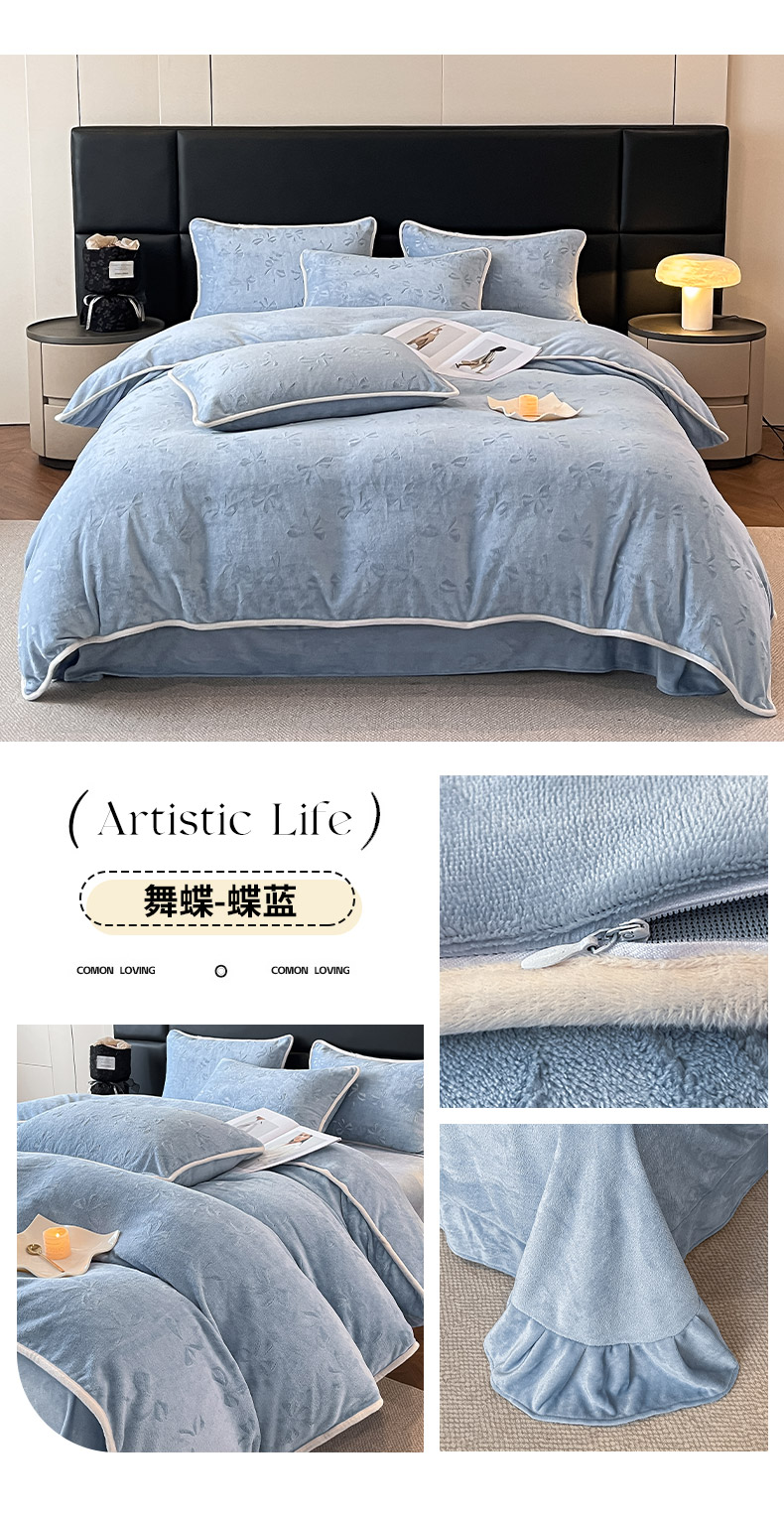 当前位置: 91家纺网 > 商品网购 > 床品套件 > 四件套 > 牛奶绒四件套 > 金阳光家纺 2025新款A类立体雕花蝴蝶结包边款牛奶绒四件套-舞蝶系列 舞蝶-蝶灰