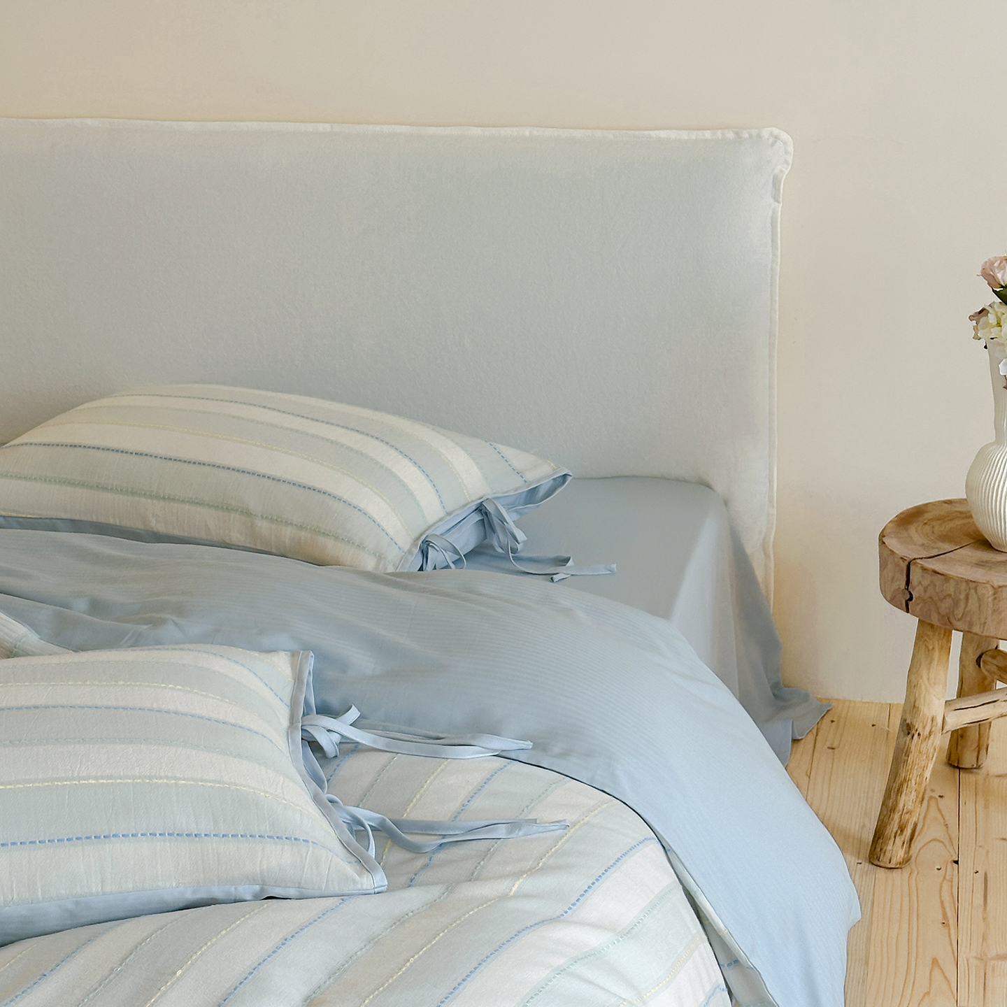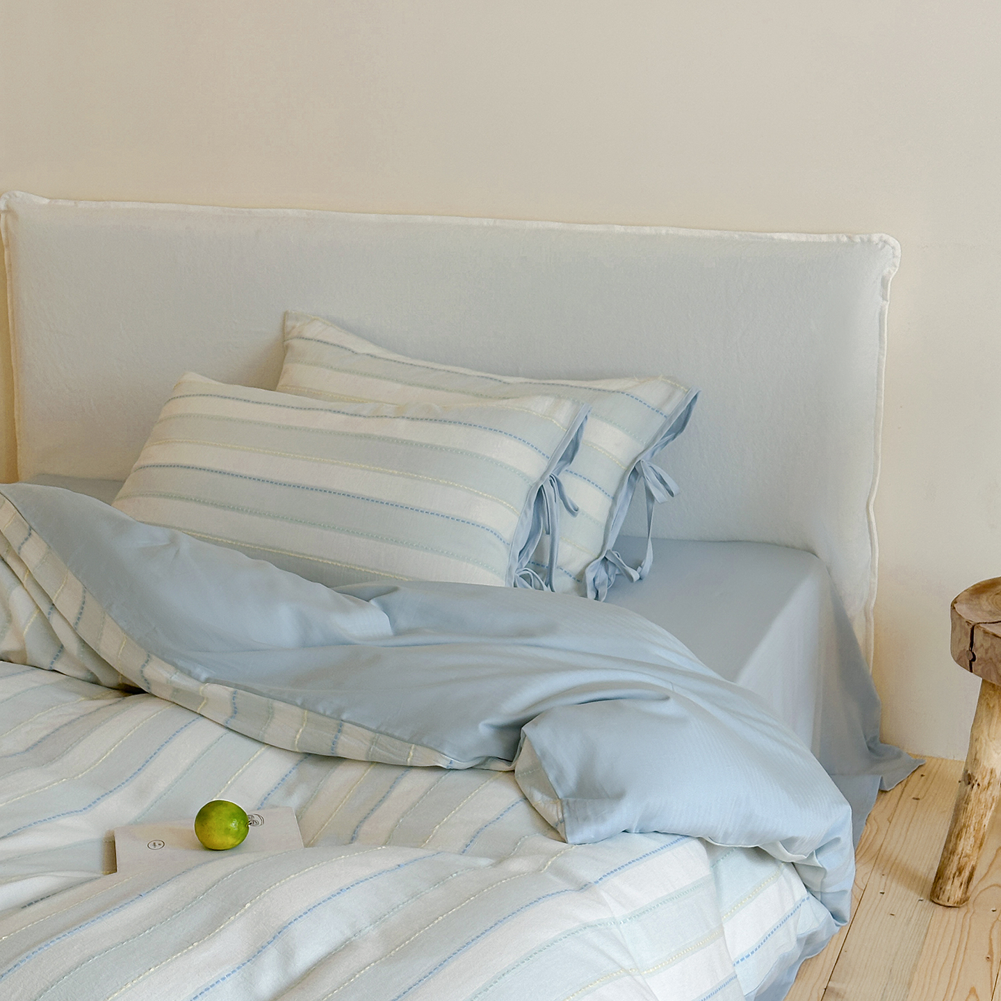 (总)小春日和 2025新款全棉提花条纹四件套纯棉人字纹水洗提花绑带款四件套民宿四件套纯色床单1.8床笠简约被套,云漫