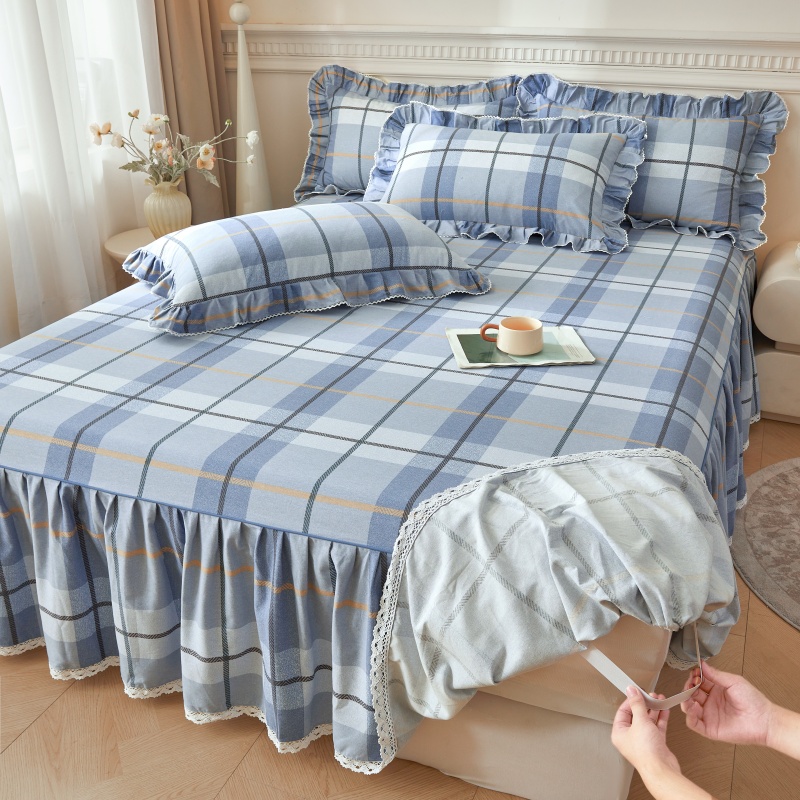 (总)缦彩 2025新款纯棉水洗棉床裙床罩单件全棉防滑防尘保护套床单三件套,艾米-粉,艾米-咖,艾米-兰,多芬桔,扶摇粉,欧风粉,品格-绿,奇兰灰,深情桔