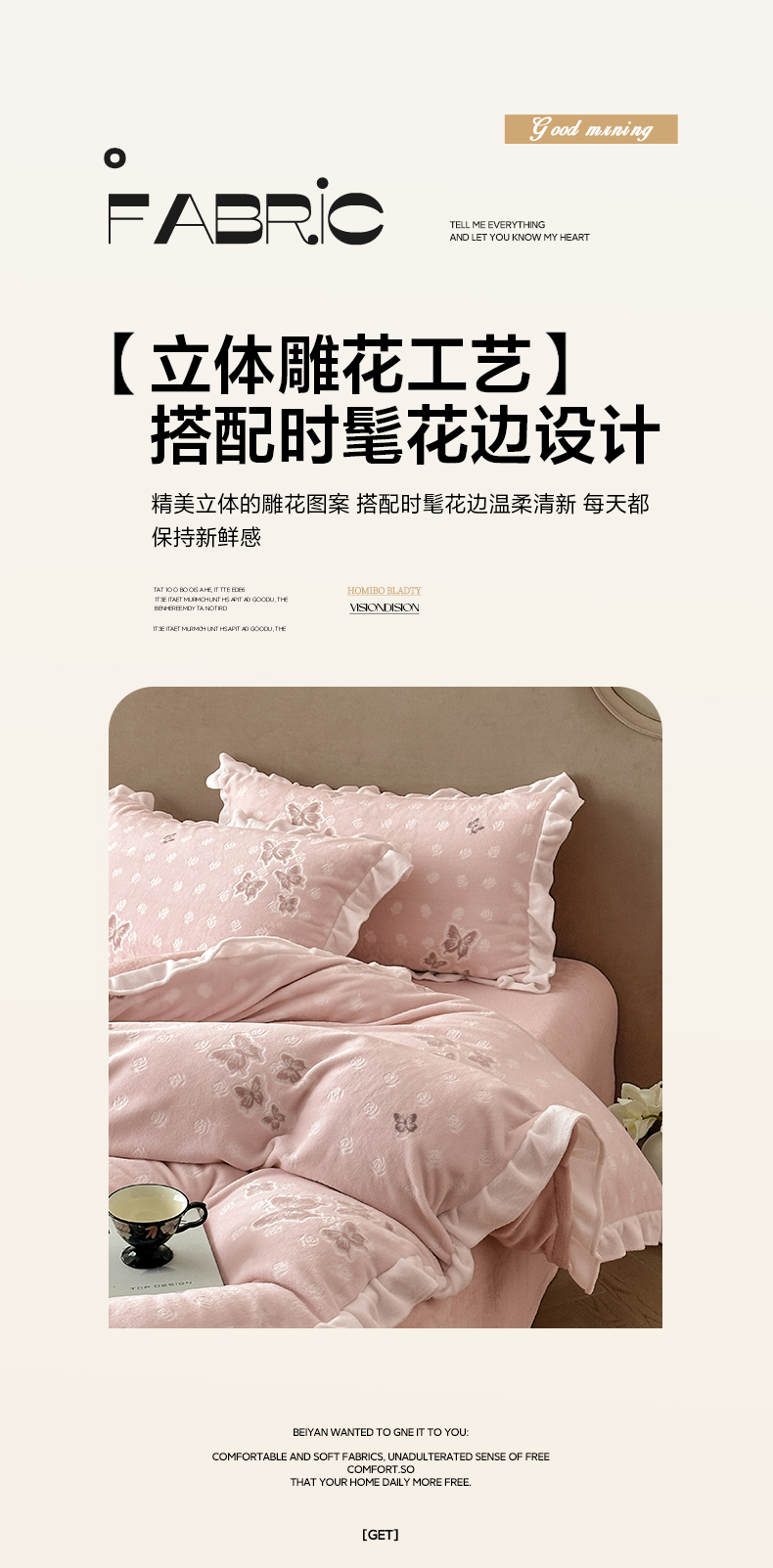澳梵家居 2025新款雕花牛奶绒韩版四件套-玫瑰蝶语 繁花浅梦