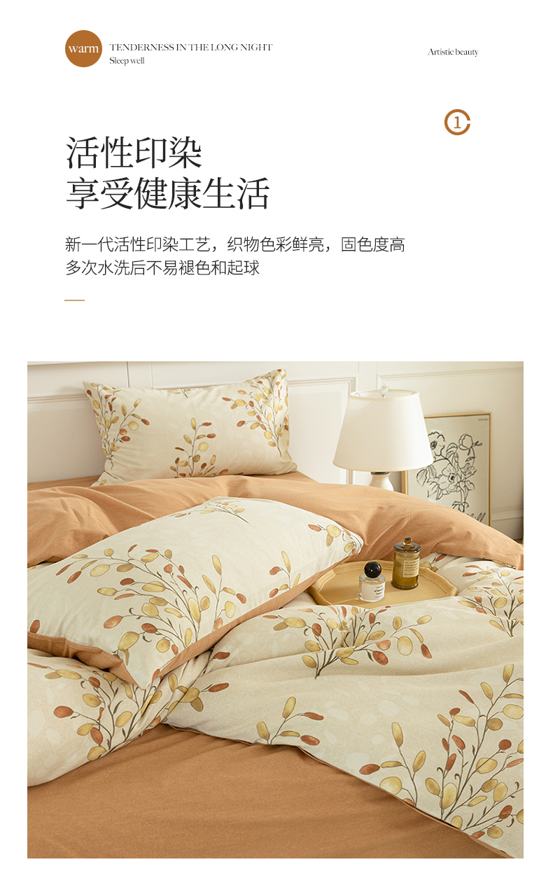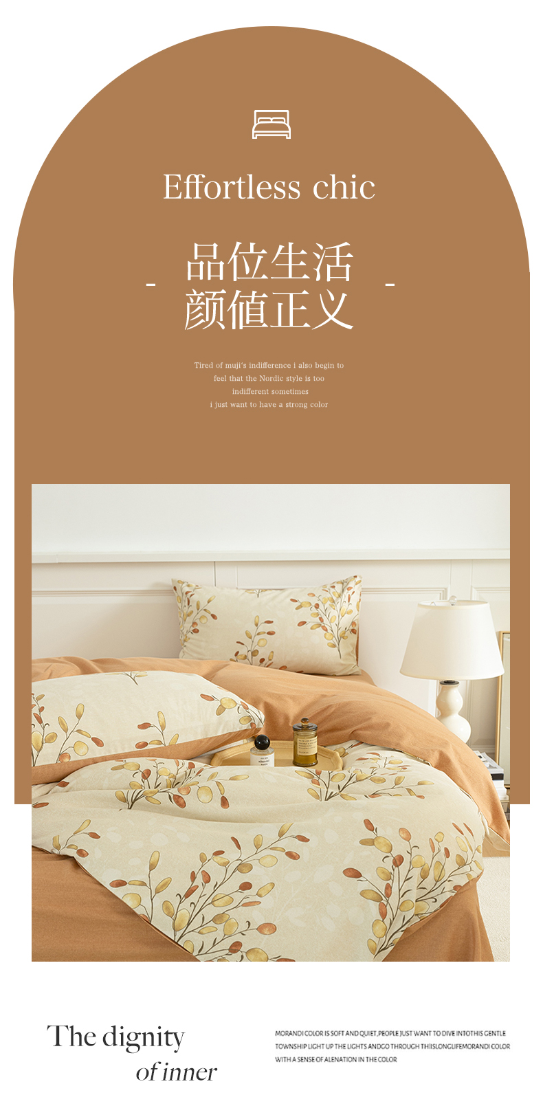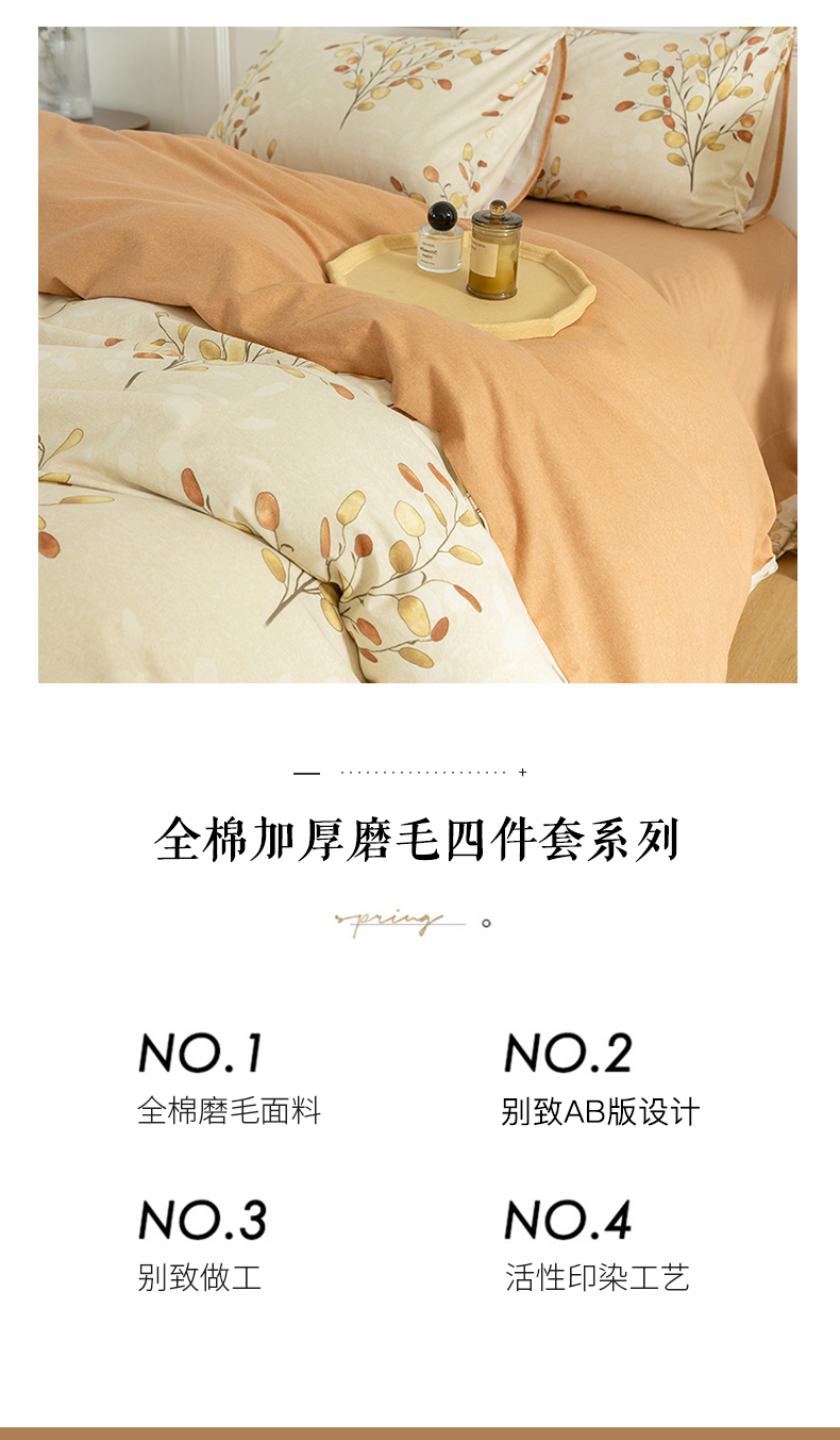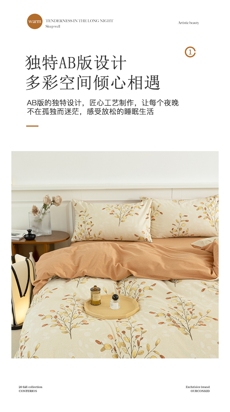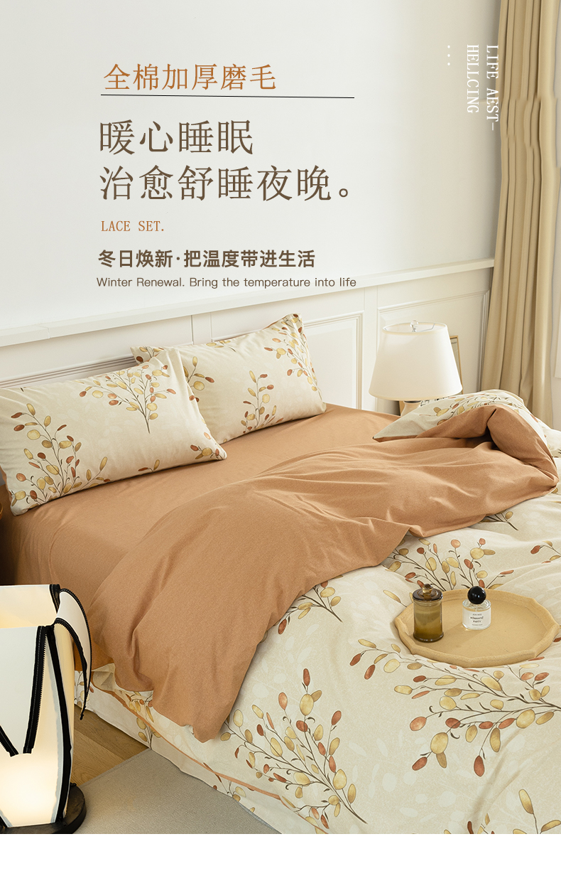 绫韵家纺 2025秋冬新品生态全棉磨毛冬季纯棉磨毛四件套系列 语芊咖