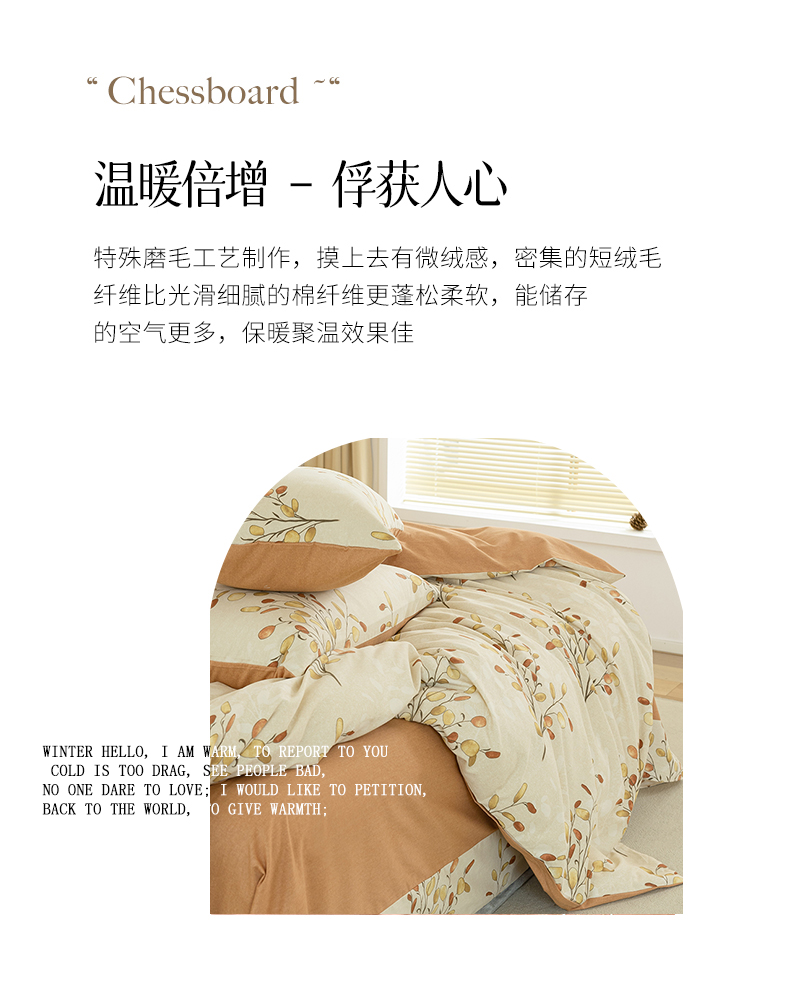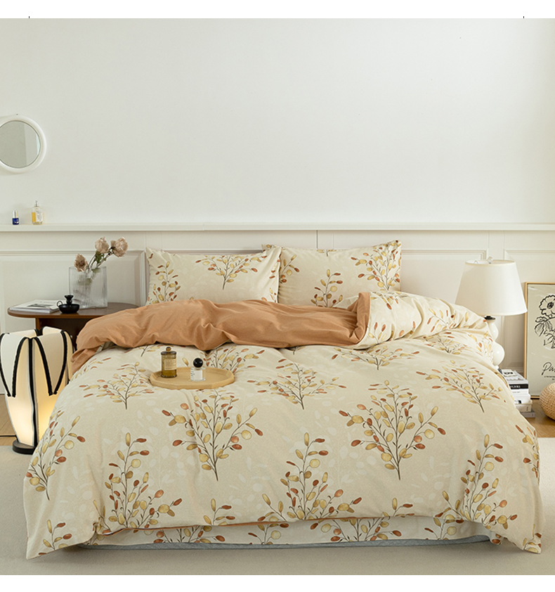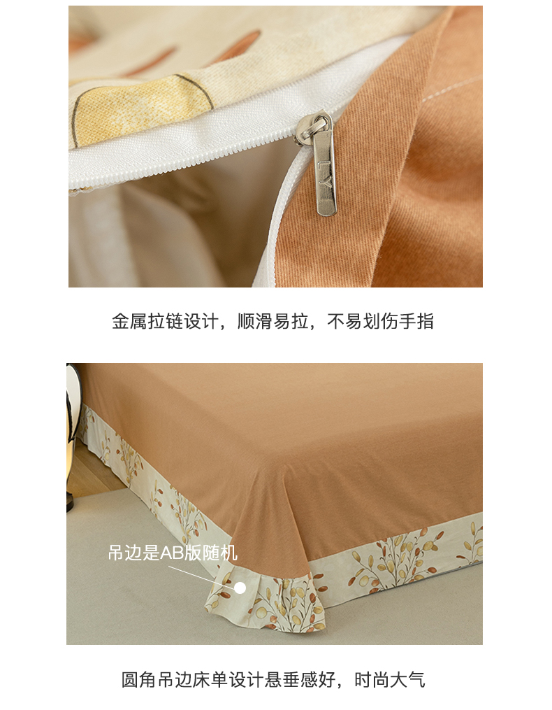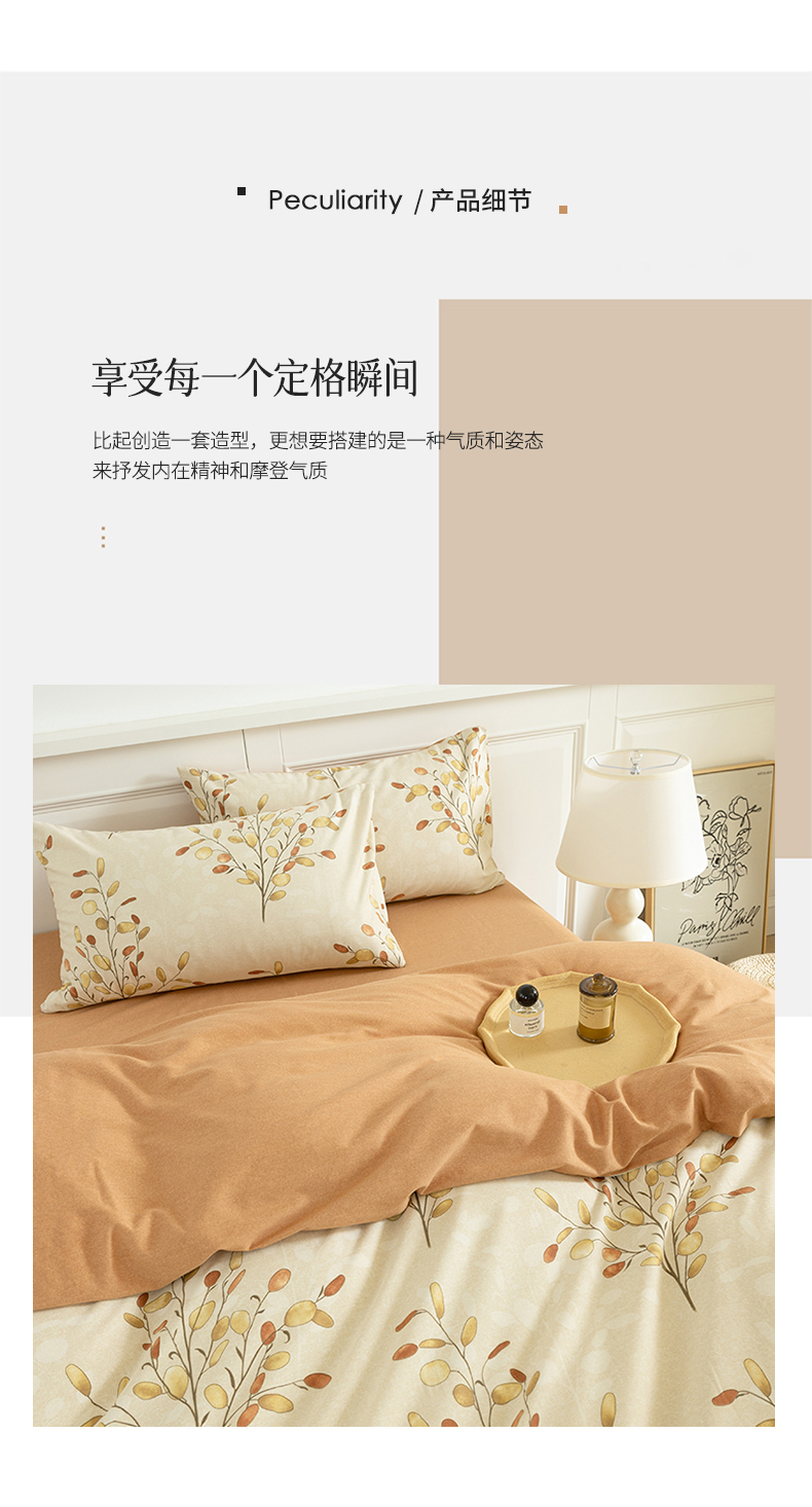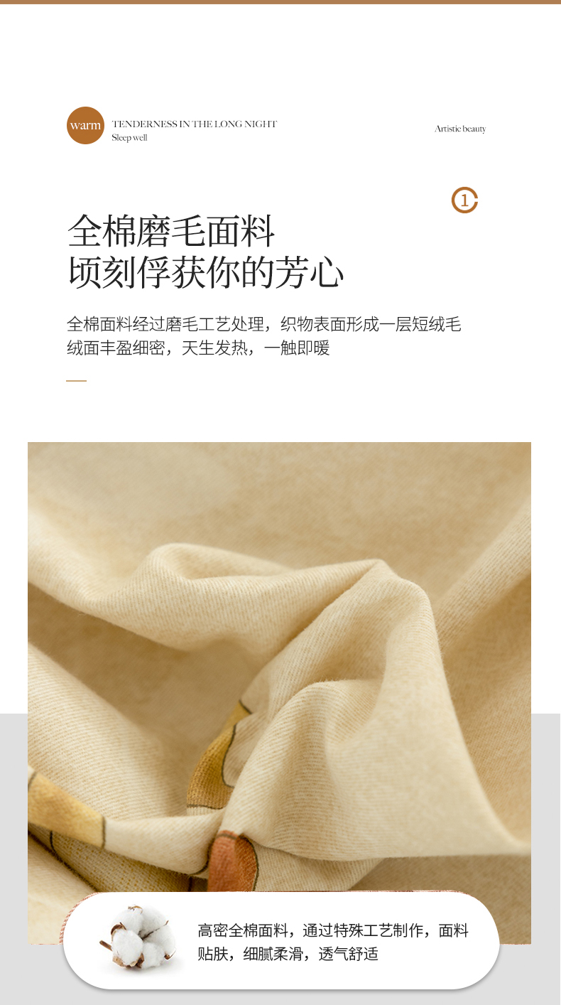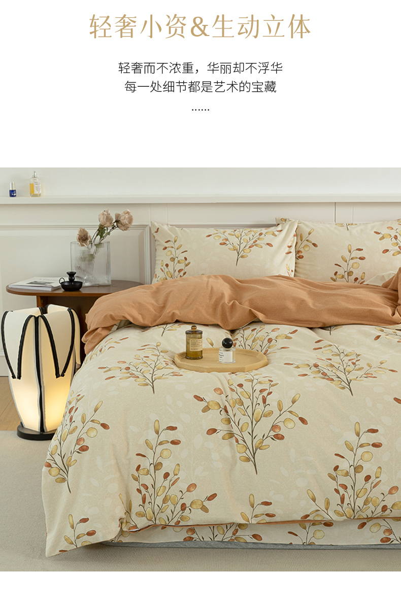 商品名称:绫韵家纺 2025秋冬新品生态全棉磨毛冬季纯棉磨毛四件套系列 语芊咖