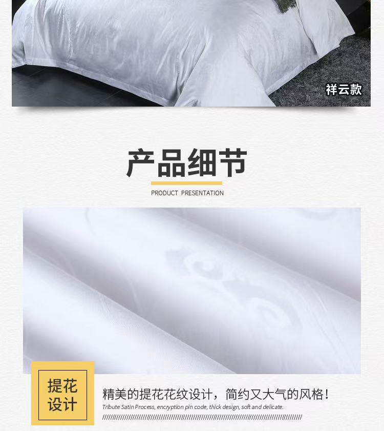 当前位置: 91家纺网 > 商品网购 > 床品套件 > 四件套 > 提花四件套 > 安力森/诚臻酒店用品 2025新款酒店民宿专用床上用品四季全棉纯棉四件套-提花系列 60支提花大富贵款