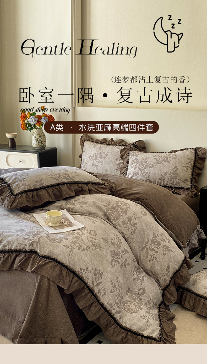 当前位置: 91家纺网 > 商品网购 > 床品套件 > 四件套 > 其它四件套 > 艺玲家纺 2025新款亲肤舒适复古水洗亚麻四件套 简粉格