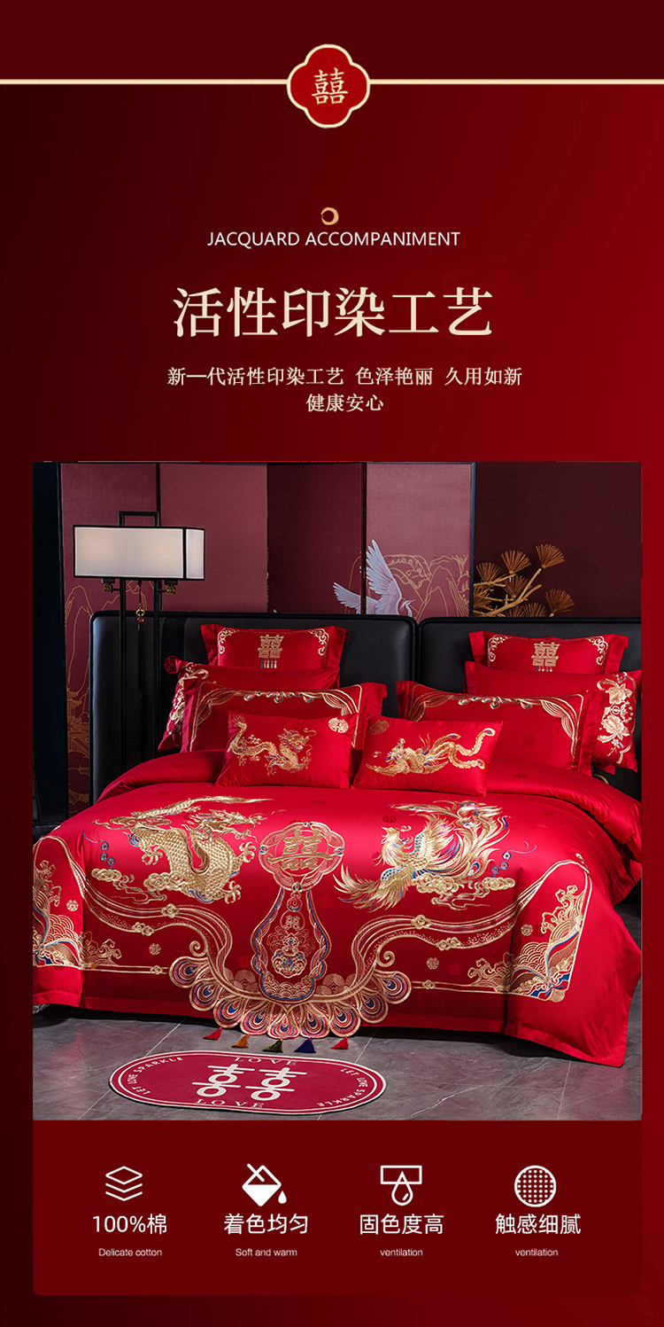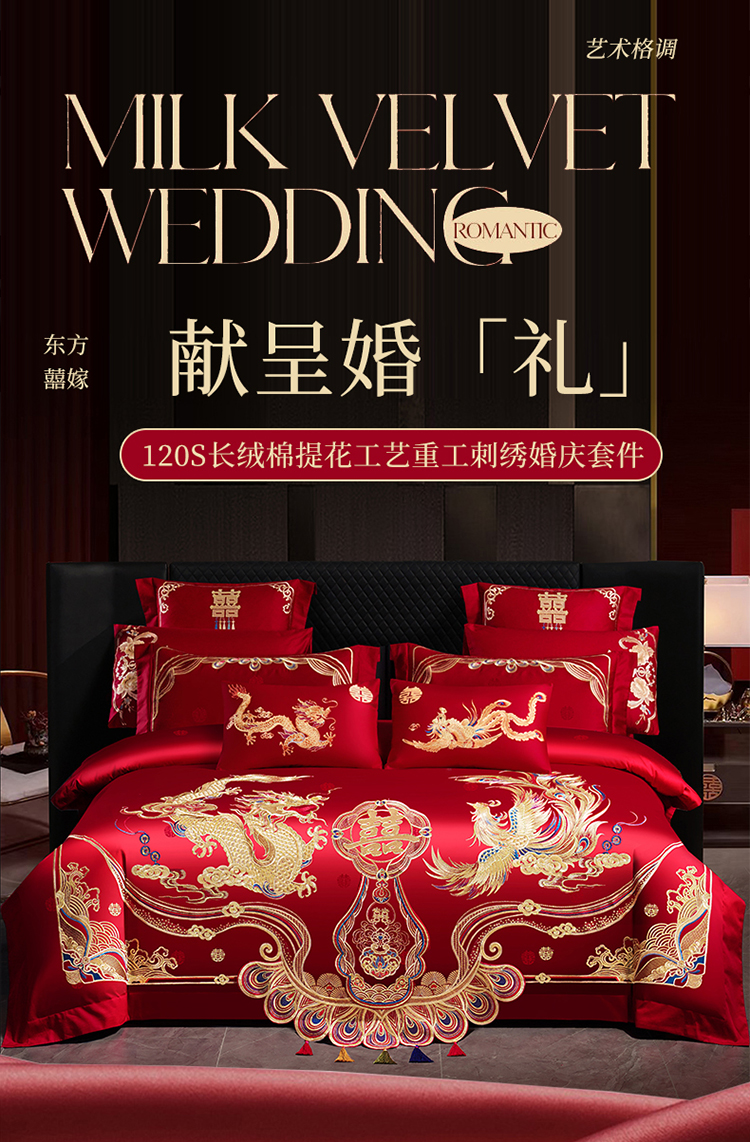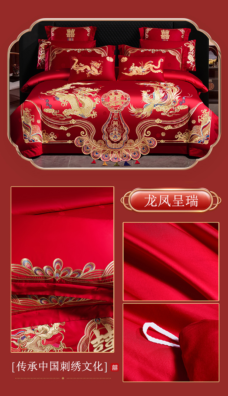 当前位置: 91家纺网 > 商品网购 > 床品套件 > 多件套 > 多件套 > 千禧家纺 2025年大版提花工艺绣花婚庆套件 龙凤呈瑞