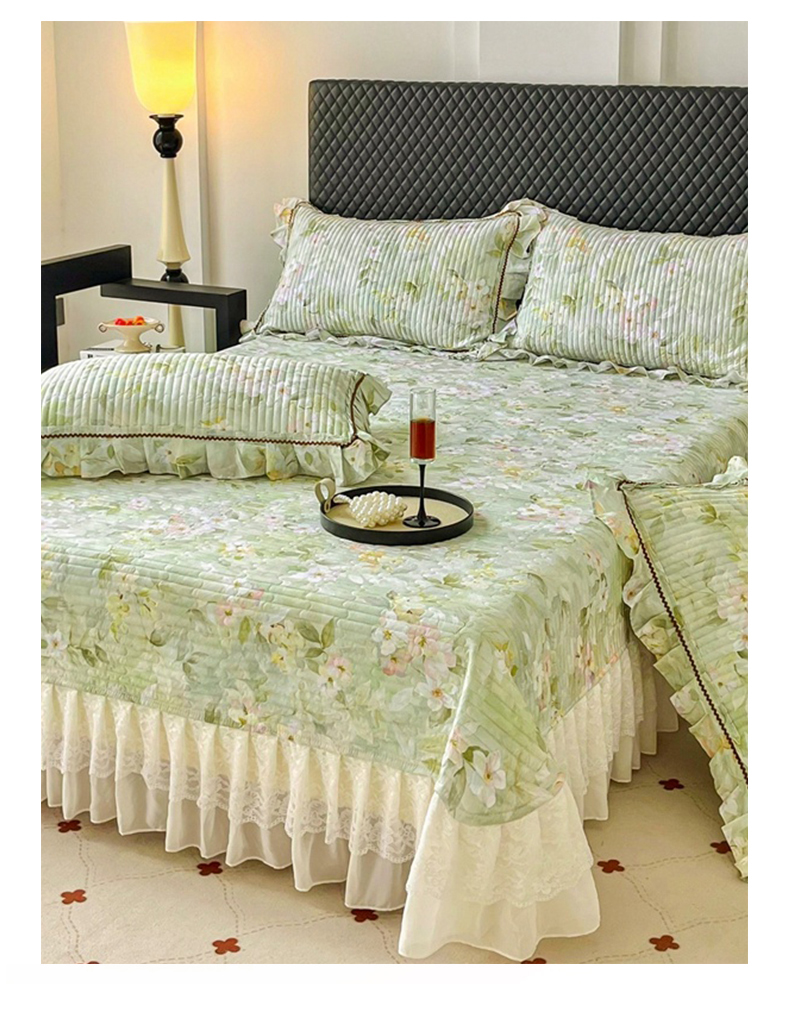 胜权家纺 2025秋冬新款全棉法式13372数码印花夹棉床盖四件套系列 花海绿