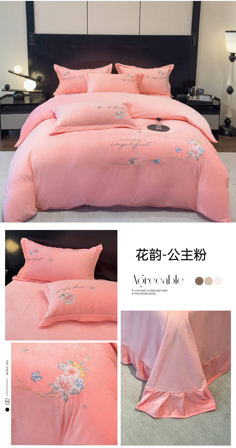 当前位置: 91家纺网 > 商品网购 > 床品套件 > 四件套 > 牛奶绒四件套 > U品汇 2025新款7斤高克重牛奶绒刺绣花四件套床裙款法莱绒金貂珊瑚绒水晶绒不掉毛 花韵-香叶紫