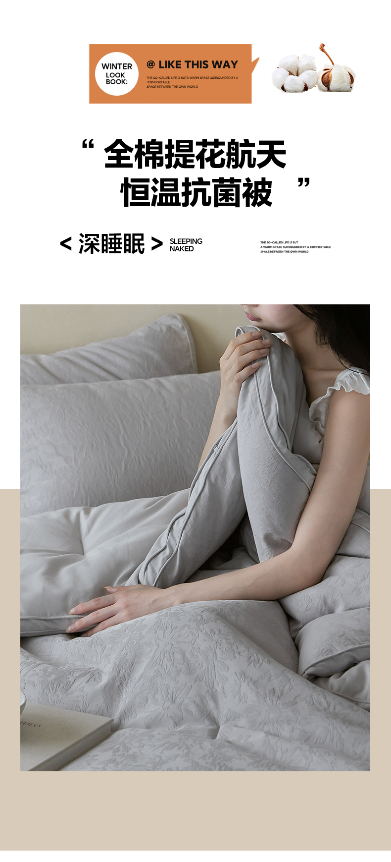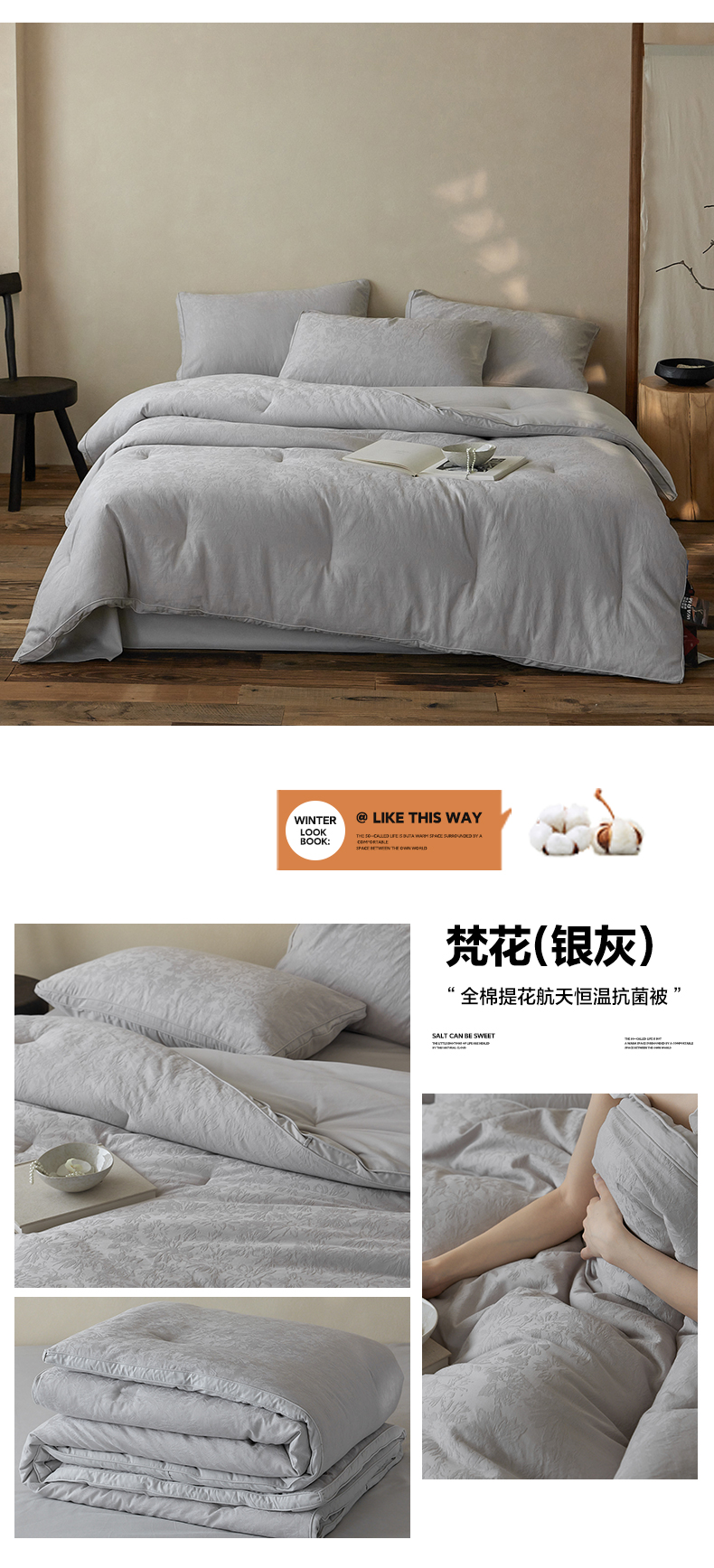 商品名称:一加一 2025新款全棉提花航天恒温抗菌被子被芯 梵花(银灰)