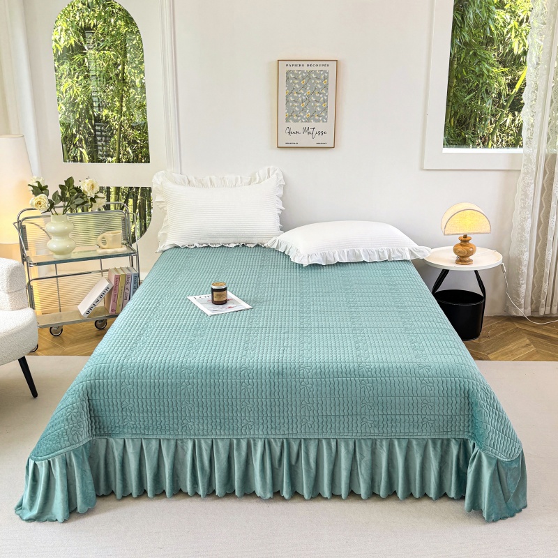 尚品凤凰 2025新款加厚宝宝绒绗缝夹棉单床裙单品床裙单件床裙-蝴蝶结 果绿