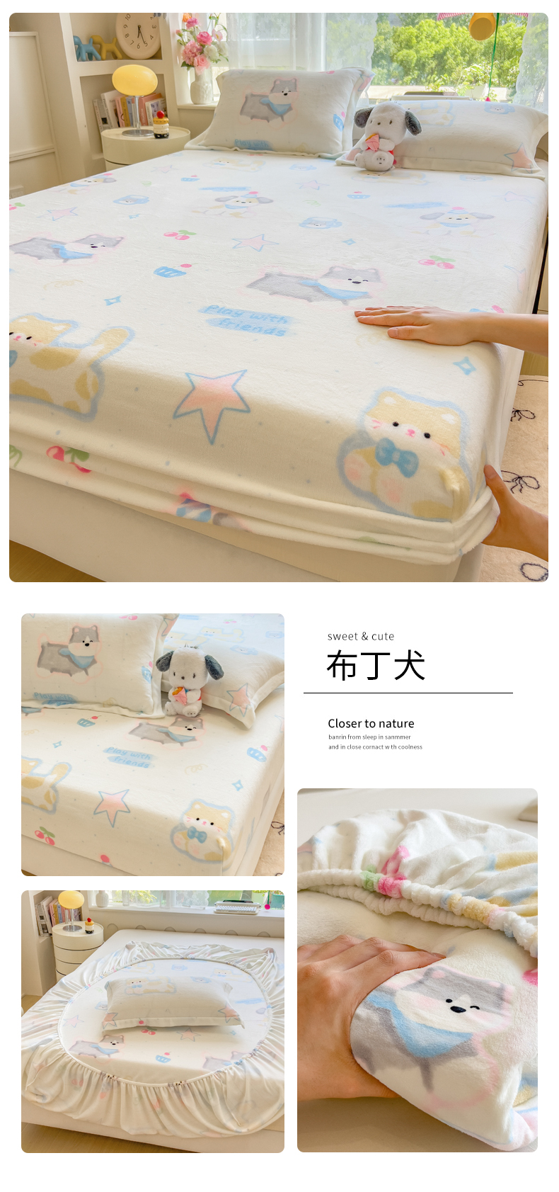 (总)丝羽坊 2025新款印花小清新牛奶绒印花床笠三件套,甜心猫,草莓洋娃娃,花的邂逅,公主兔兔,花间密语,卡皮巴拉,曼妙时光,萌布布,圈圈点点,星空物语,布丁犬,小美好,幸运小狗