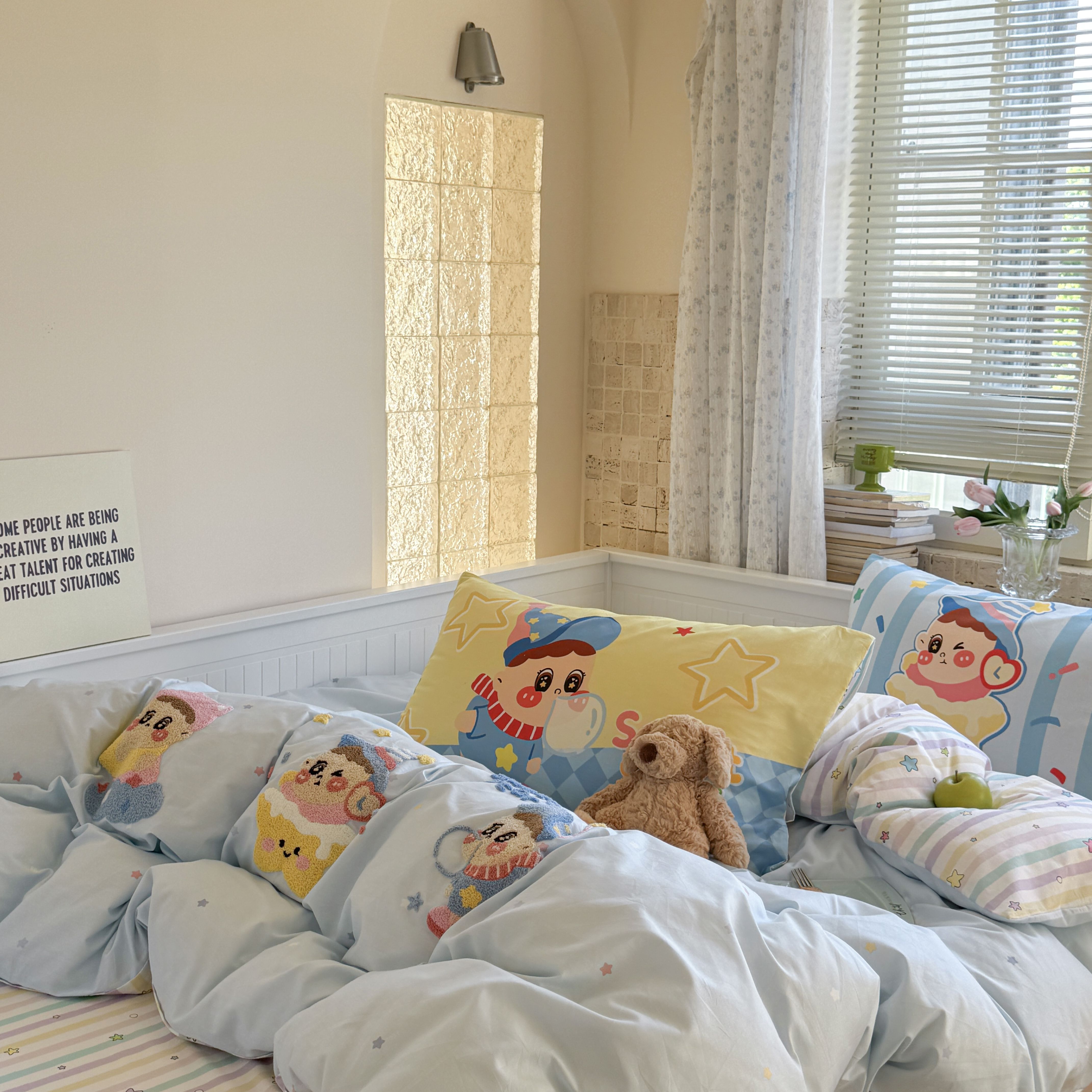(总)柚子YOUTH 2025新款全棉纯棉工艺款13070贴布绣四件套,爱心小象,毛绒小狗,蘑菇女孩,星星法师