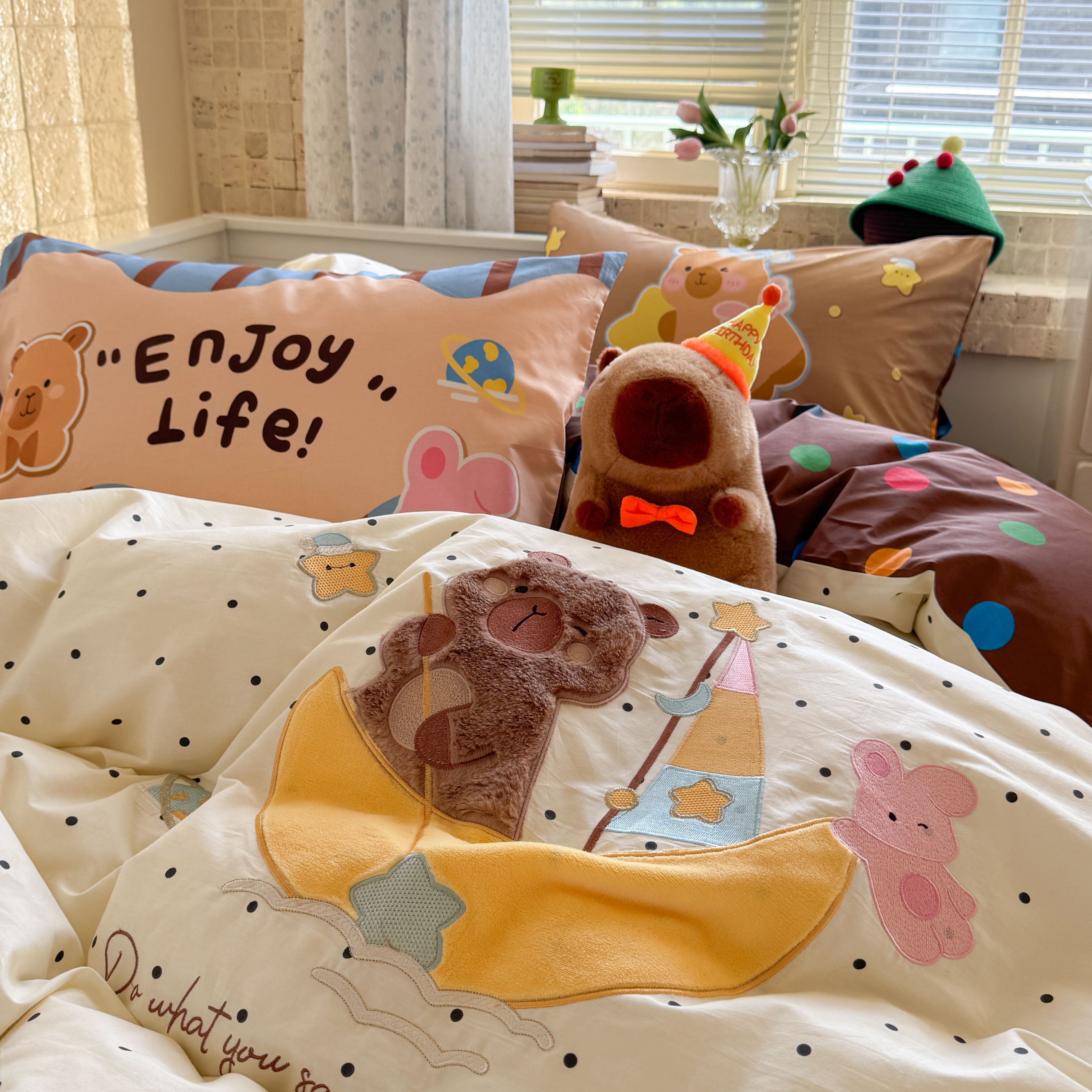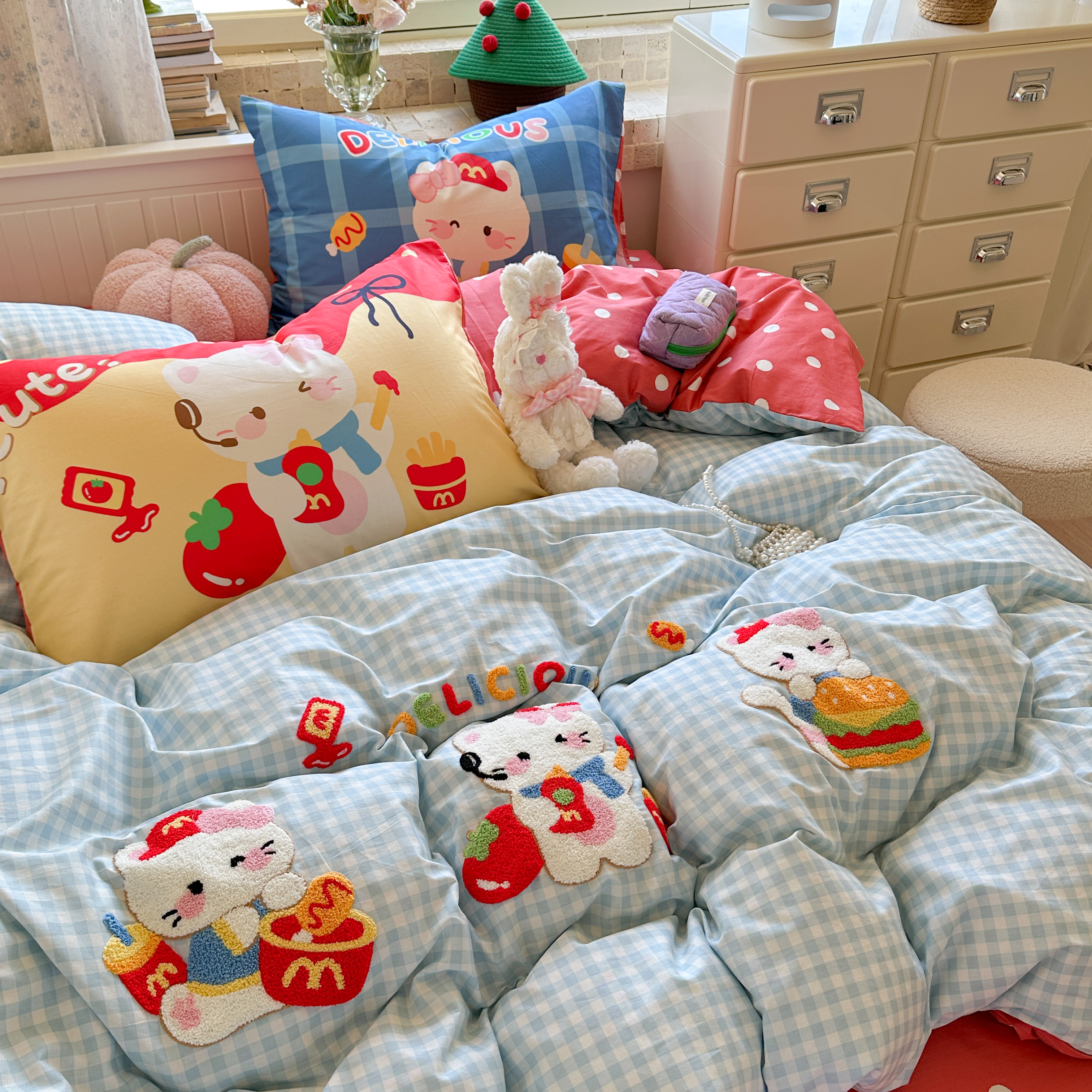 (总)柚子YOUTH 2025新款全棉双层纱贴布绣四件套,棒球熊猫,贝雷帽,冰淇淋小熊,格子玩偶,碎花小兔,小黑猫