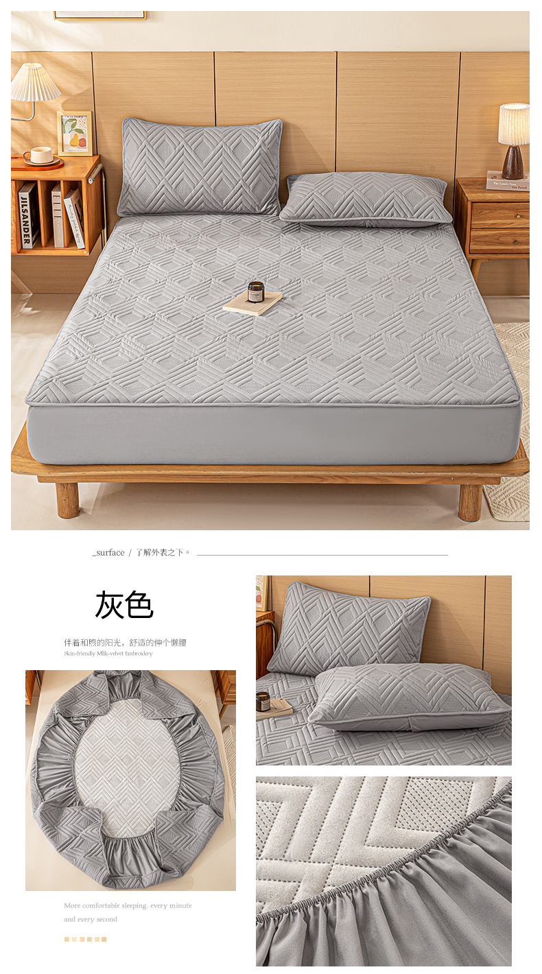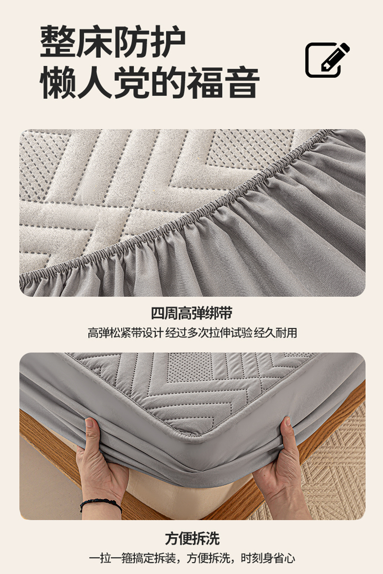 (总)给笠 2025新款A类超声波夹棉床笠,灰色,卡其,米白