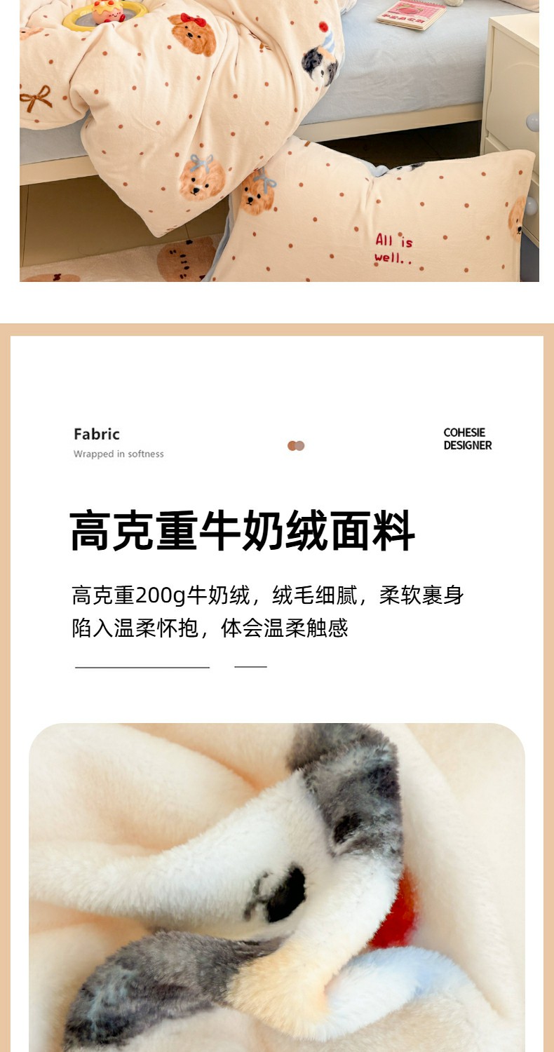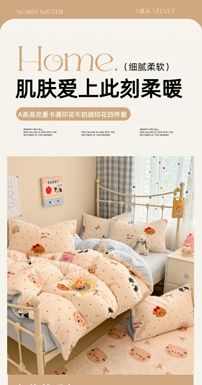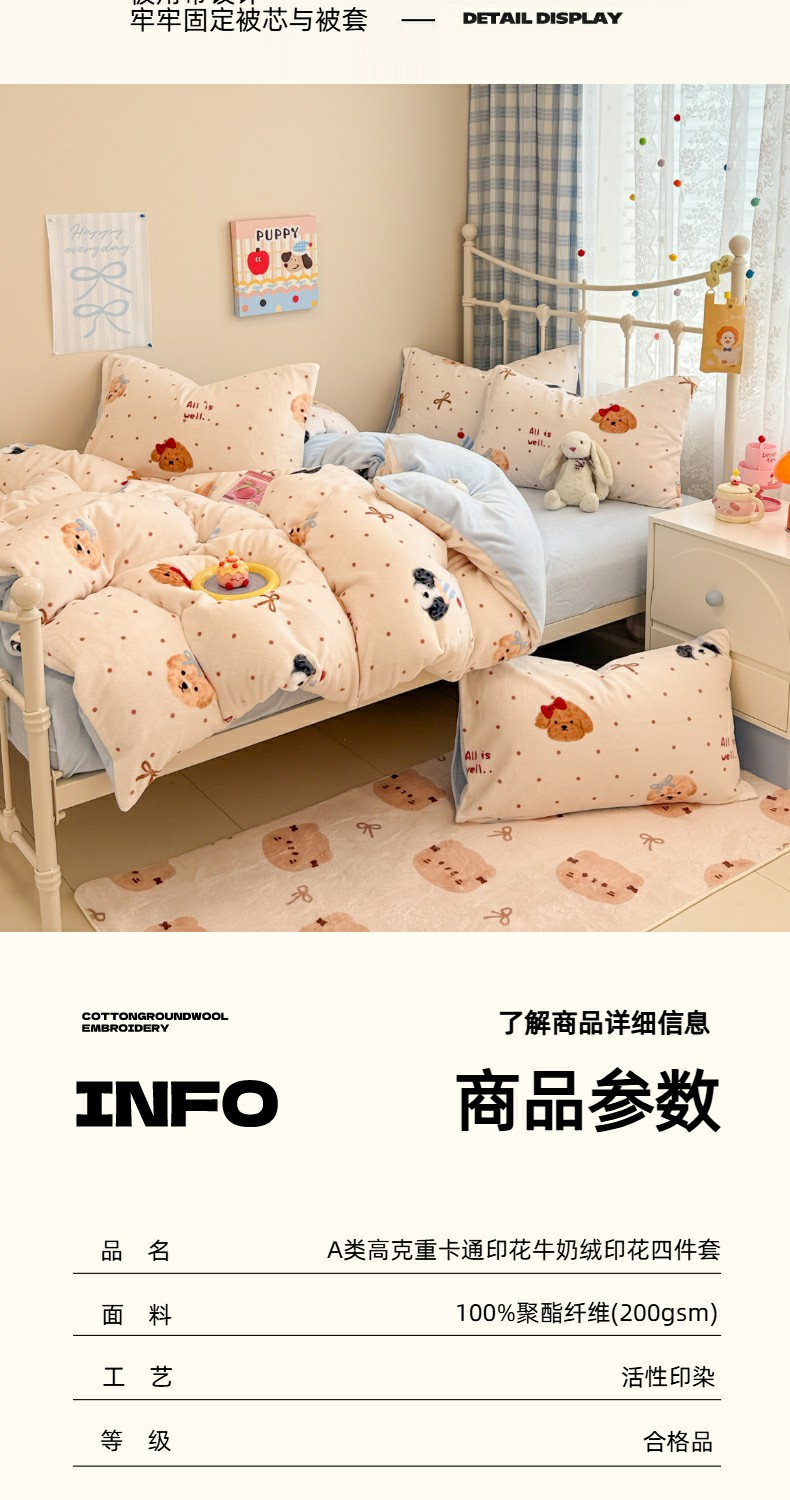 当前位置: 91家纺网 > 商品网购 > 床品套件 > 四件套 > 牛奶绒四件套 > 呗旺鹿 2025新款A类高克重卡通印花牛奶绒印花四件套 蝴蝶结圆点小狗