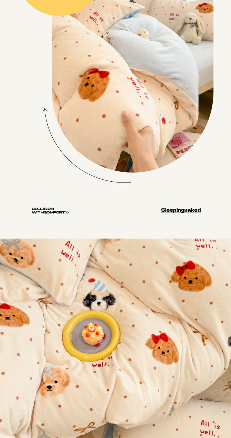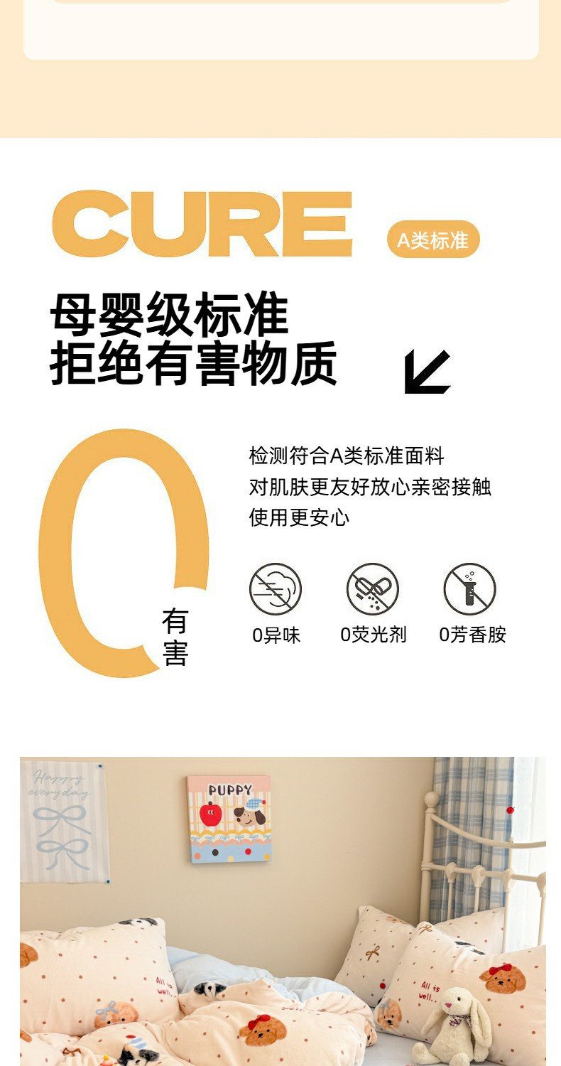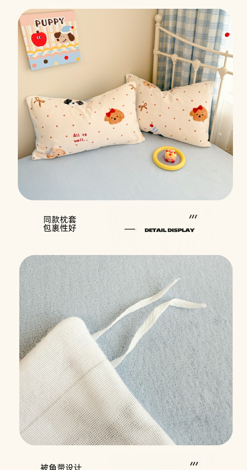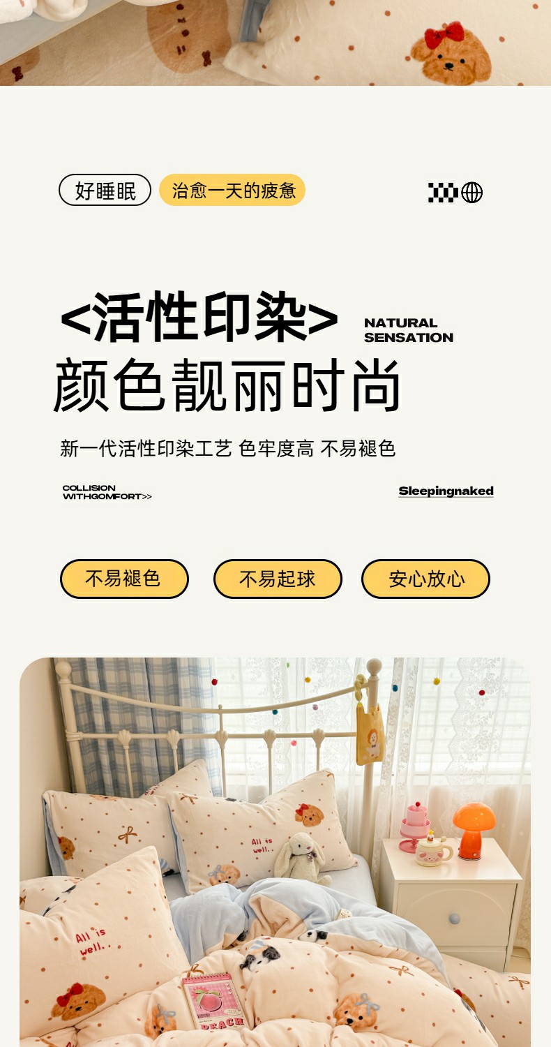 当前位置: 91家纺网 > 商品网购 > 床品套件 > 四件套 > 牛奶绒四件套 > 呗旺鹿 2025新款A类高克重卡通印花牛奶绒印花四件套 蝴蝶结圆点小狗