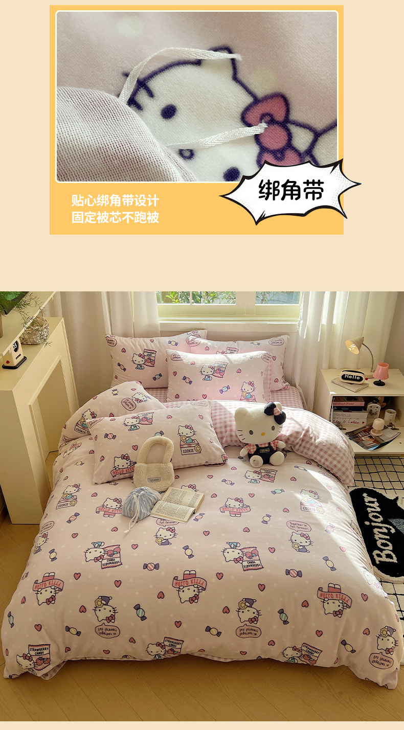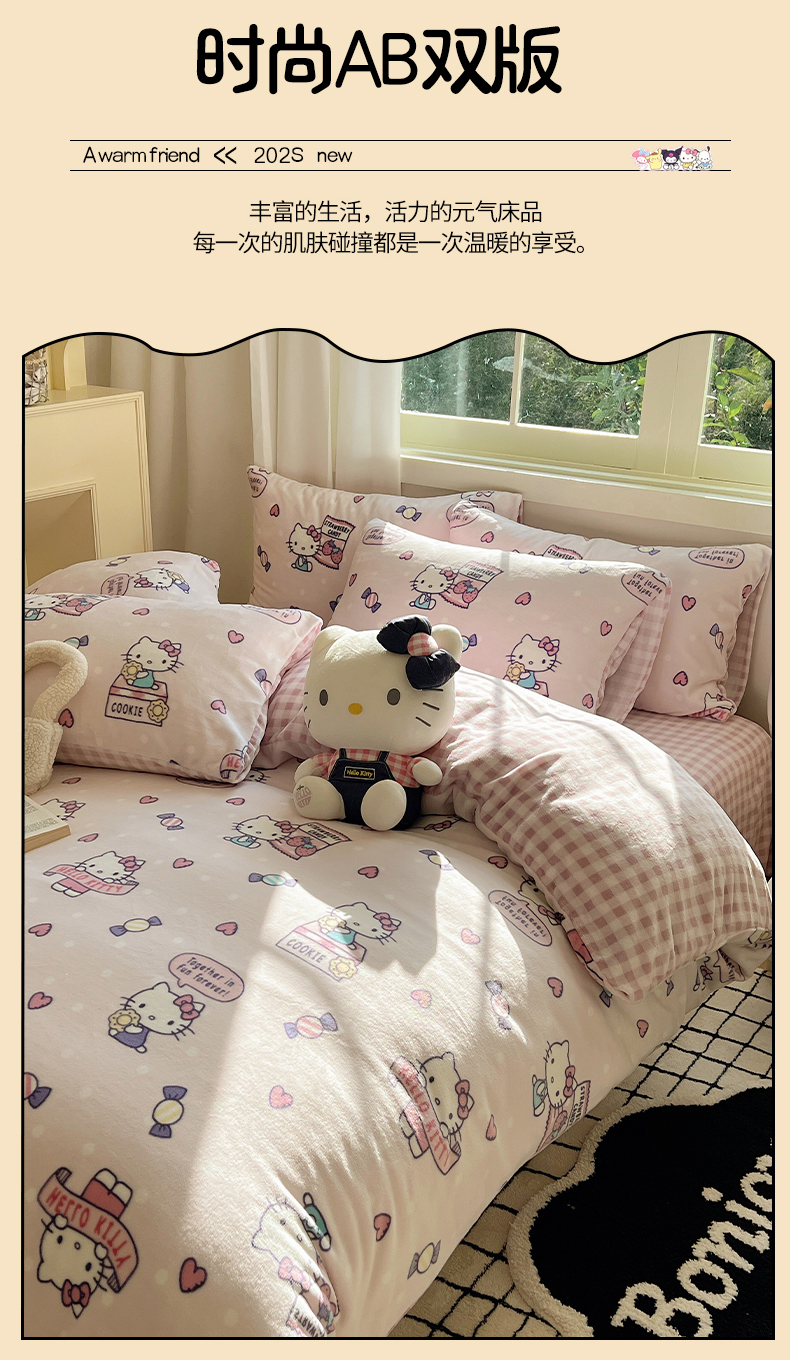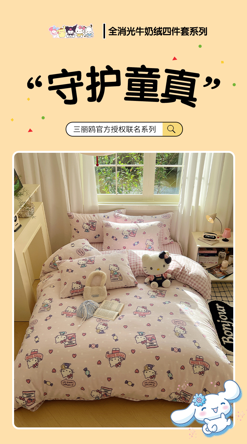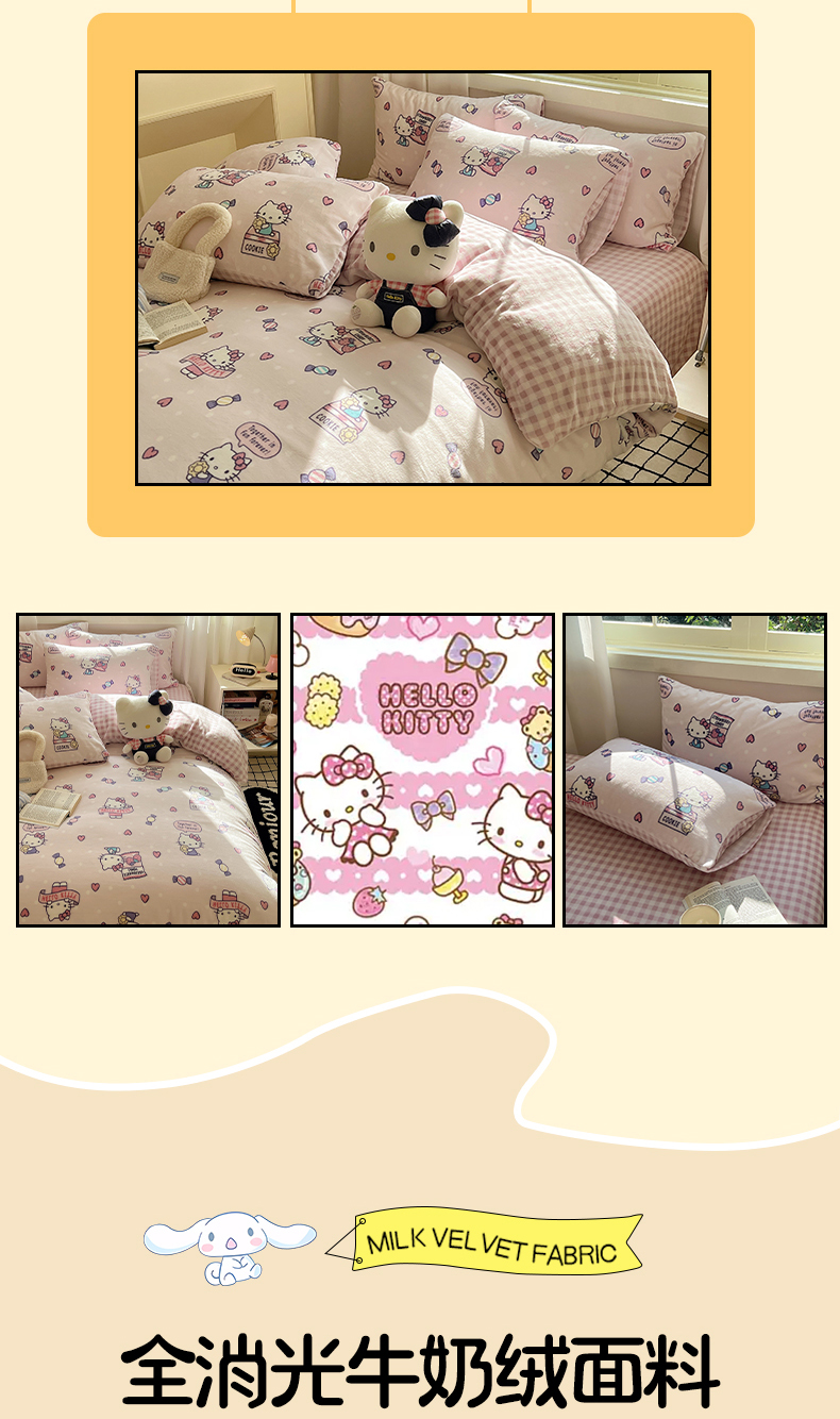 当前位置: 91家纺网 > 商品网购 > 床品套件 > 四件套 > 牛奶绒四件套 > 三朵家纺 2025新款三丽鸥印花牛奶绒四件套 乐园KT