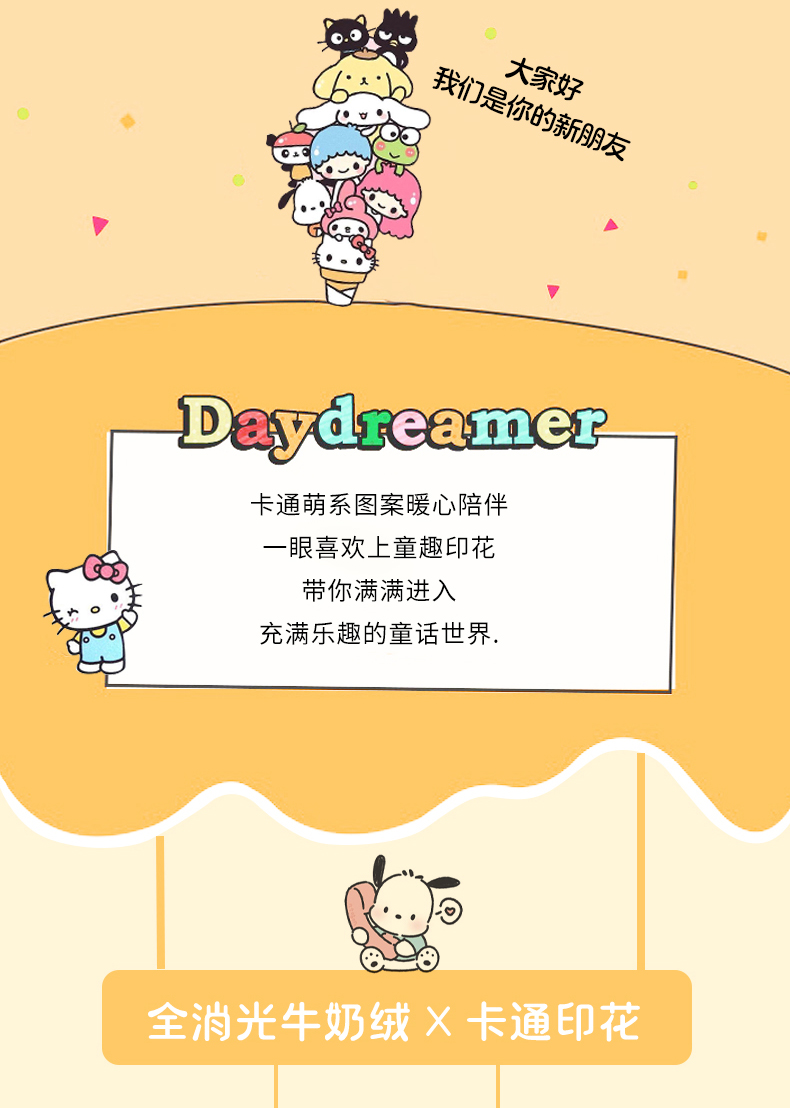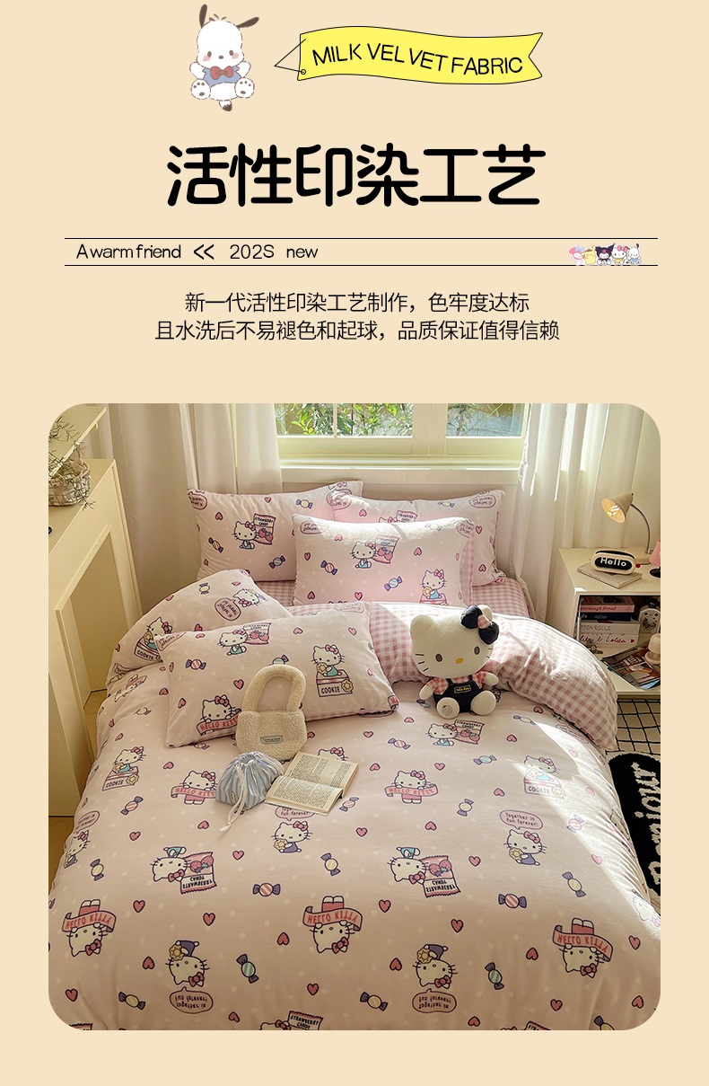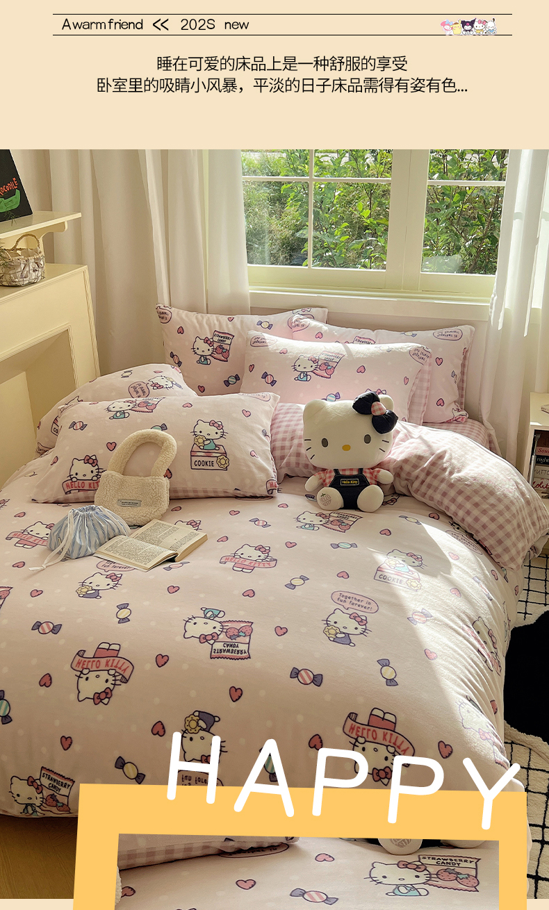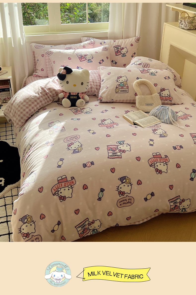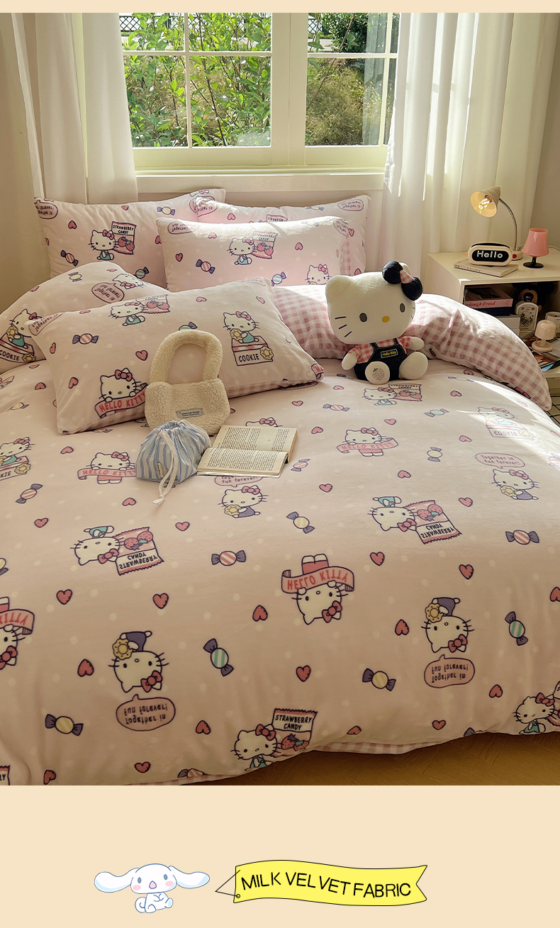 当前位置: 91家纺网 > 商品网购 > 床品套件 > 四件套 > 牛奶绒四件套 > 三朵家纺 2025新款三丽鸥印花牛奶绒四件套 乐园KT