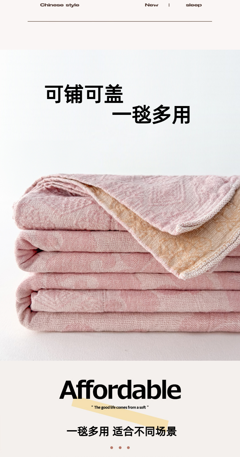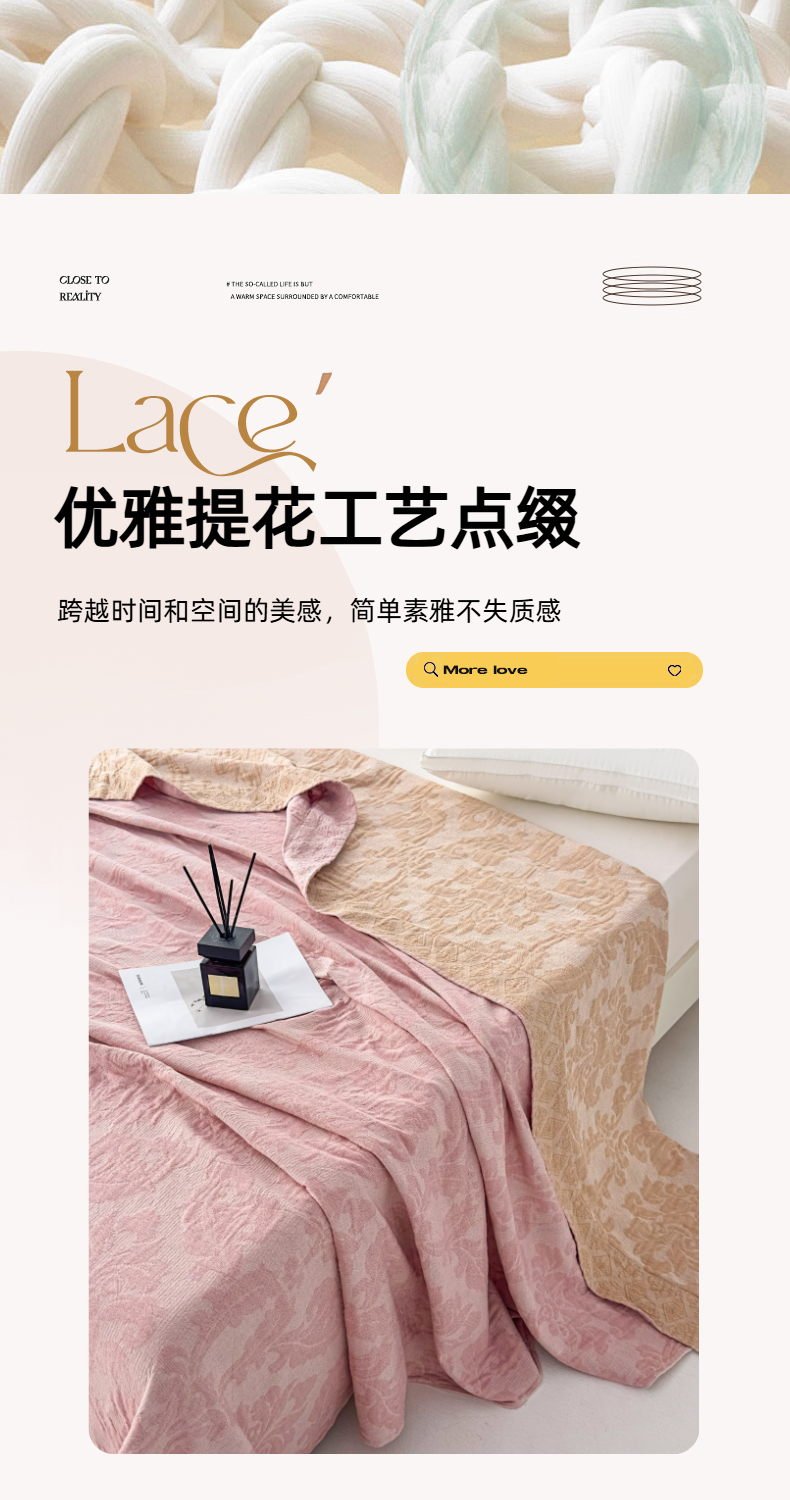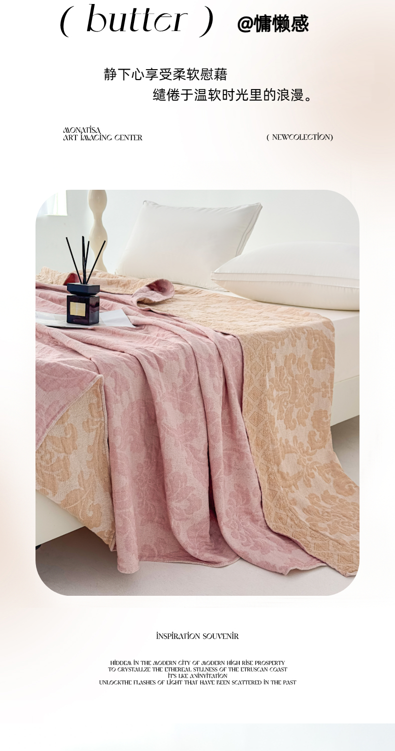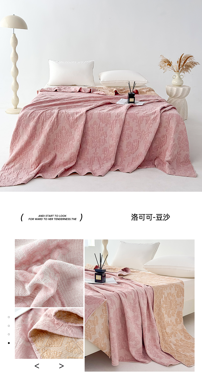 悦然毛巾被 2025全棉欧式提花纱布毛巾被毛毯-洛可可 洛可可豆沙