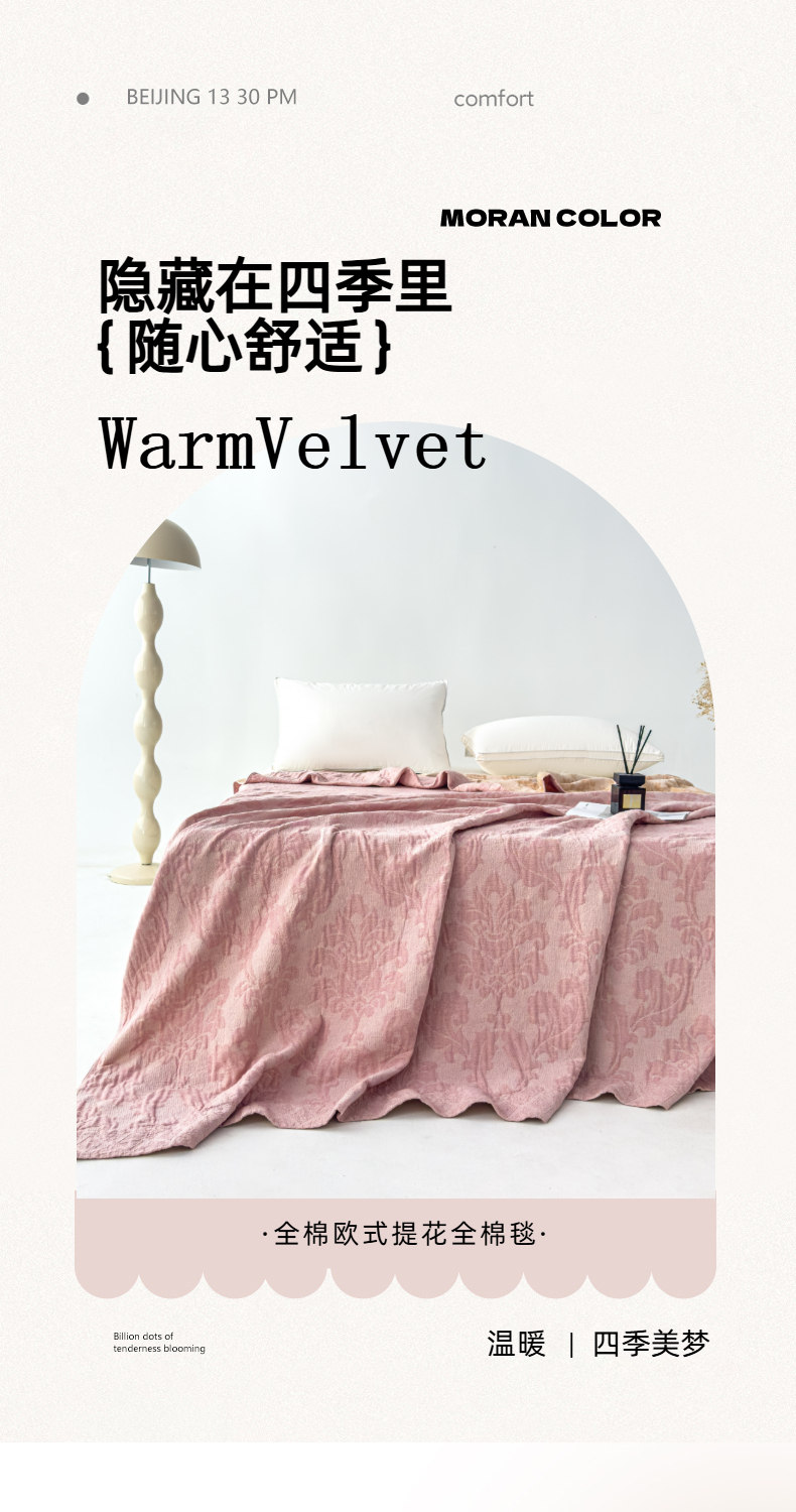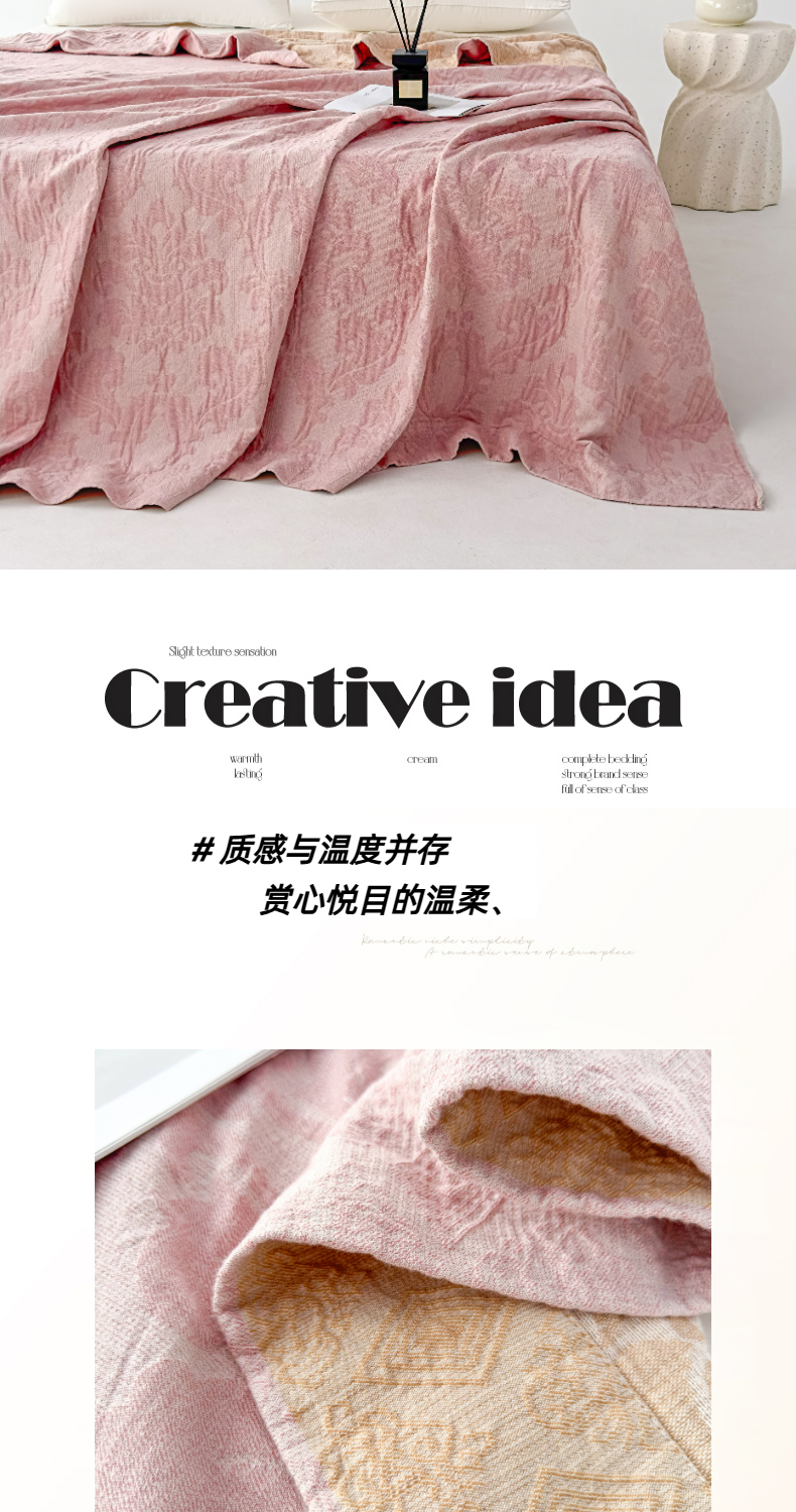 商品名称:悦然毛巾被 2025全棉欧式提花纱布毛巾被毛毯-洛可可 洛可可豆沙