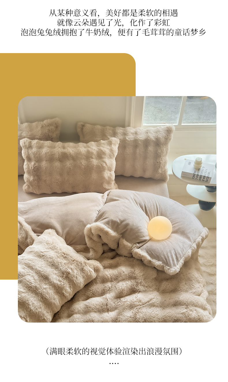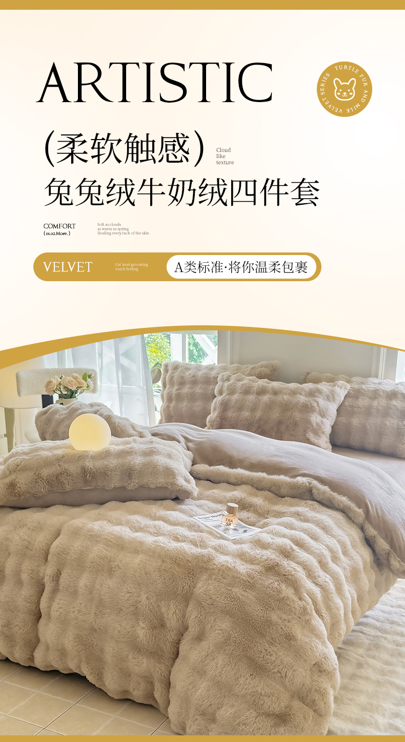 当前位置: 91家纺网 > 商品网购 > 床品套件 > 四件套 > 其它四件套 > 品乐家纺 2025新款简约纯色A类220克泡泡兔绒四件套 纯色-杏仁咖