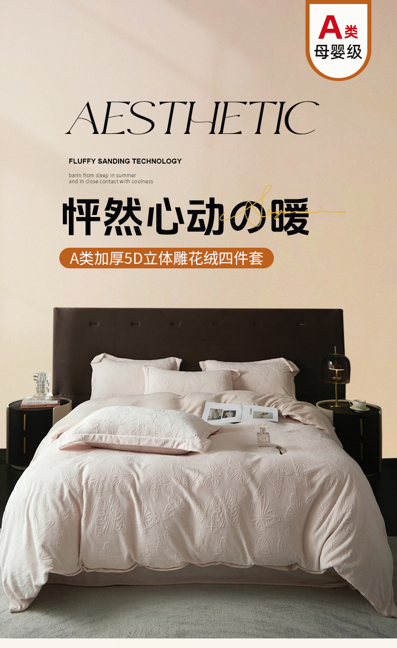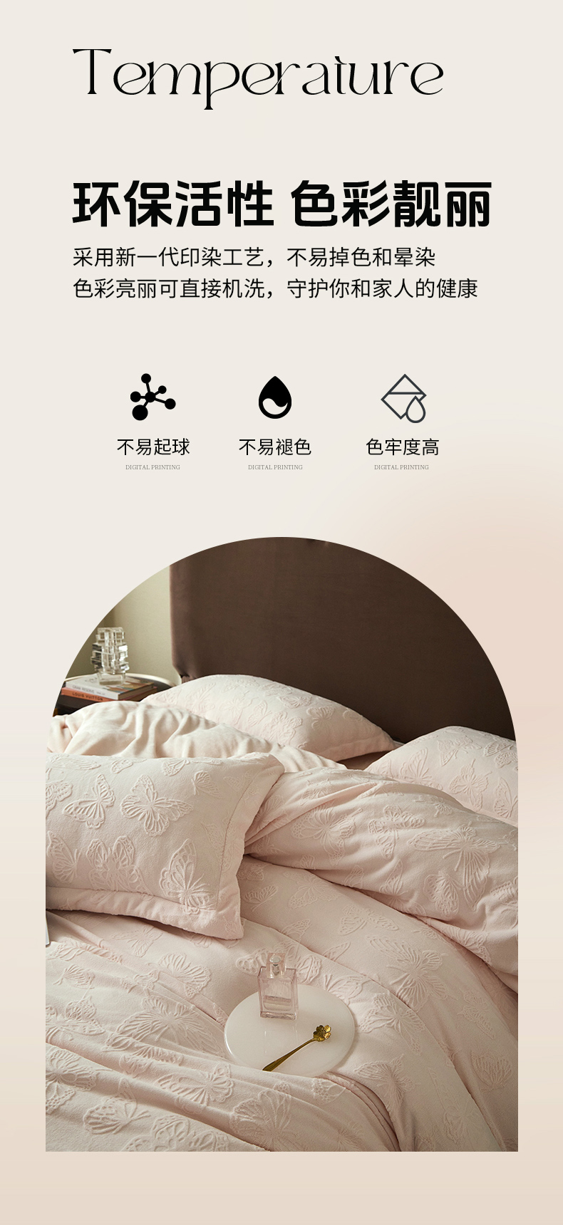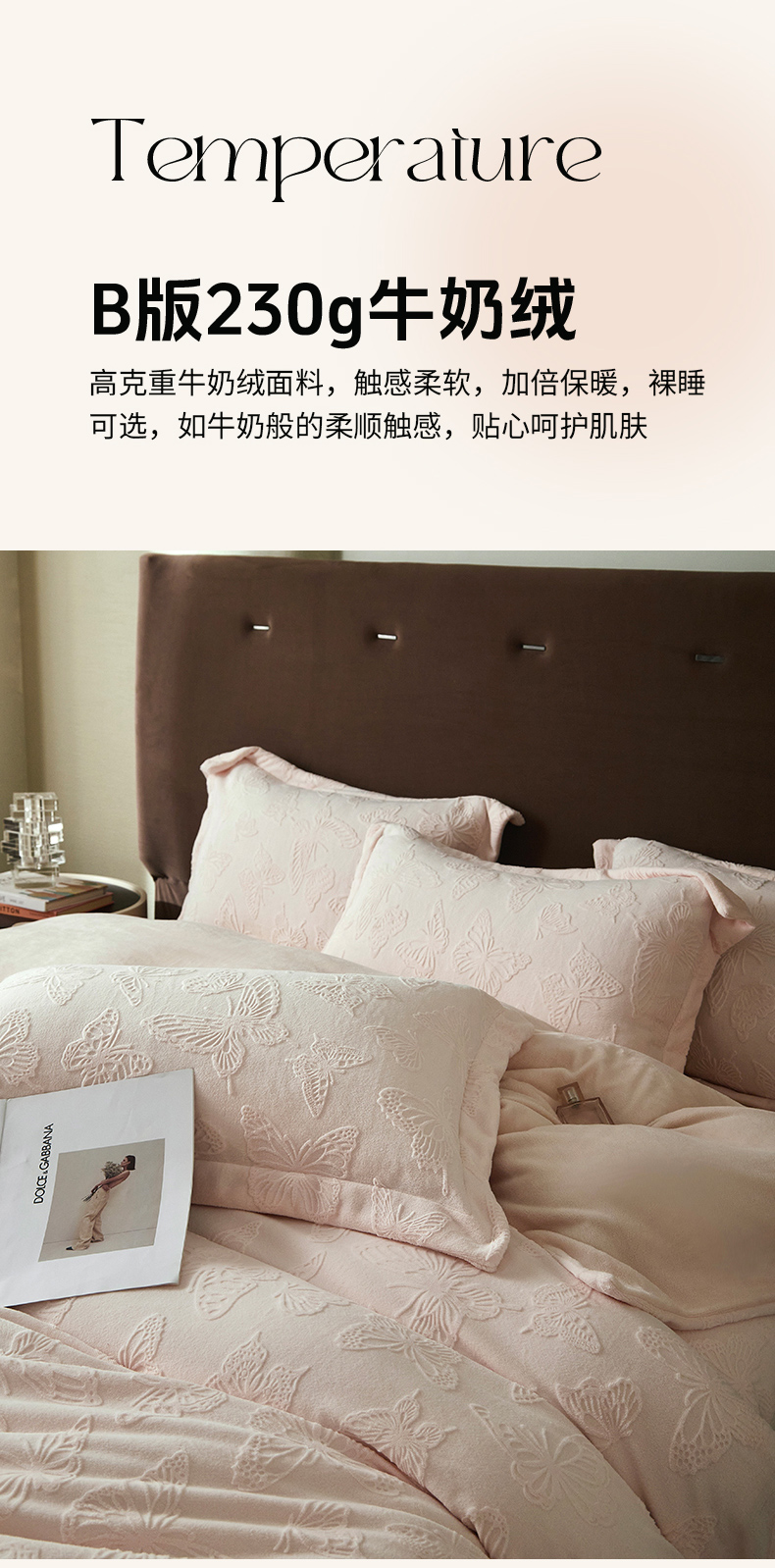当前位置: 91家纺网 > 商品网购 > 床品套件 > 四件套 > 牛奶绒四件套 > 亿梵 2025秋冬新款A类全消光牛奶绒立体5D雕花绒四件套蝶舞轻裳-樱花粉