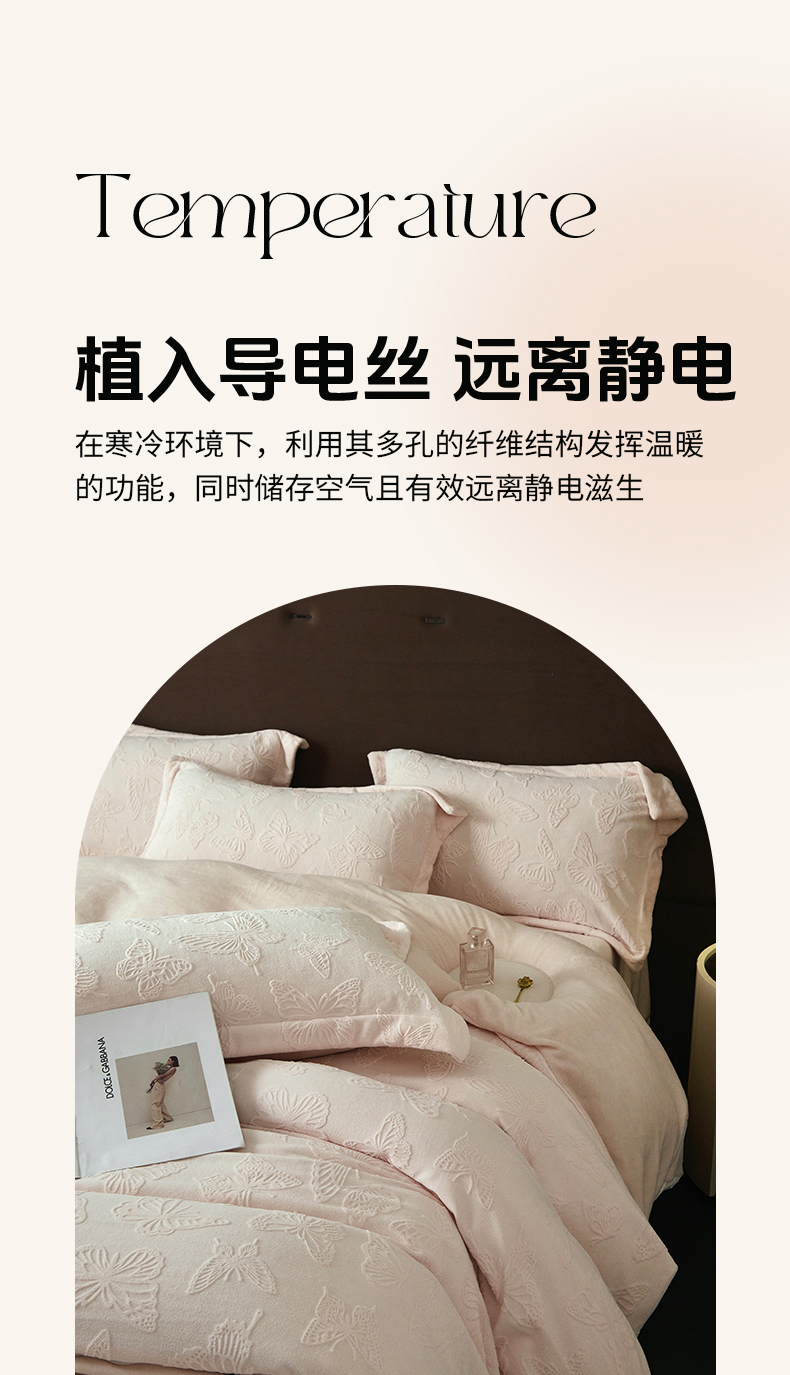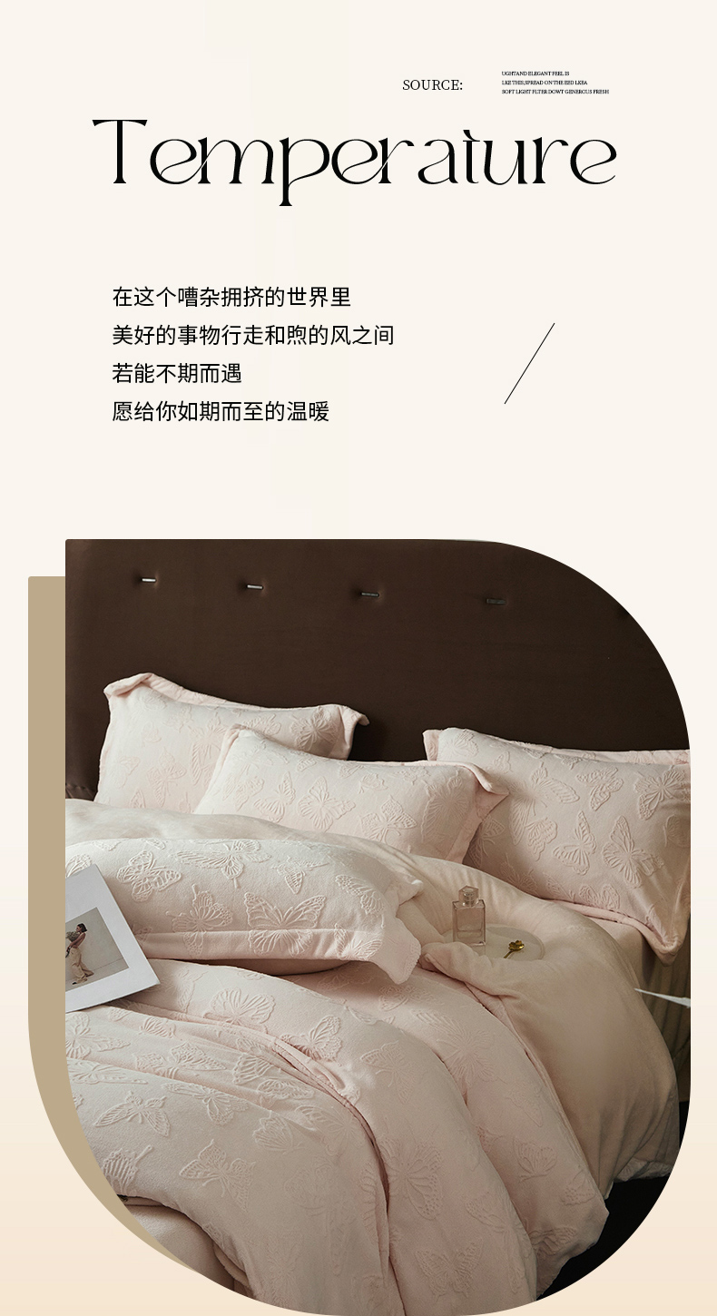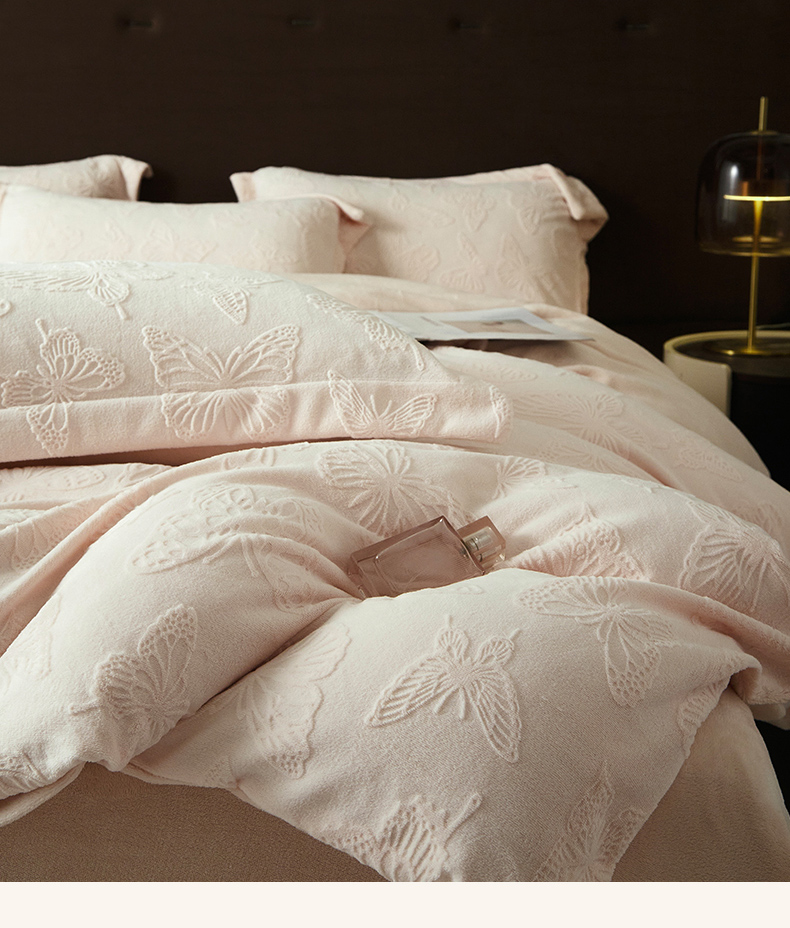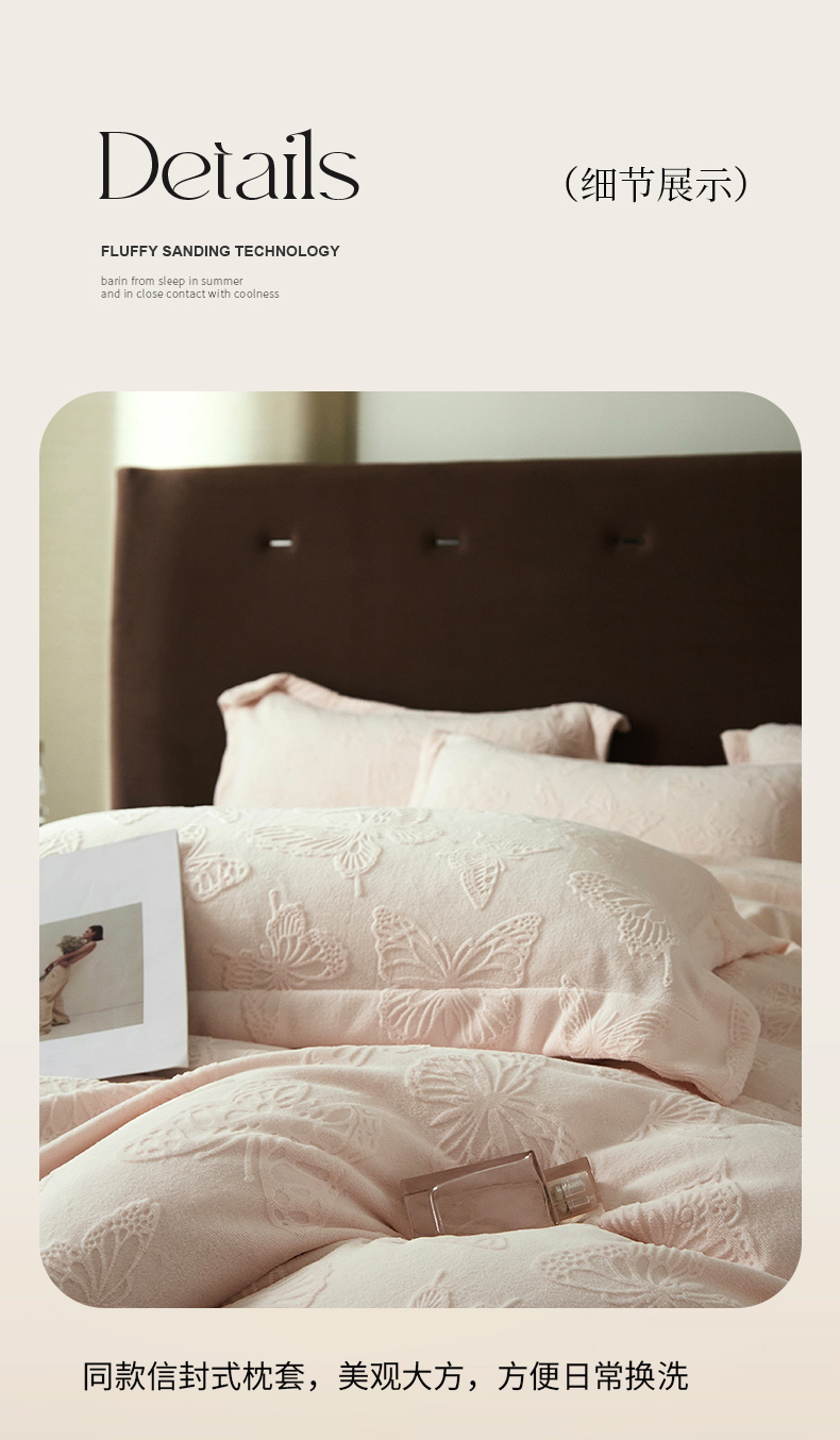 当前位置: 91家纺网 > 商品网购 > 床品套件 > 四件套 > 牛奶绒四件套 > 亿梵 2025秋冬新款A类全消光牛奶绒立体5D雕花绒四件套蝶舞轻裳-樱花粉