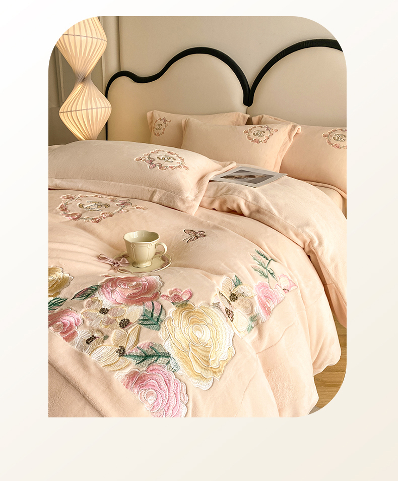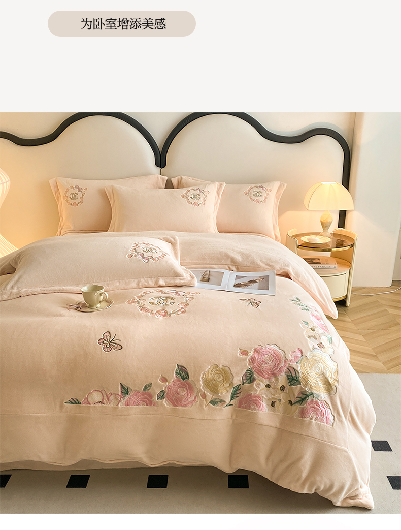 (总)苹果星家纺 2025新款高克重纯色牛奶绒刺绣四件套-奢香夫人,奢香夫人-粉,奢香夫人-杏,奢香夫人-紫,奢香夫人-蓝