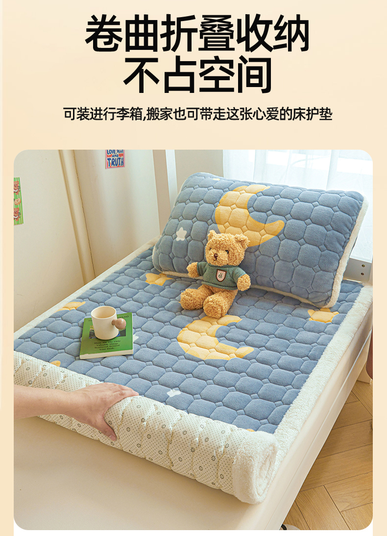 雯豆家纺 【加厚款】2025新款牛奶绒床褥床垫学生宿舍床护垫子 牛奶绒床褥-筑梦星空【加厚款】