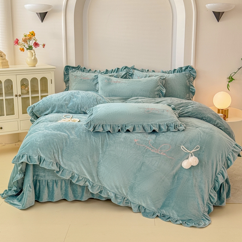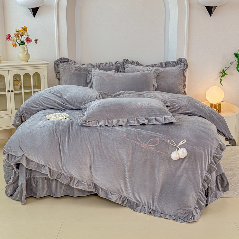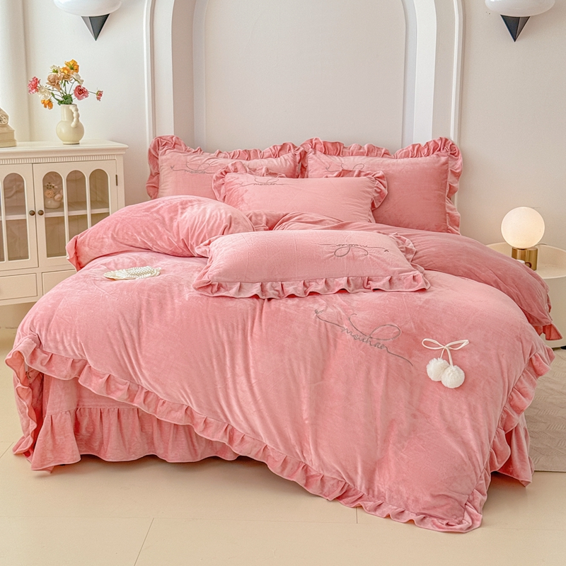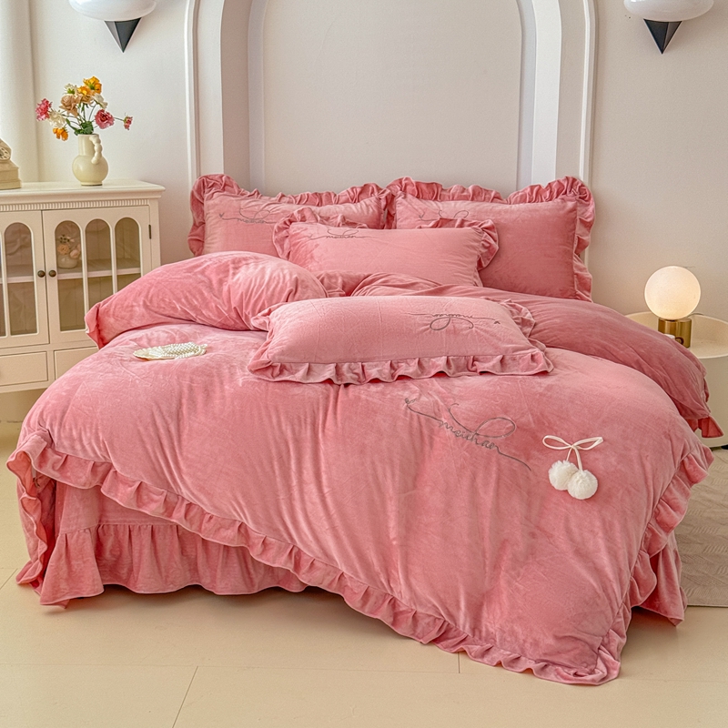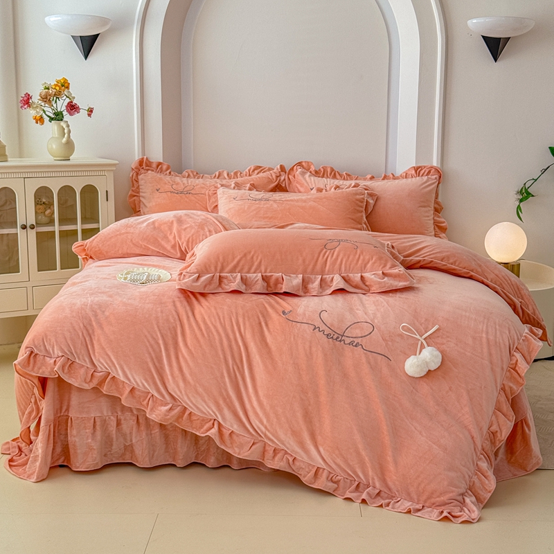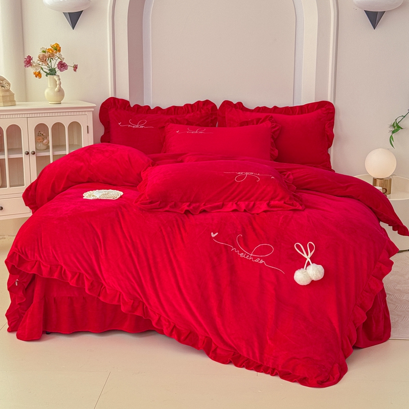 (总)恋尚羽家纺 2025新款韩版花边婴儿绒绣花大床裙四件套宝宝绒婴肤绒公主风韩式,大红色,豆沙色,粉色,湖蓝色,灰色,桔色,墨绿色,紫色