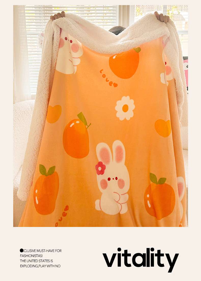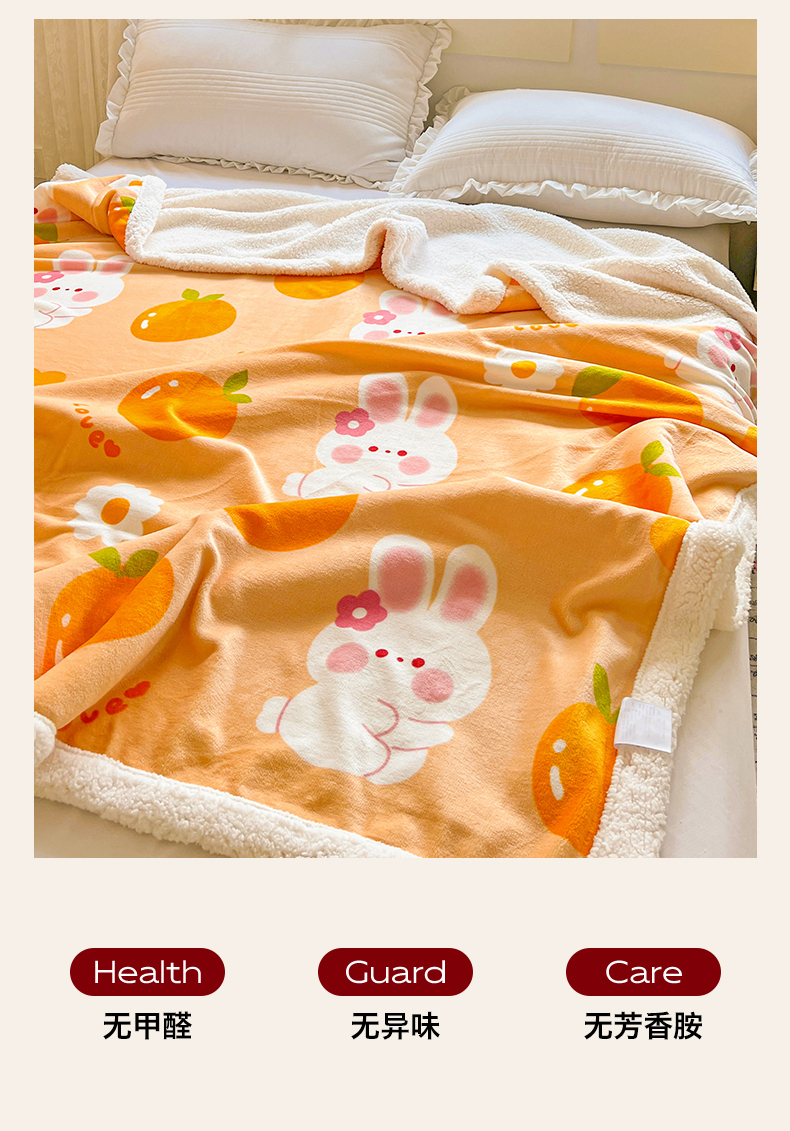 名兮 2025新款秋冬高克重牛奶绒羊羔绒多功能盖毯 毛毯-兔兔派对