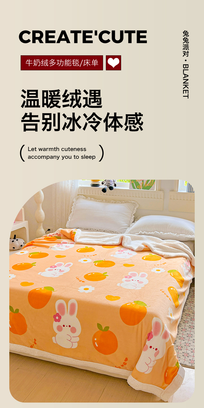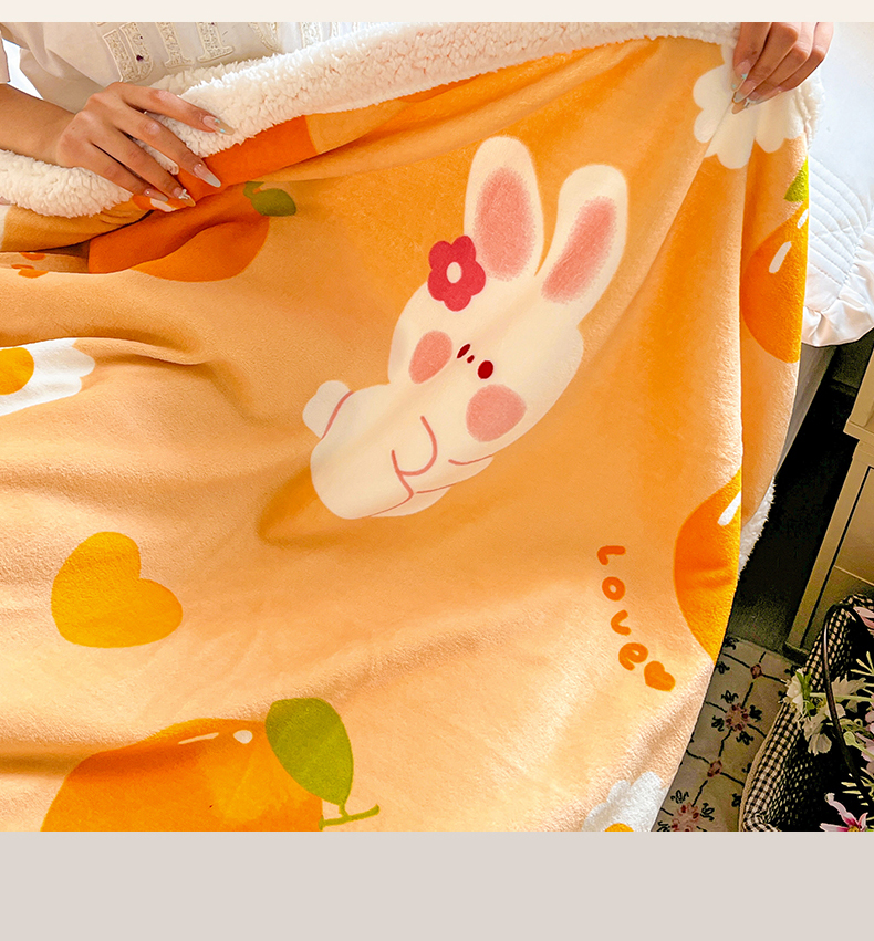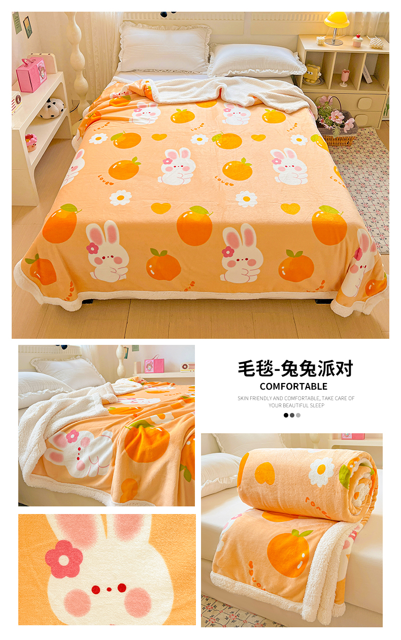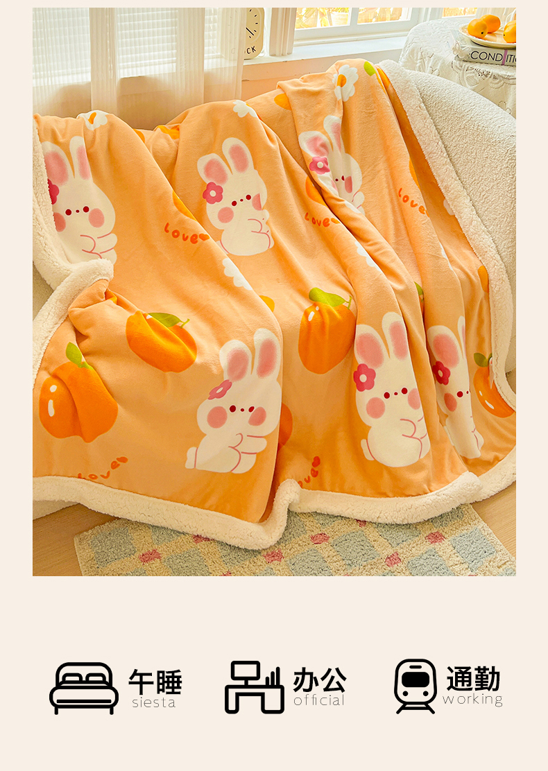 商品名称:名兮 2025新款秋冬高克重牛奶绒羊羔绒多功能盖毯 毛毯-兔兔派对