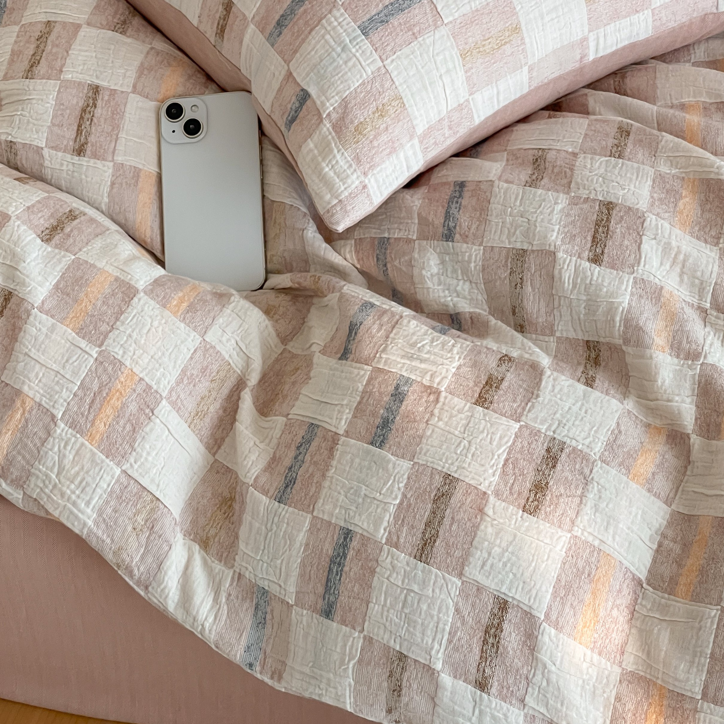 当前位置: 91家纺网 > 商品网购 > 床品套件 > 四件套 > 全棉普通四件套 > (总)云上 2025新款三层纱全棉纯棉色织大提花曲奇格子四件套