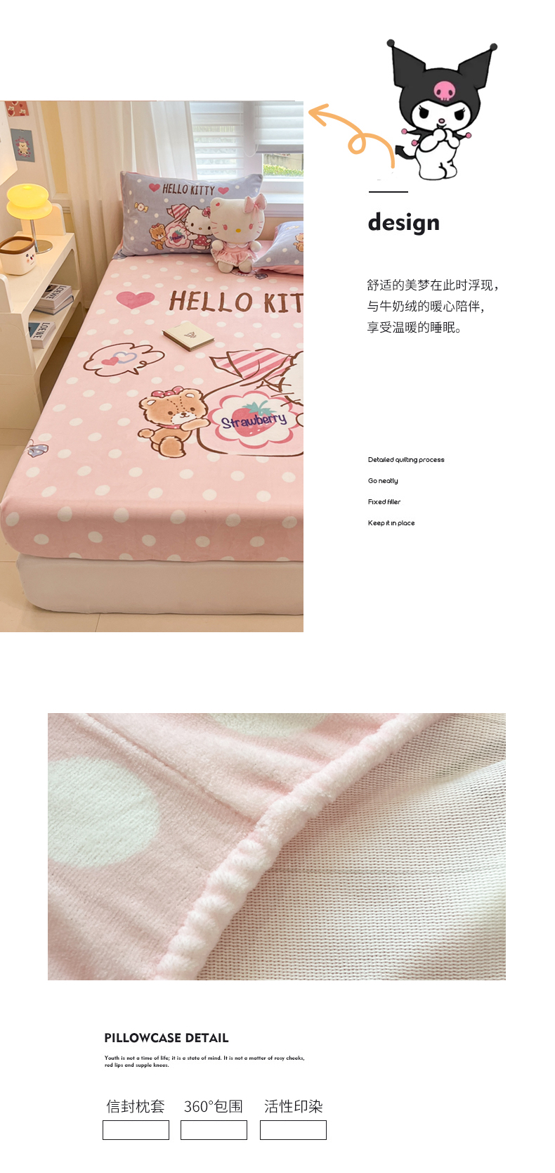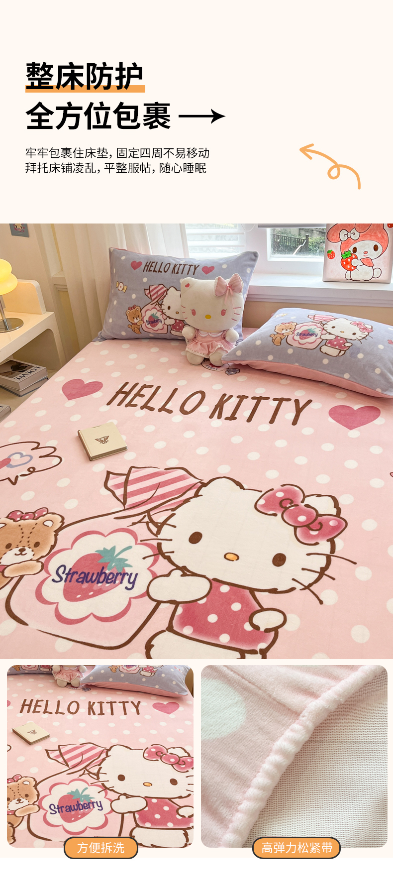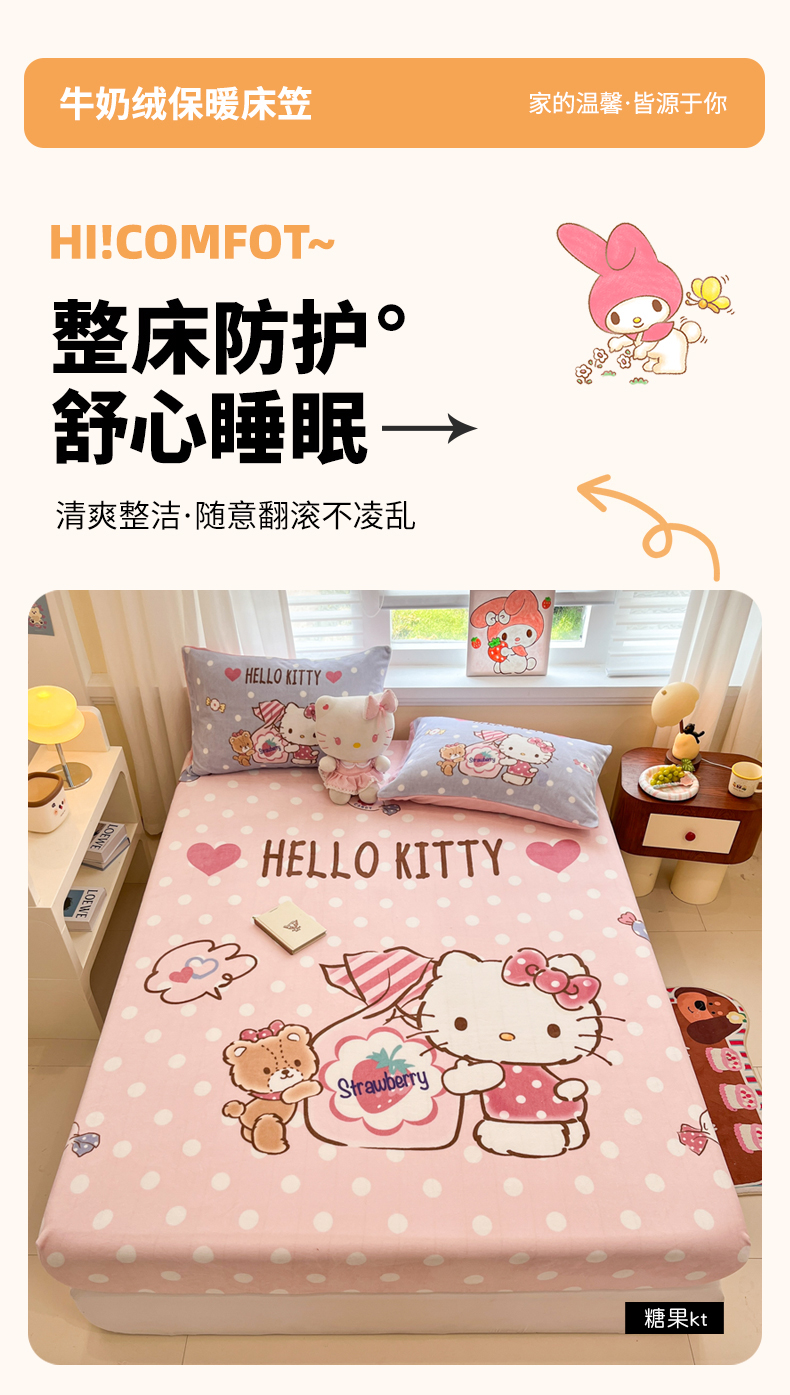 金爱家 2025新款大版三丽鸥高克重牛奶绒保暖床笠 绒单品-糖果kt