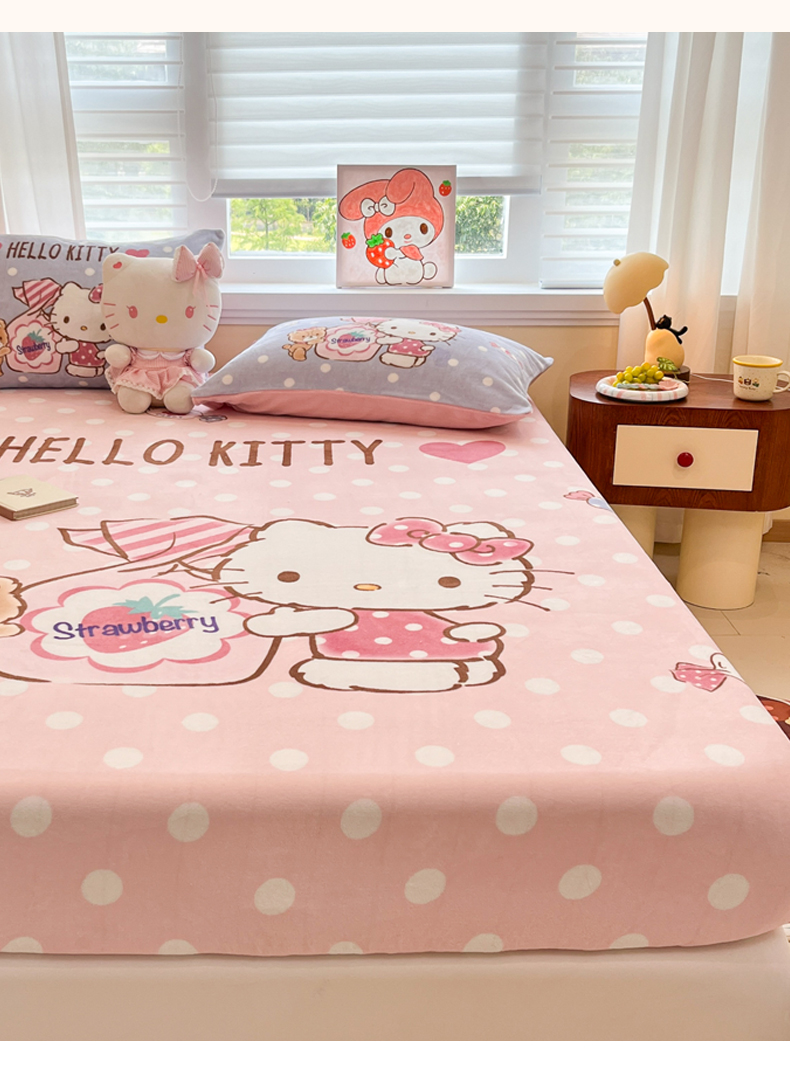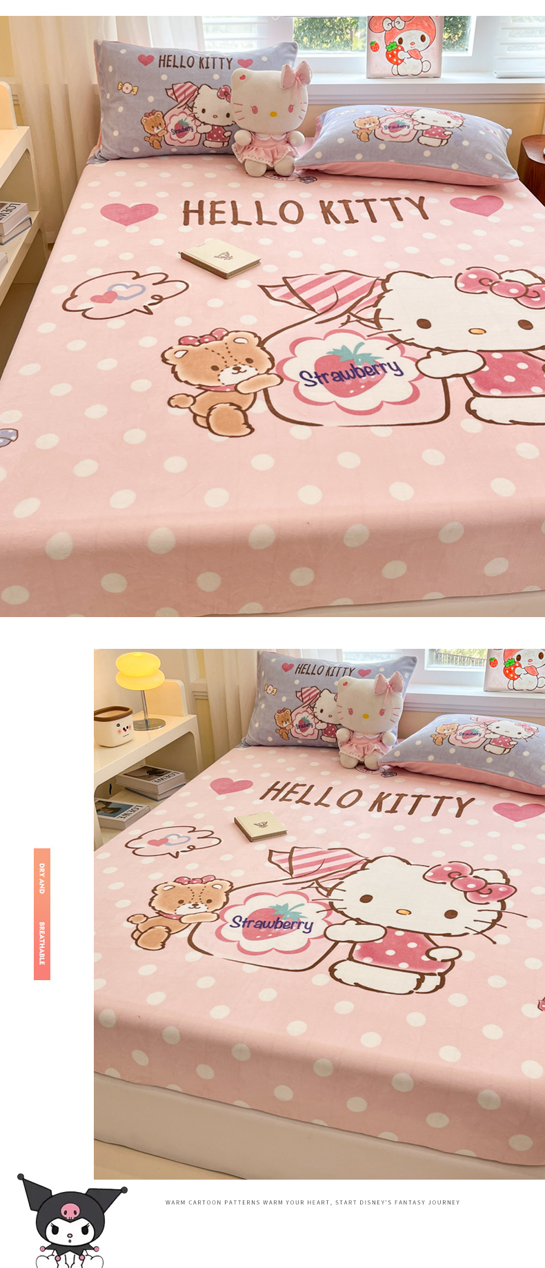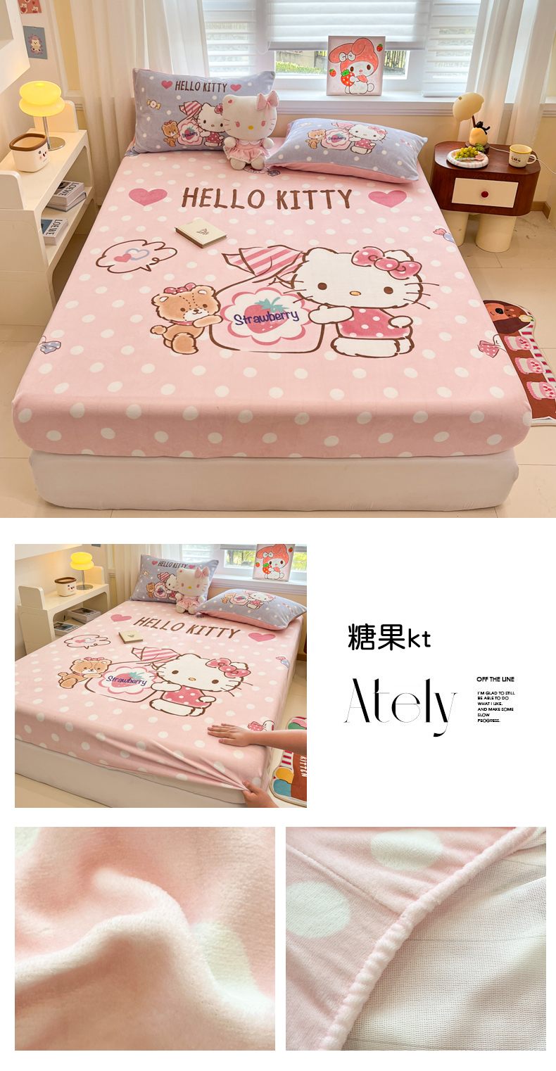 金爱家 2025新款大版三丽鸥高克重牛奶绒保暖床笠 绒单品-糖果kt