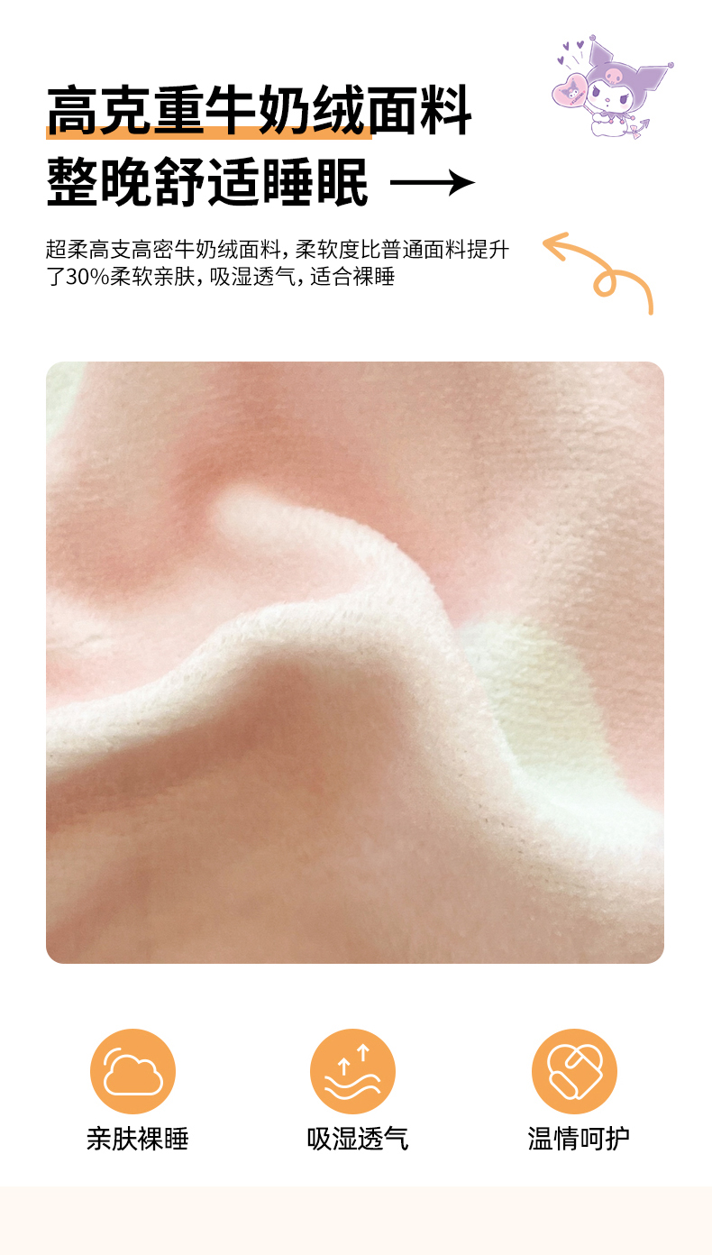 • 91家纺网 家纺一手货源 找家纺 金爱家 2025新款大版三丽鸥高克重牛奶绒保暖床笠 绒单品-糖果kt