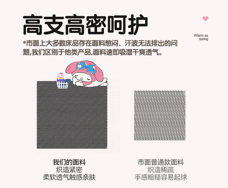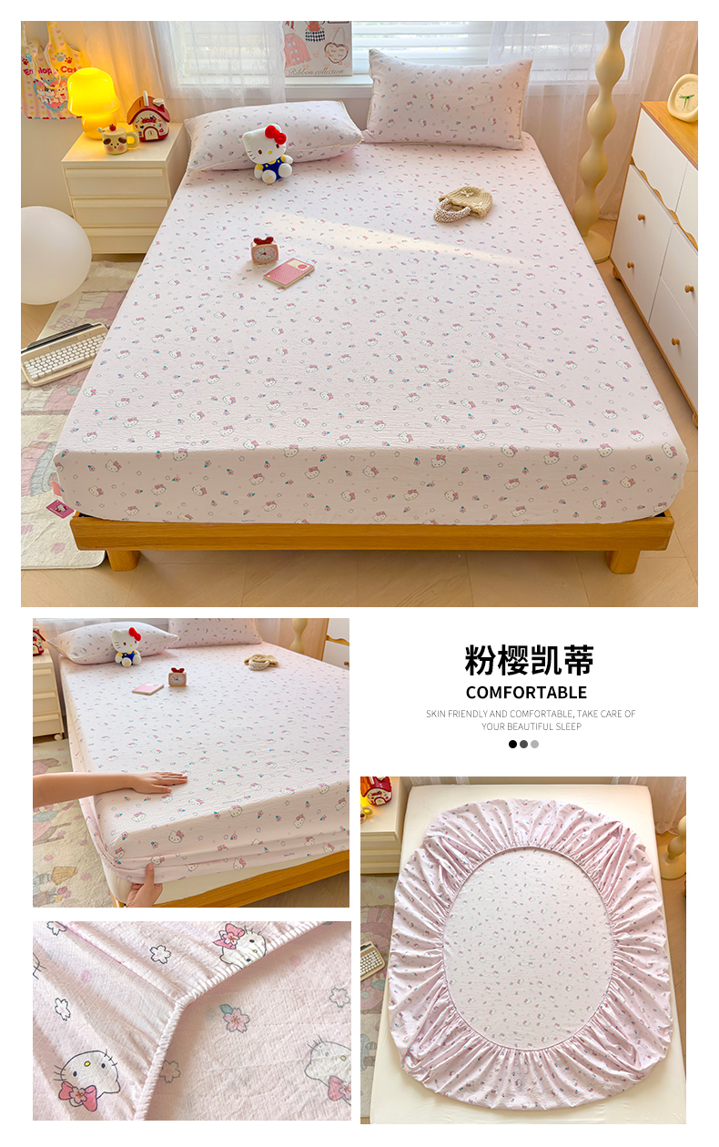 商品名称:梦庭帛美 2025新款高克重110克云感提花皱皱纱正版三丽鸥床笠 粉樱凯蒂
