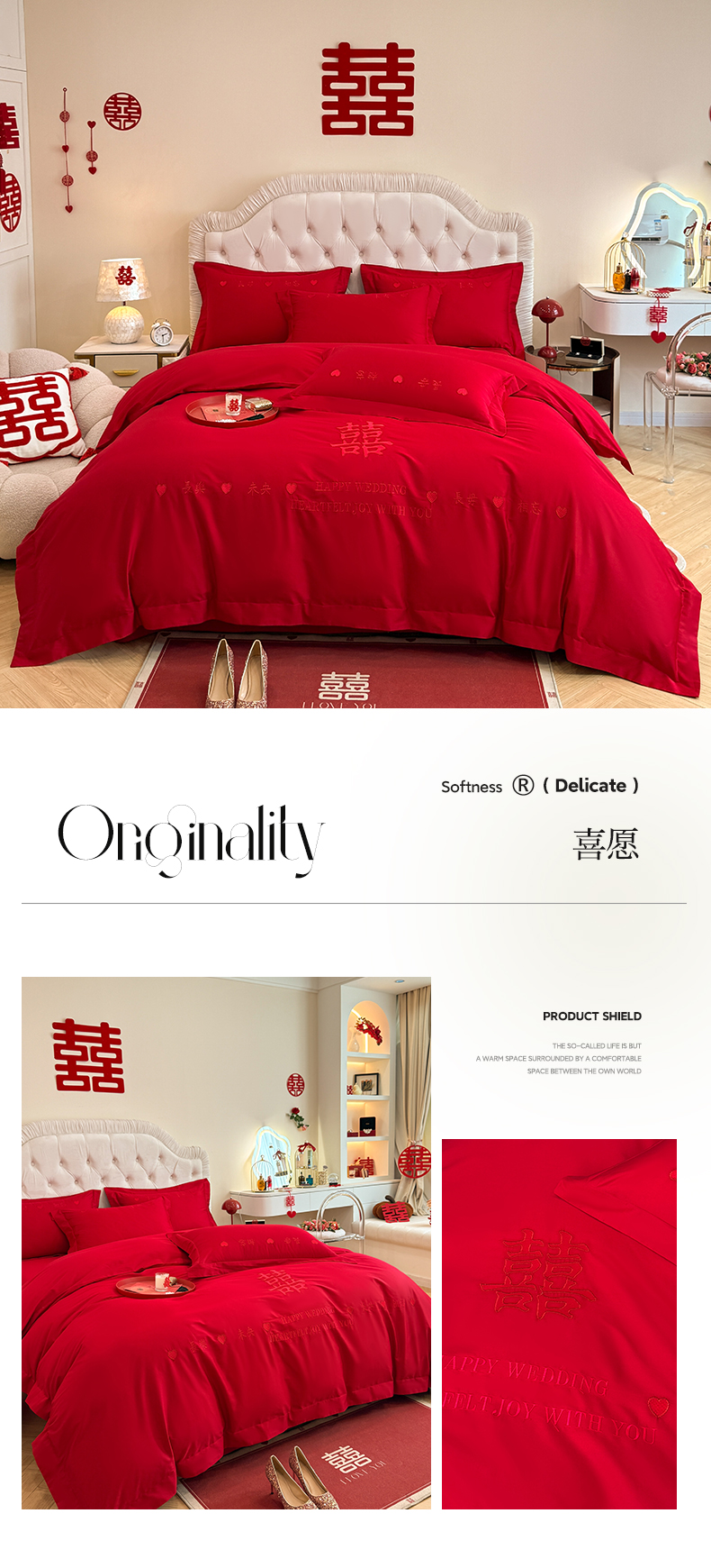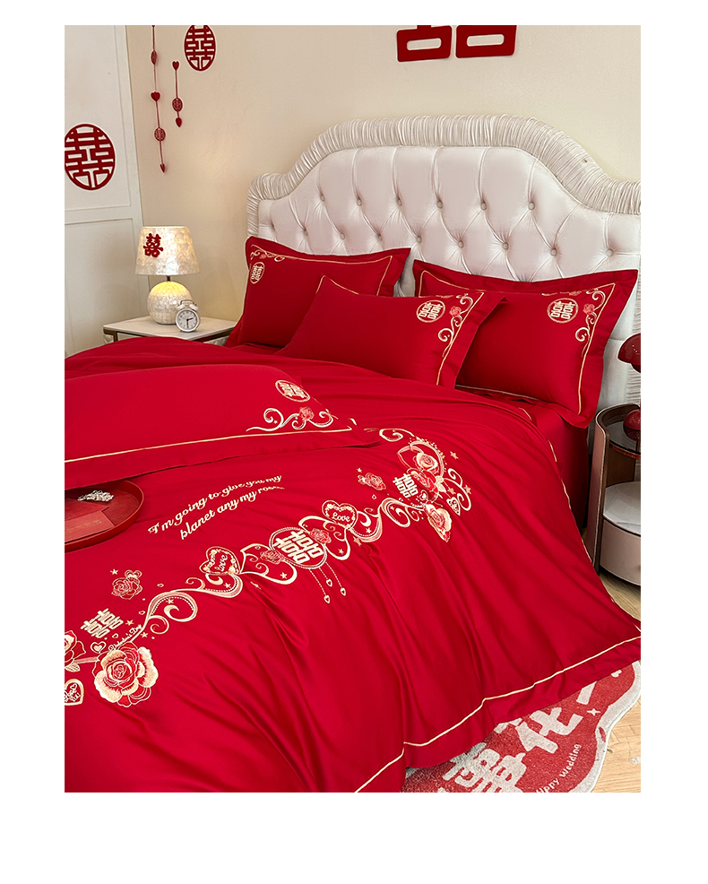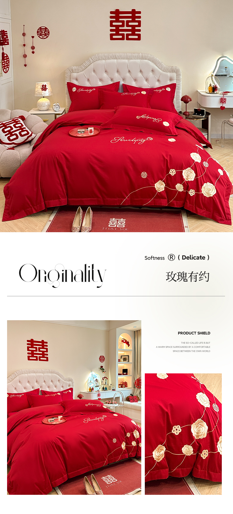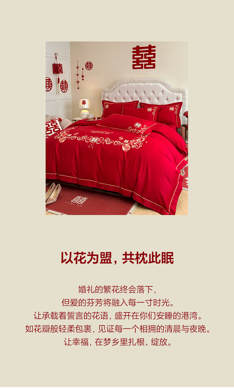 (总)金麦家纺 2025新款亲肤磨毛刺绣婚庆四件套,大喜,喜结良缘,喜愿,吾家有喜,喜爱,玫瑰有约