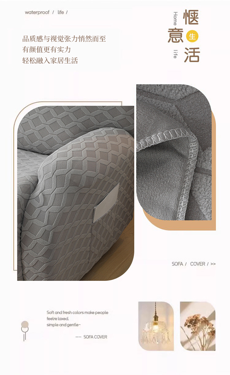 (总)千彤沙发垫 2022新款提花自由生活系列弹力沙发套,豆绿,米黄,深灰,水蓝,银灰,紫色