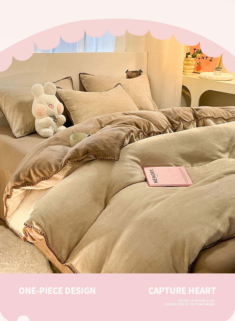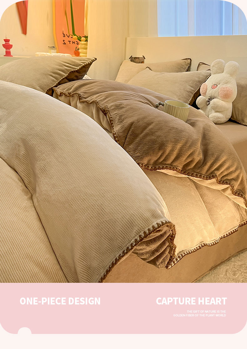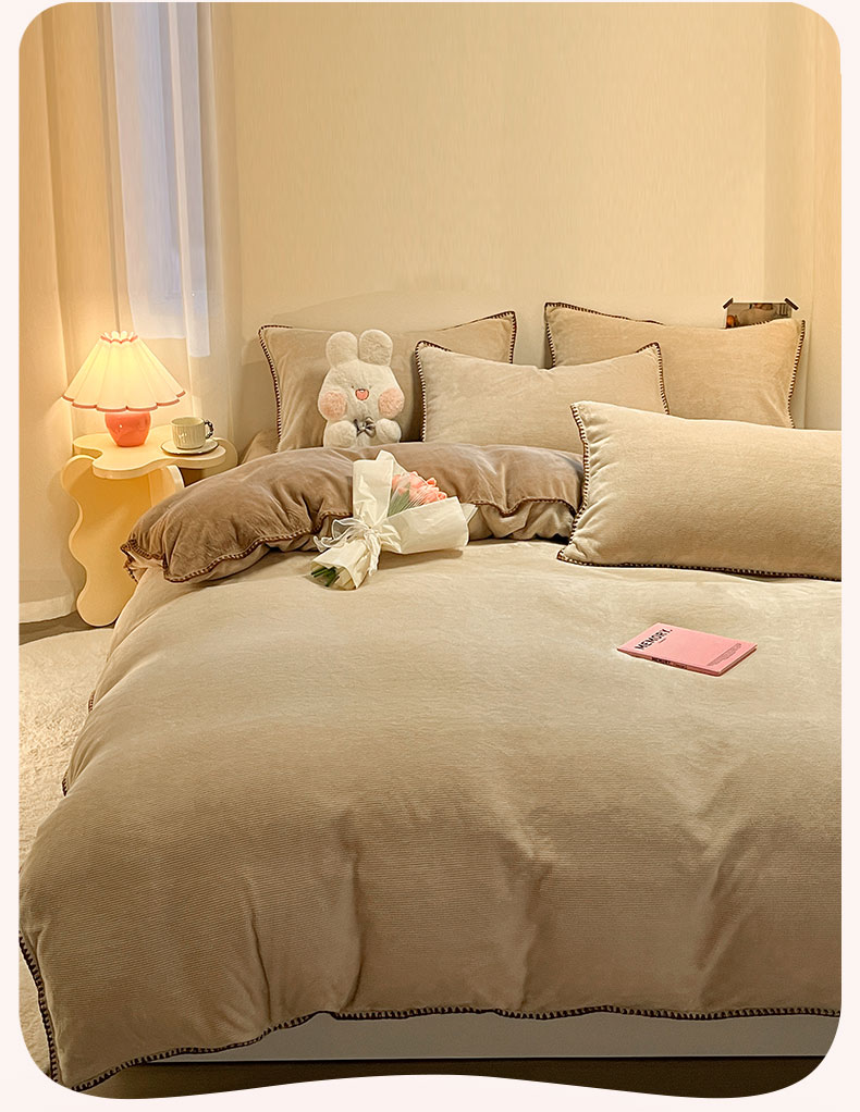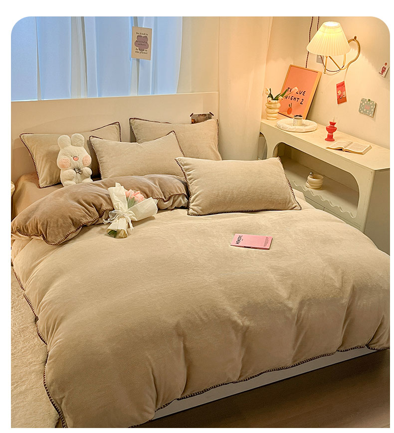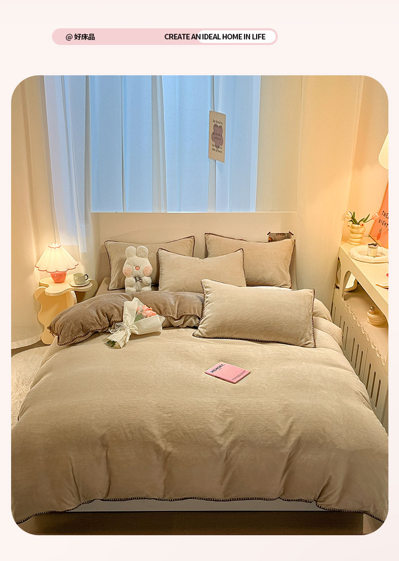 商品名称:ab家纺 2025新款贝壳边消光牛奶绒四件套 米灰