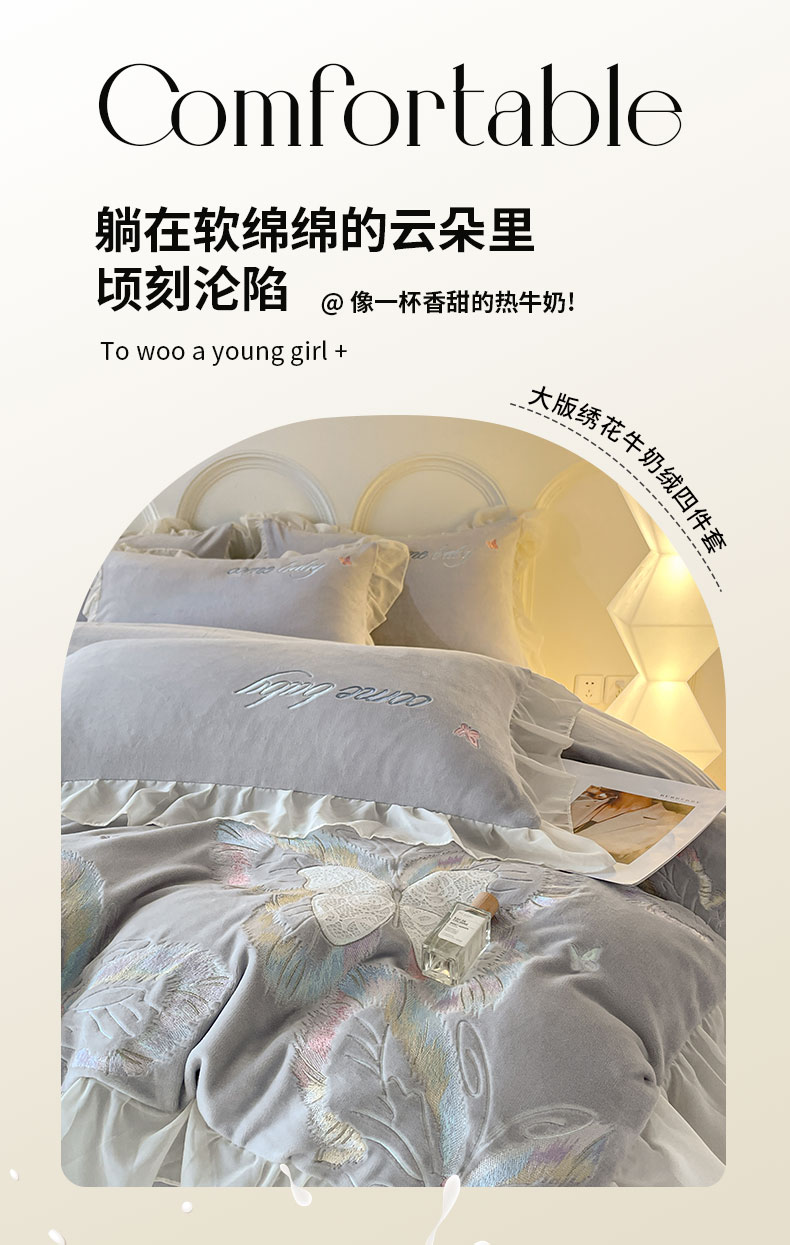 当前位置: 91家纺网 > 商品网购 > 床品套件 > 四件套 > 牛奶绒四件套 > ab家纺 2025新款厚实保暖牛奶绒四件套-碟鸢 碟鸢-灰