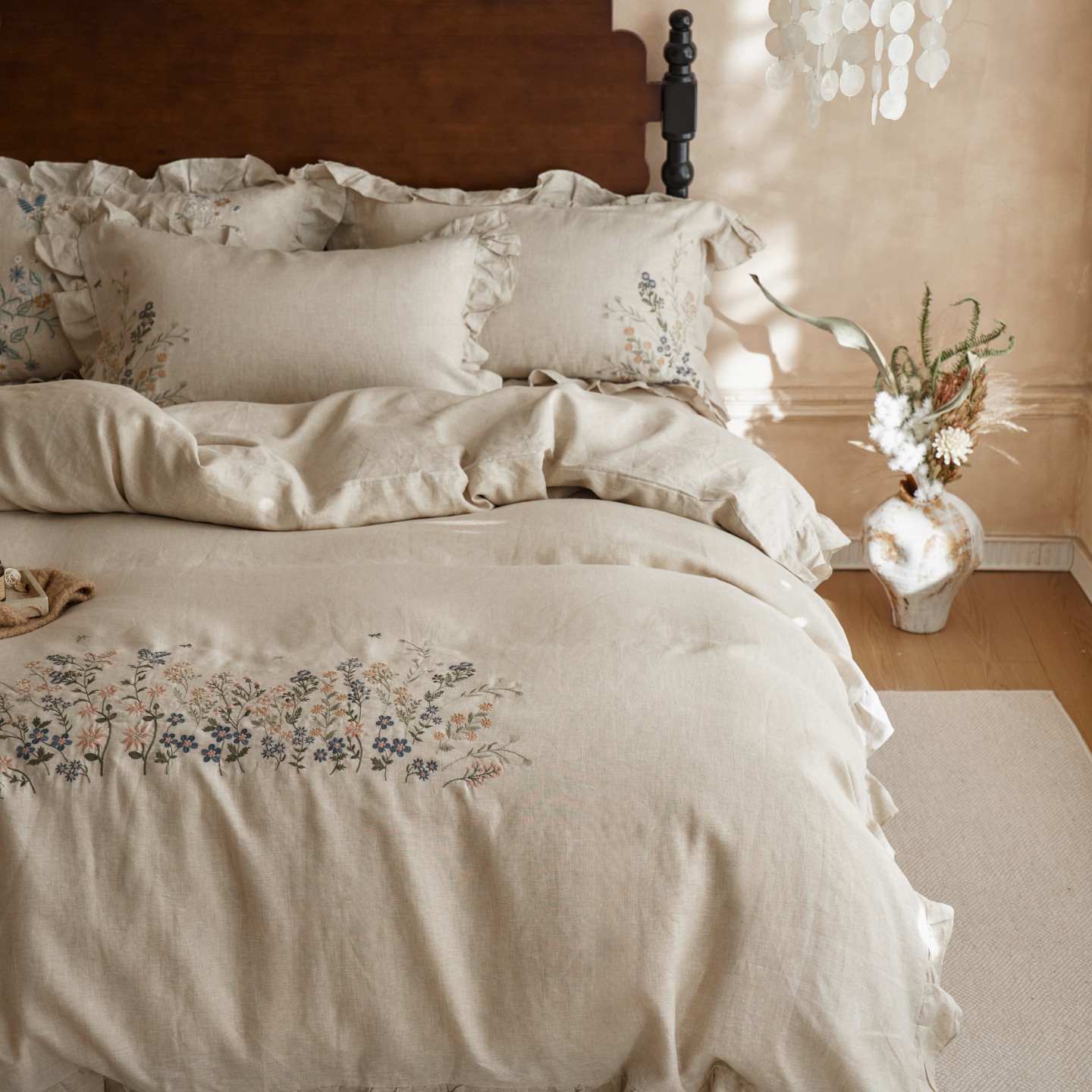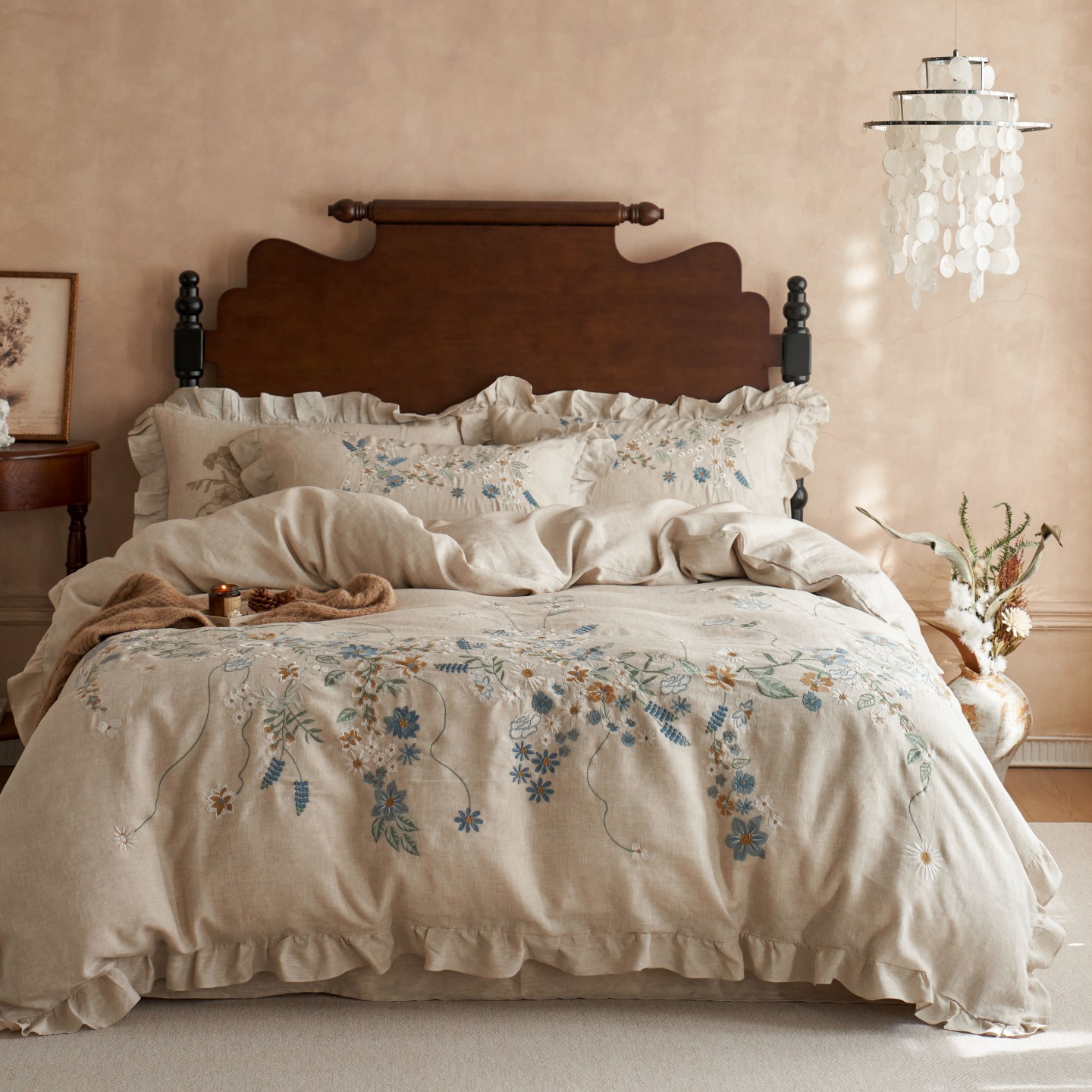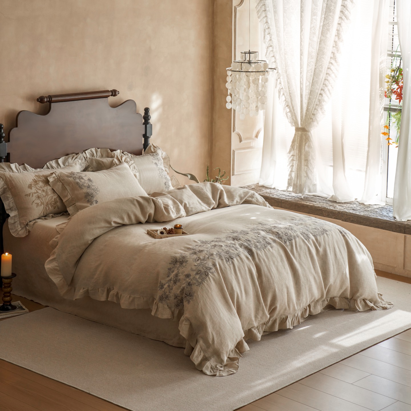 安莱生活 2025新款百分百纯亚麻重工艺刺绣四件套 余香-雨露