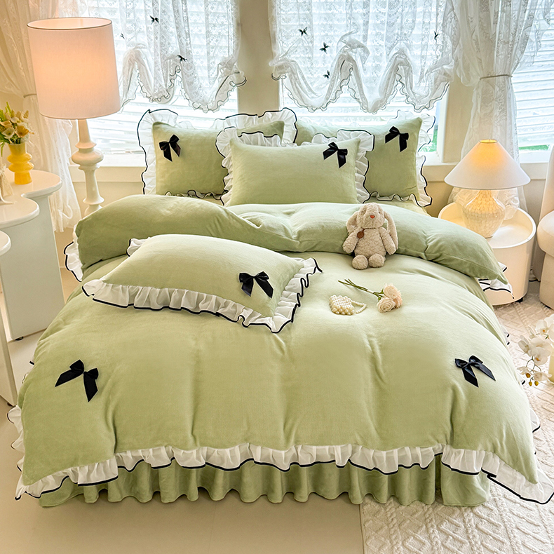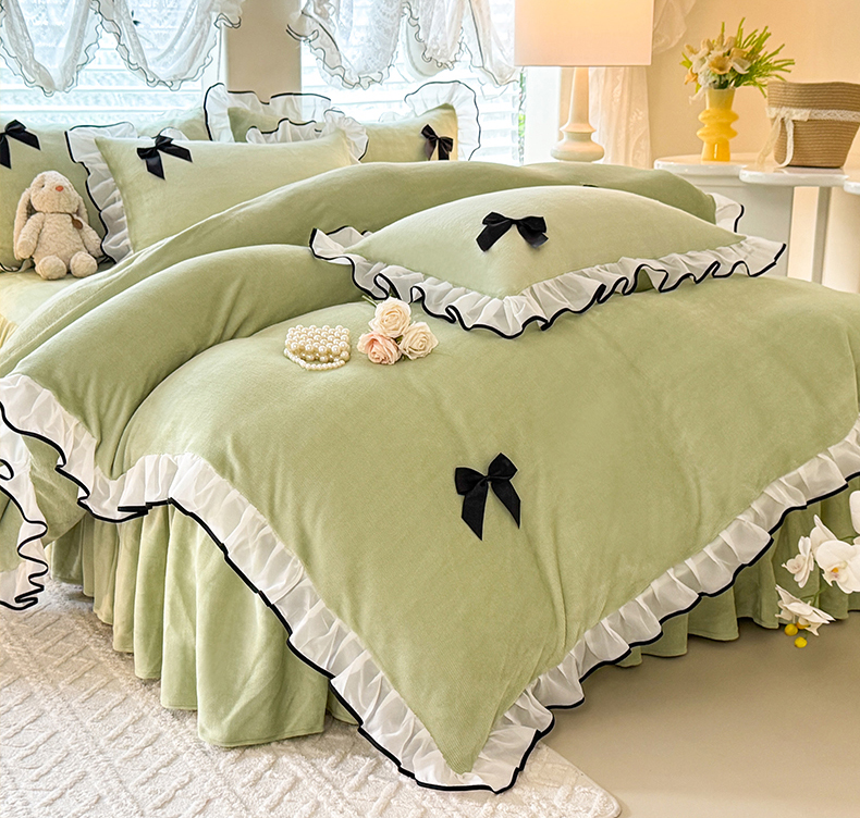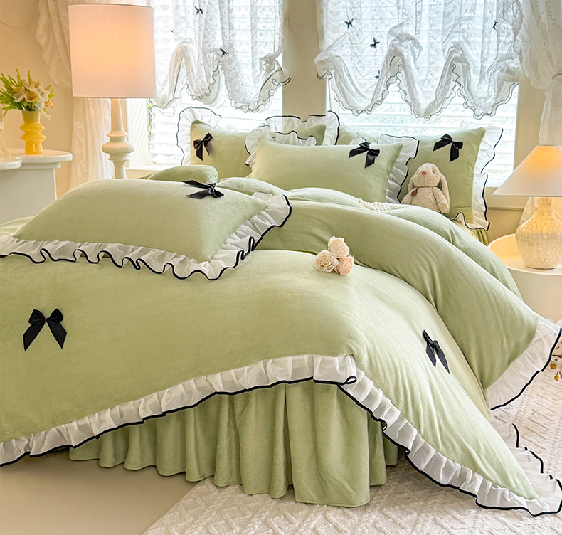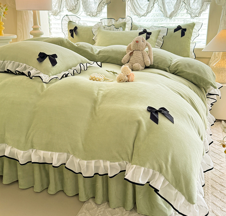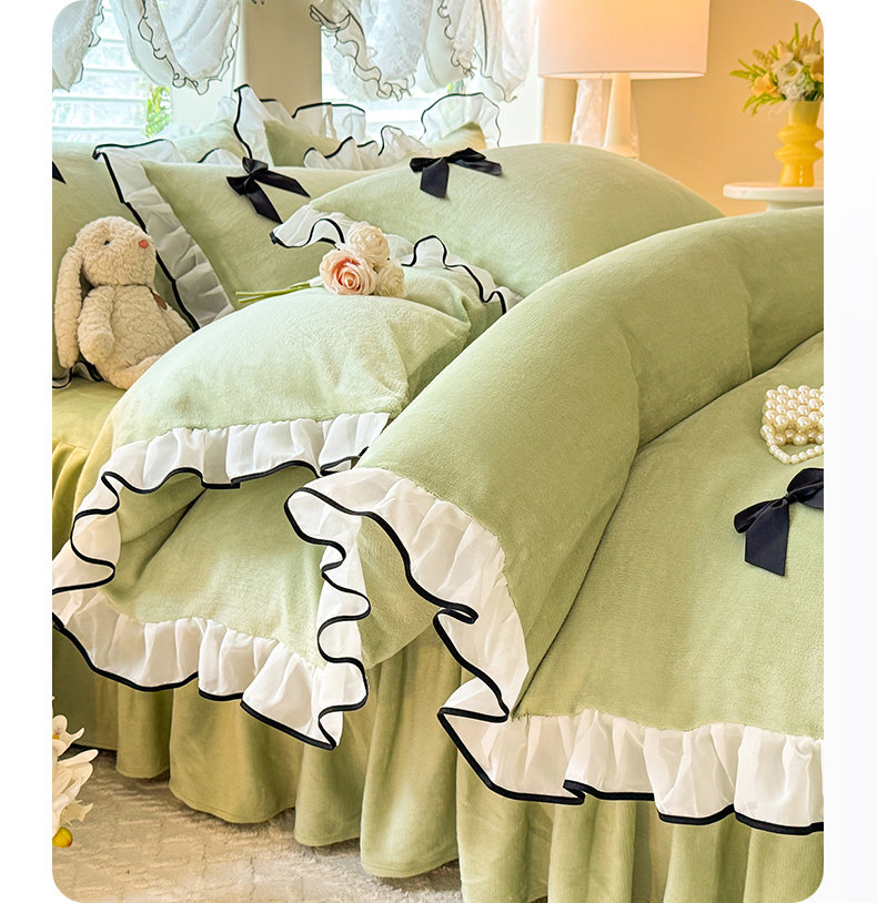 莉莉安家纺 2025新款牛奶绒床裙四件套-潘多拉系列 潘多拉-绿