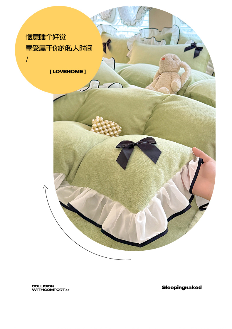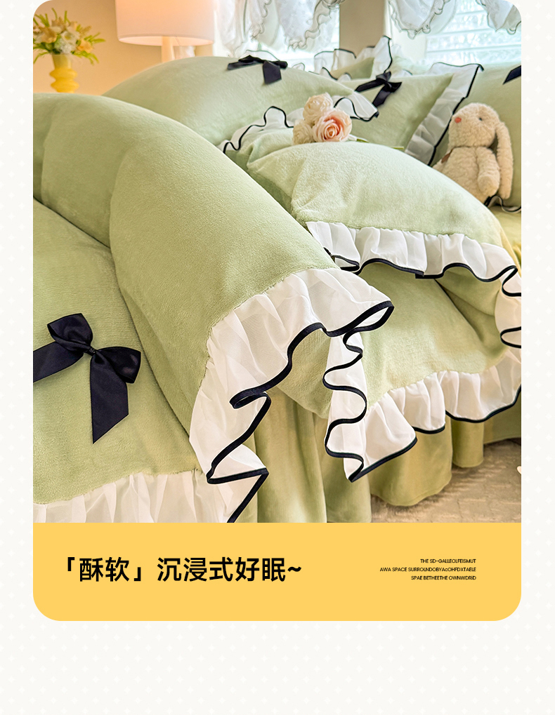 商品名称:莉莉安家纺 2025新款牛奶绒床裙四件套-潘多拉系列 潘多拉-绿