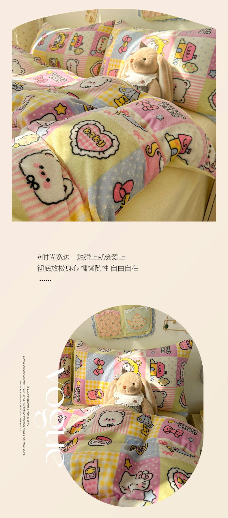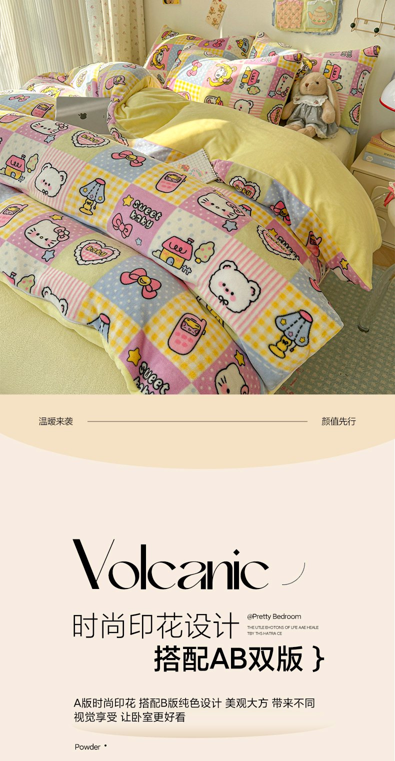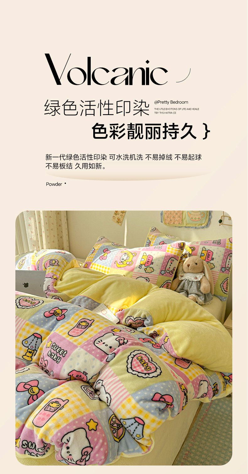 商品名称:韩巢家纺 2025新款双面高克重牛奶绒被套单件被罩 少女心