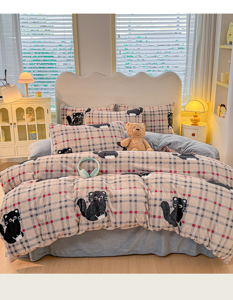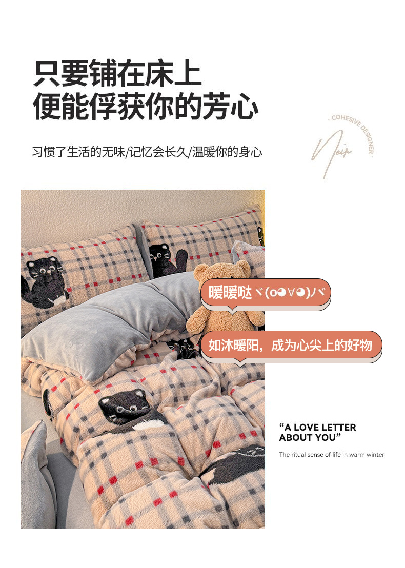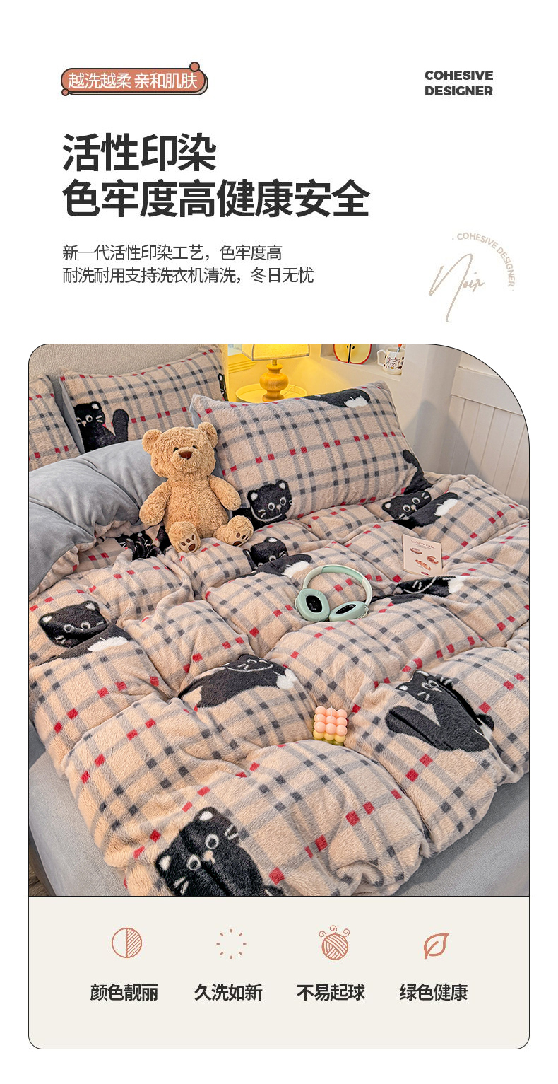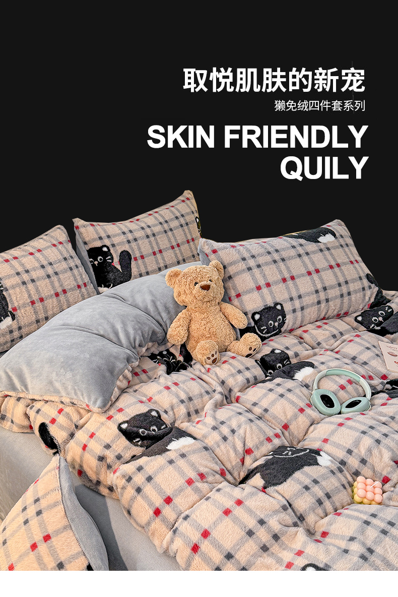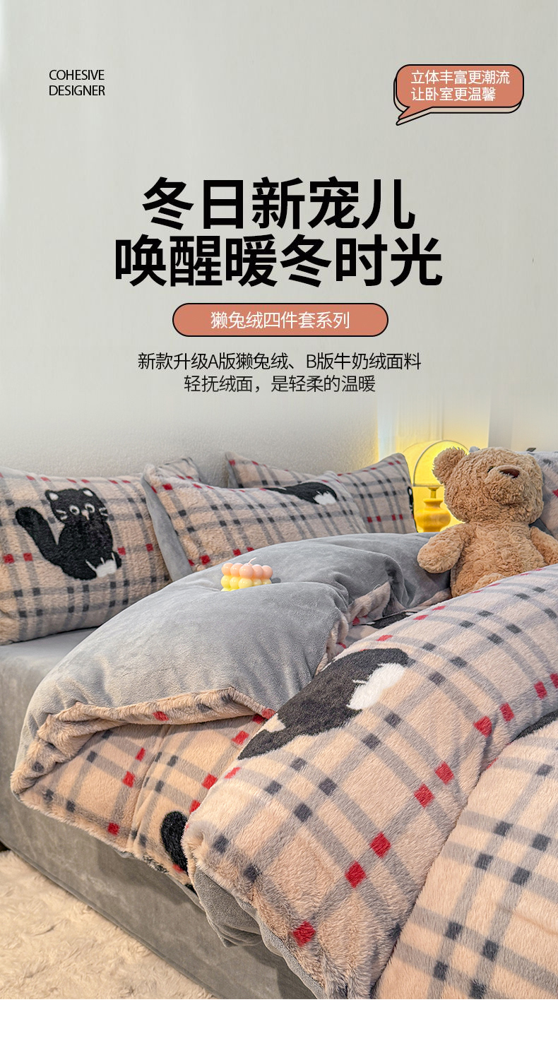 商品名称:KA家纺 2025新款冬高克重兔毛牛奶绒四件套 英伦小猫