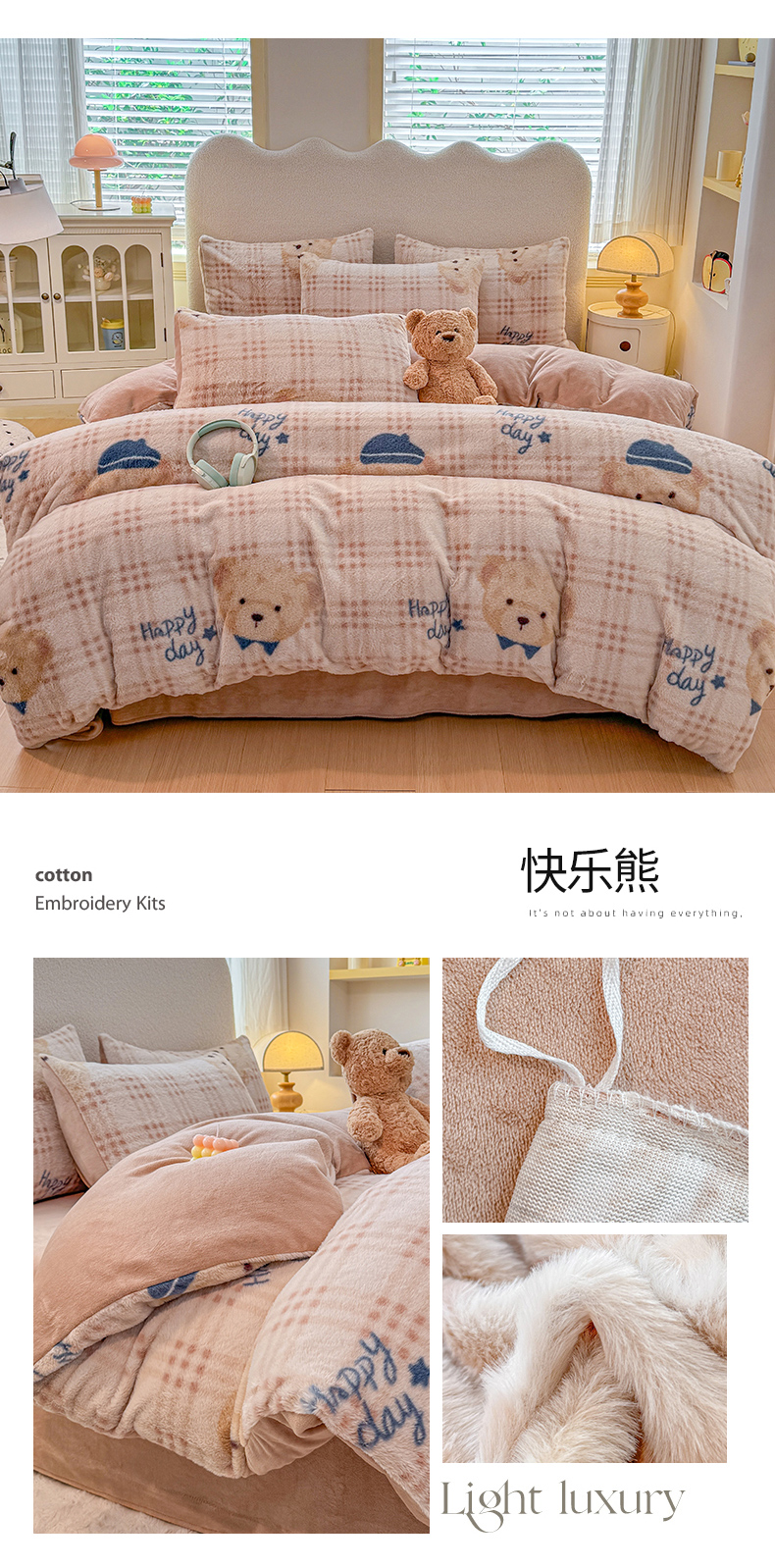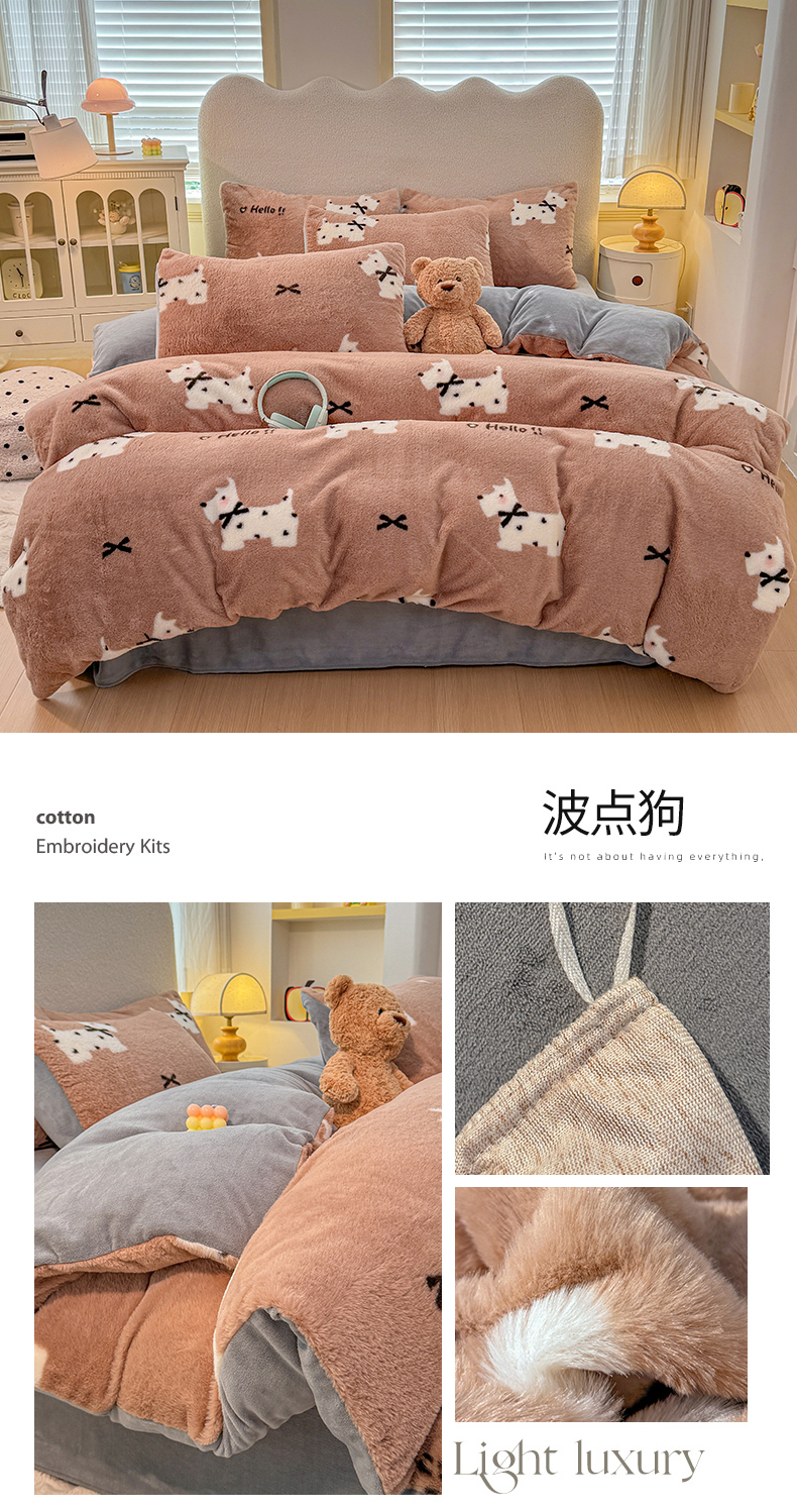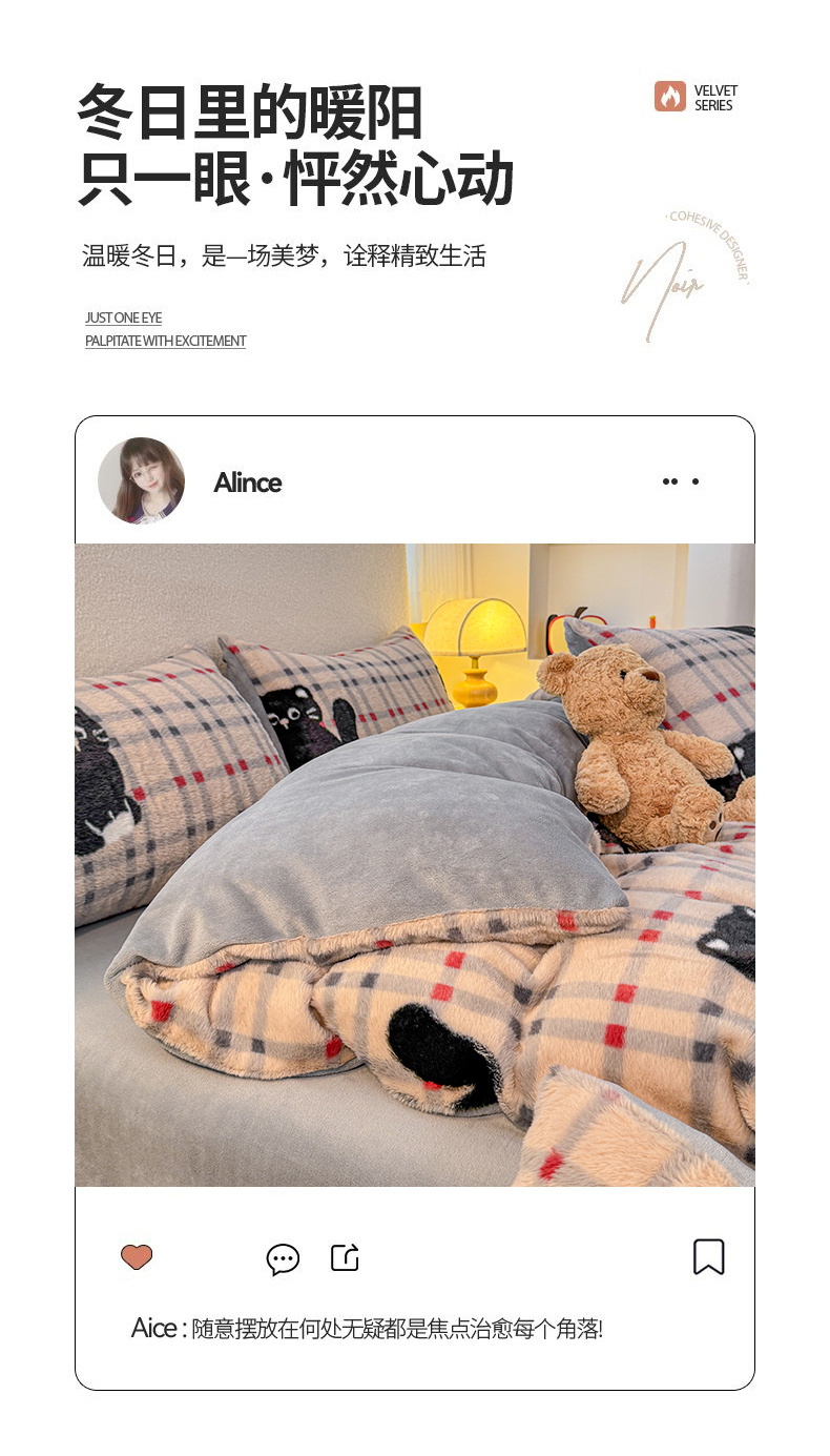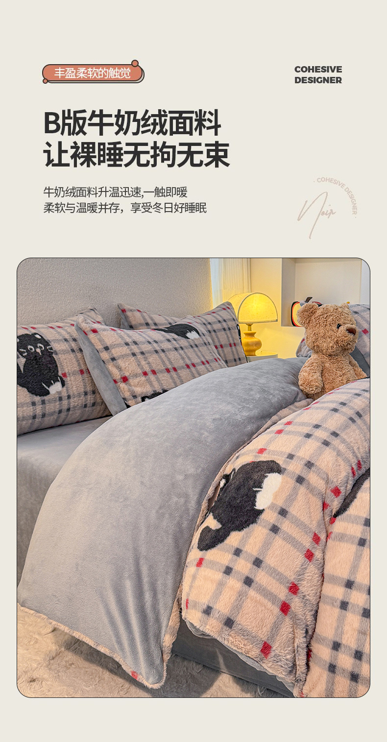 KA家纺 2025新款冬高克重兔毛牛奶绒四件套 英伦小猫