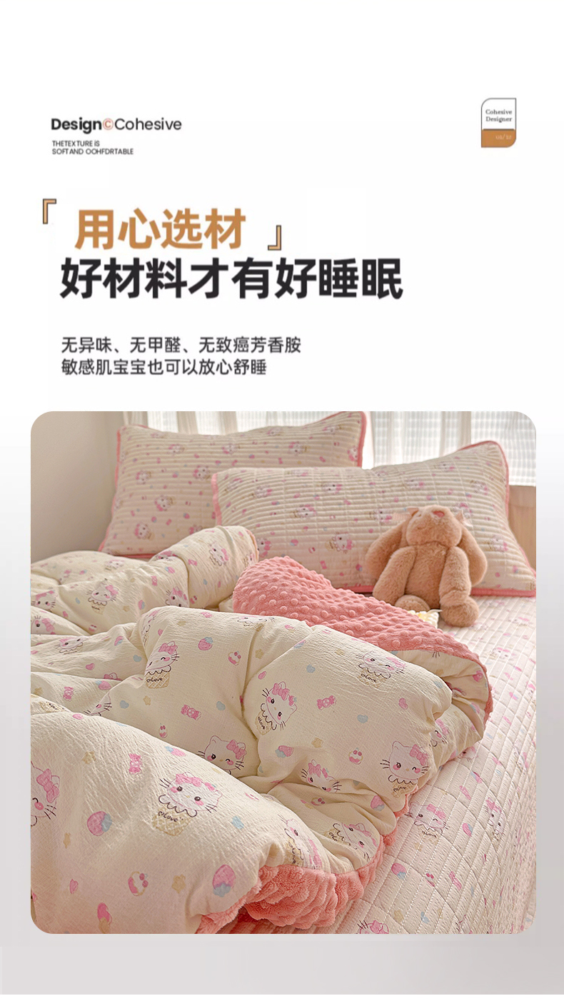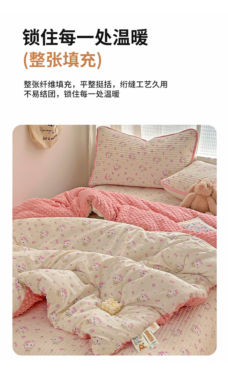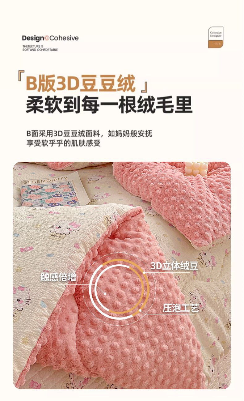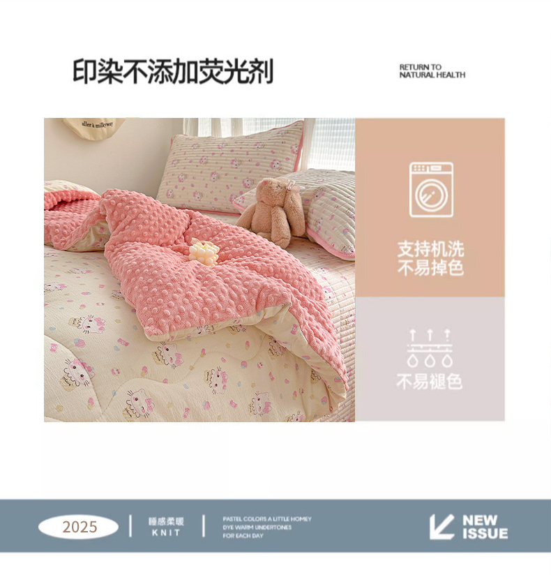 • 91家纺网 家纺一手货源 找家纺 繁花家居 2025新款床盖豆豆被套春秋被套冬被云感超软木棉被子被芯 简单款床盖-豆豆被-奇梦甜猫