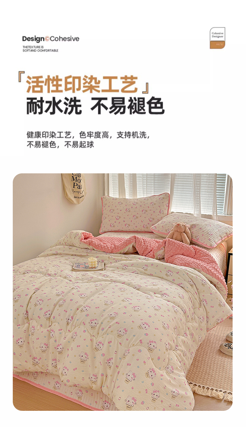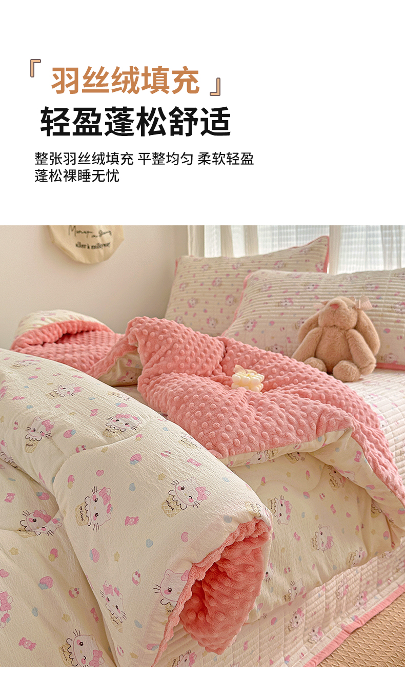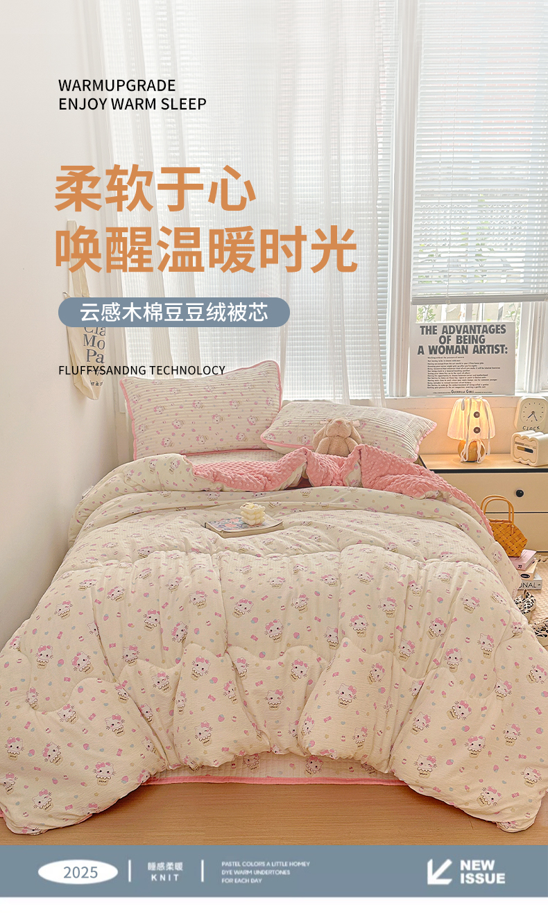 • 91家纺网 家纺一手货源 找家纺 繁花家居 2025新款床盖豆豆被套春秋被套冬被云感超软木棉被子被芯 简单款床盖-豆豆被-奇梦甜猫